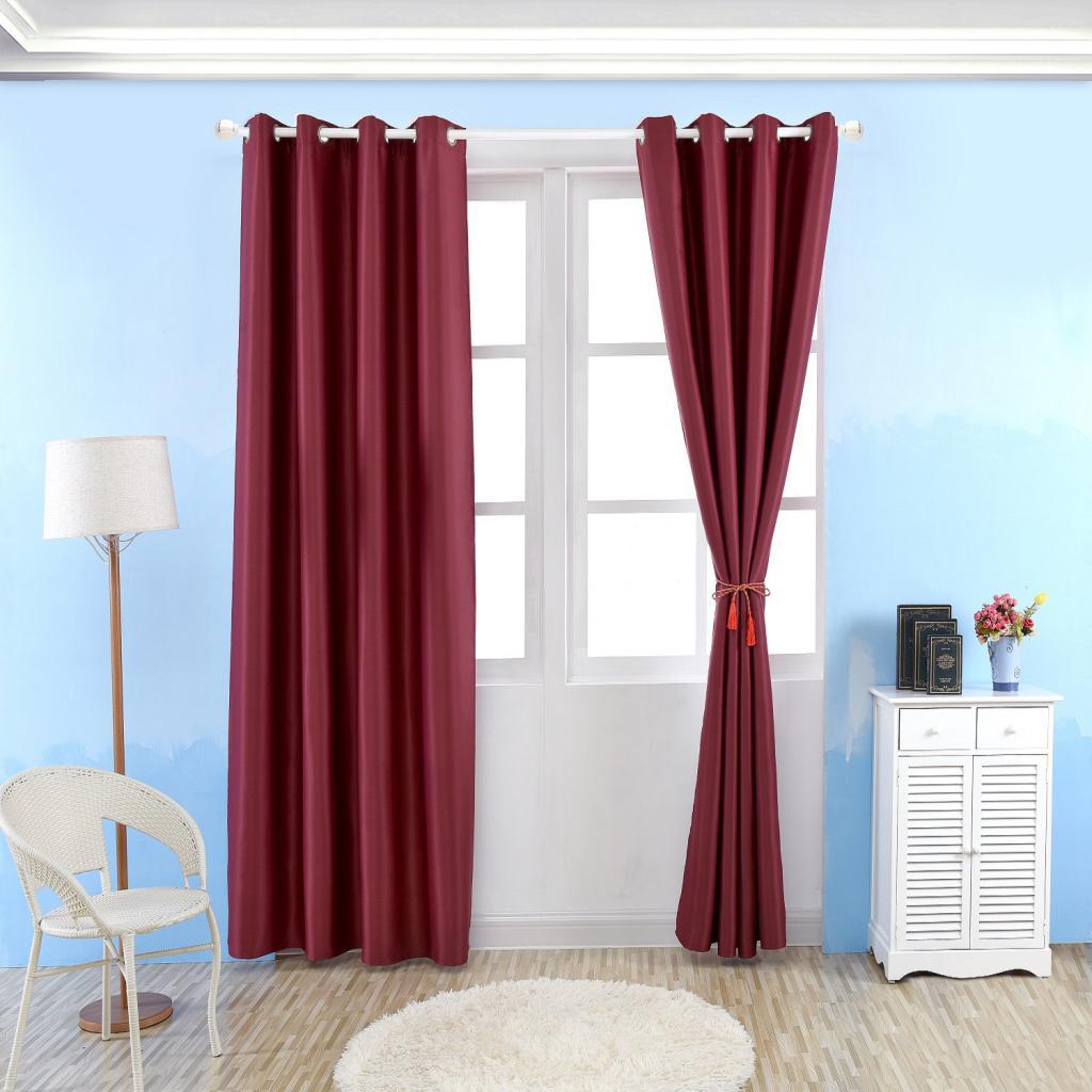 Solid Eyelet Top Cotton Window Shade Curtain Panel Blind 145*245cm Wine Red