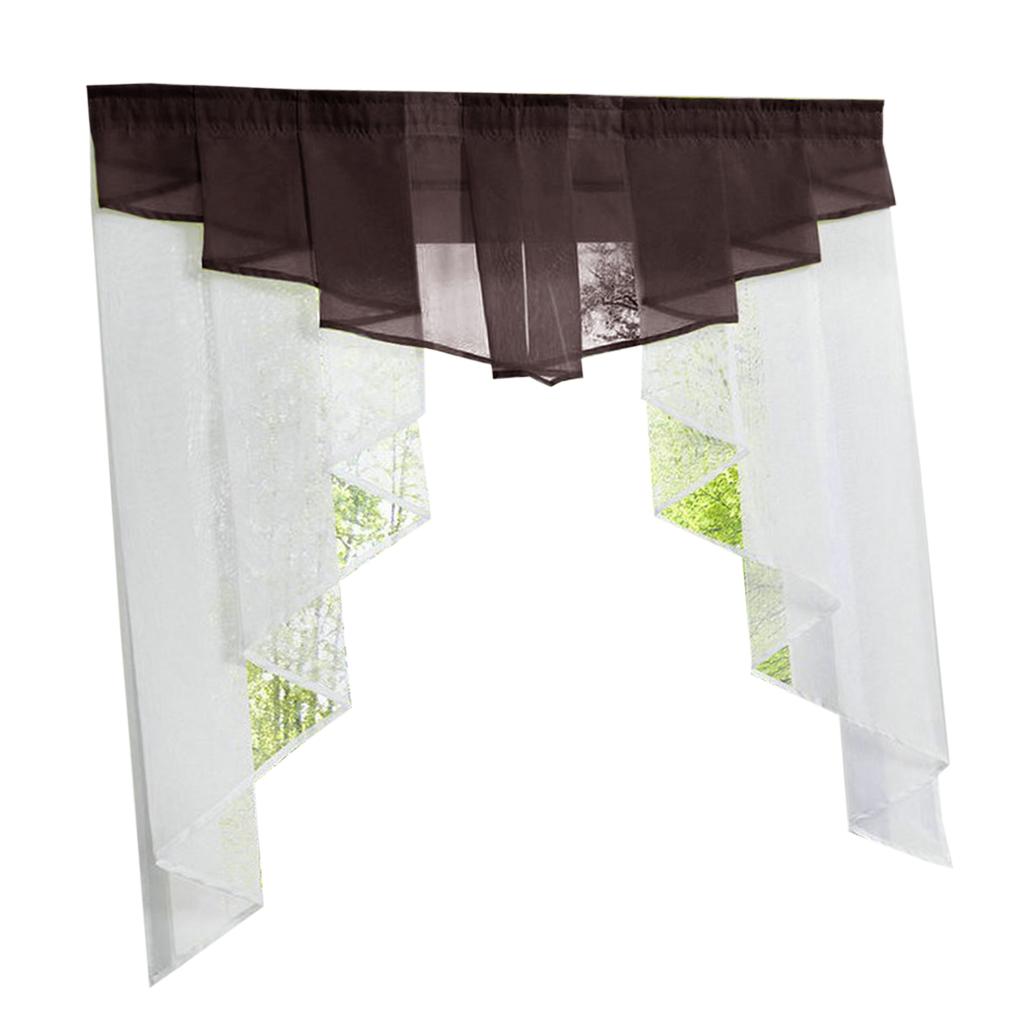 Stitching Pleated Roman Curtain Tulle for Balcony Window Coffee 140Wx145H