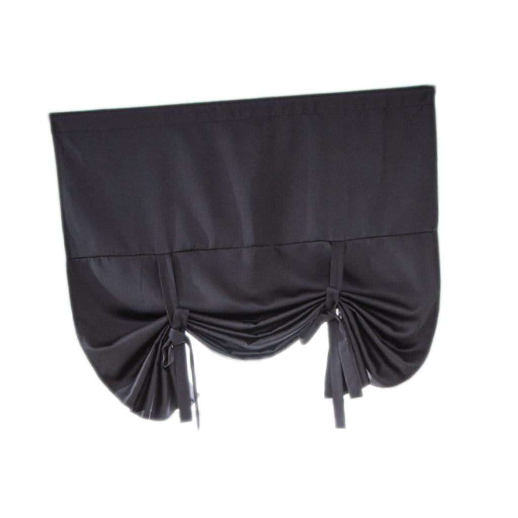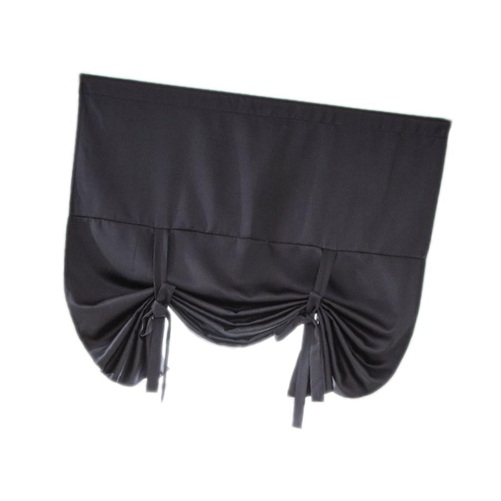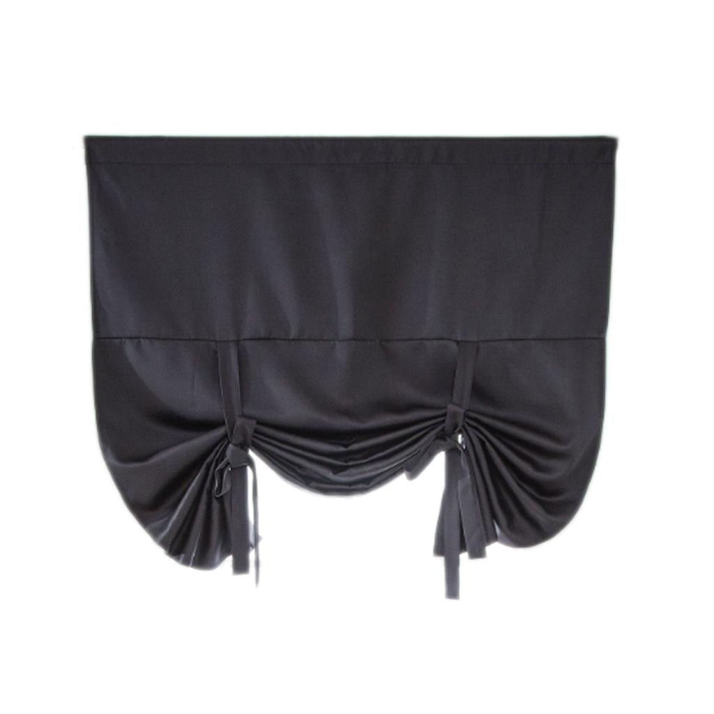 Thermal Insulated Grey Blackout Curtain Tie Up Shade for Small Window Black