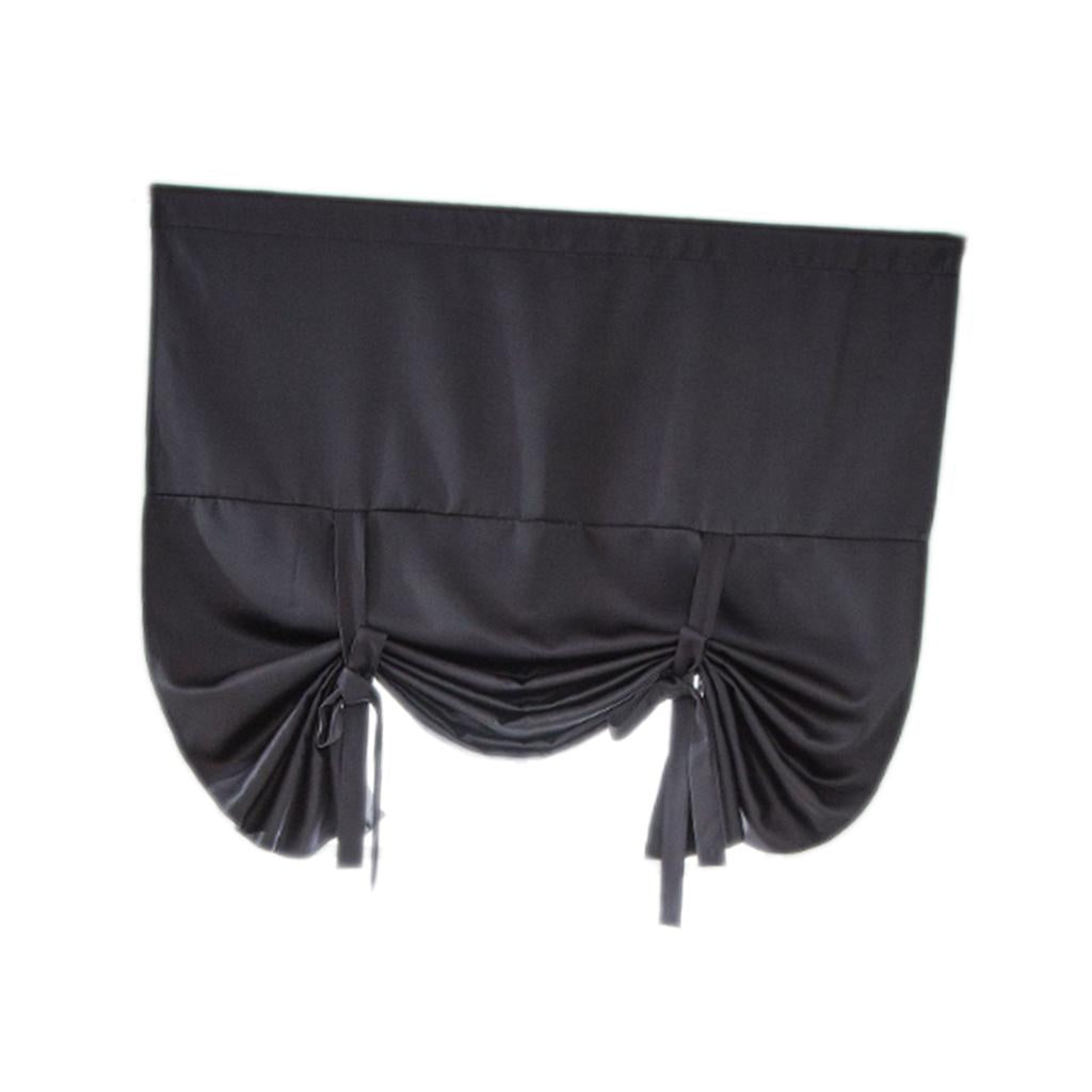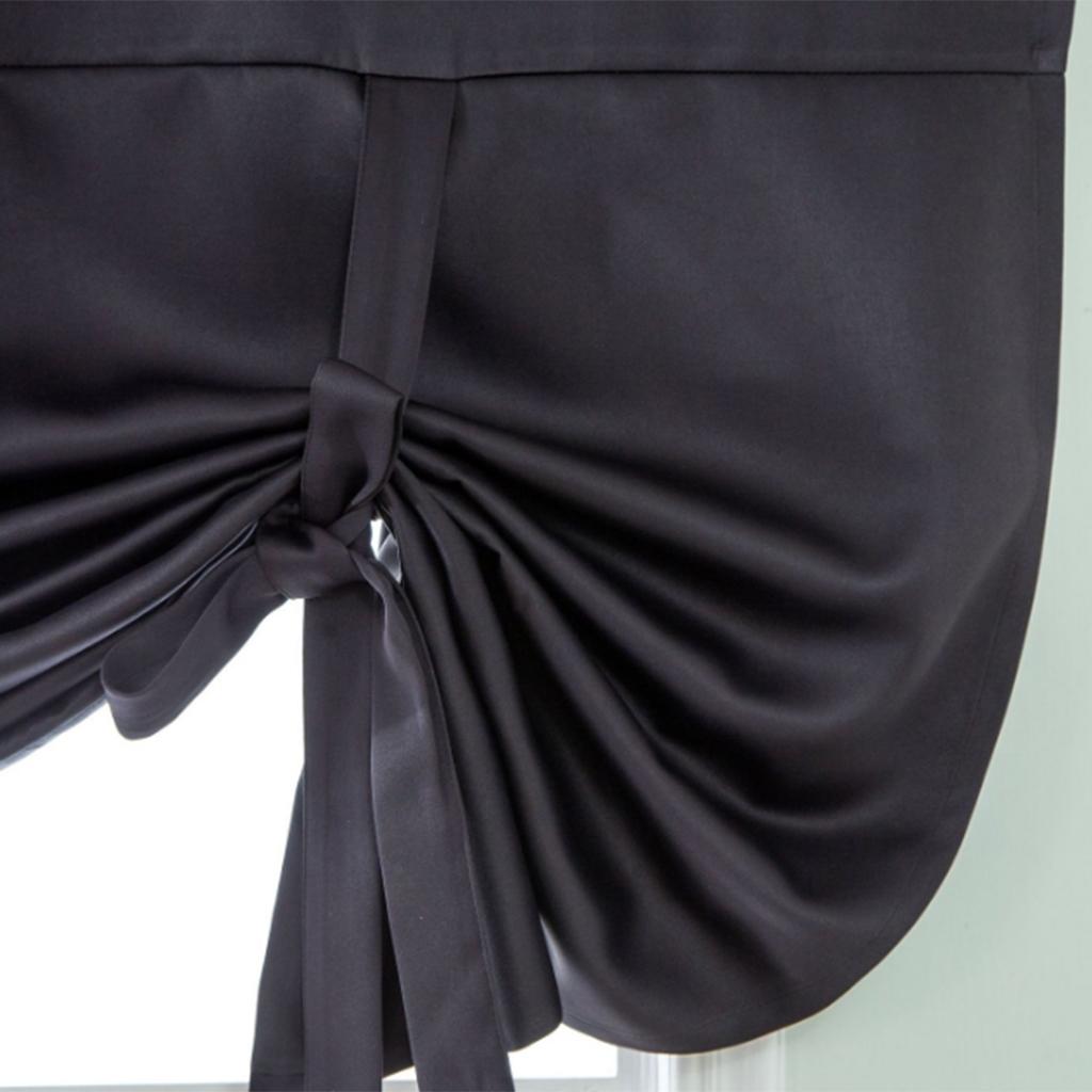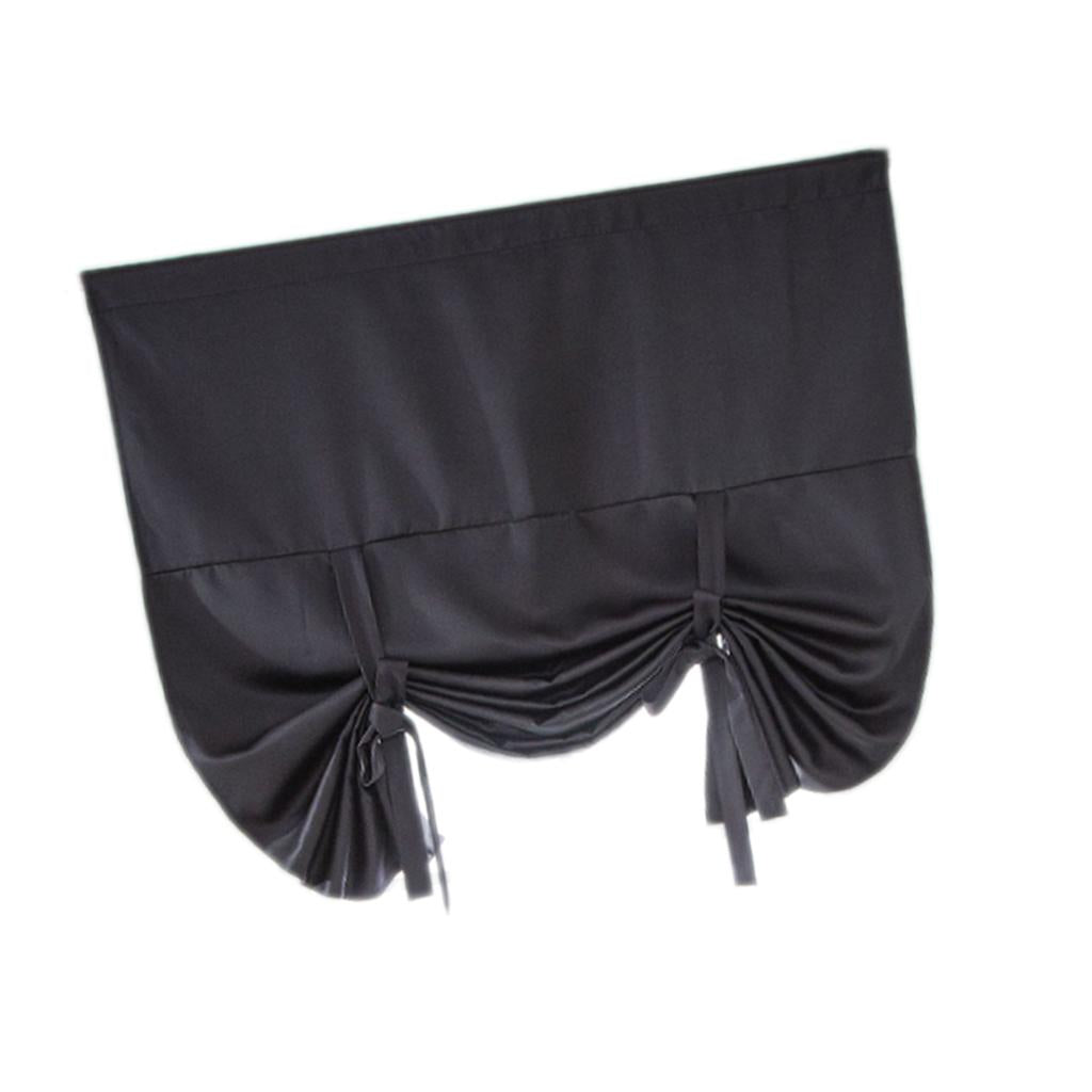 Thermal Insulated Grey Blackout Curtain Tie Up Shade for Small Window Black