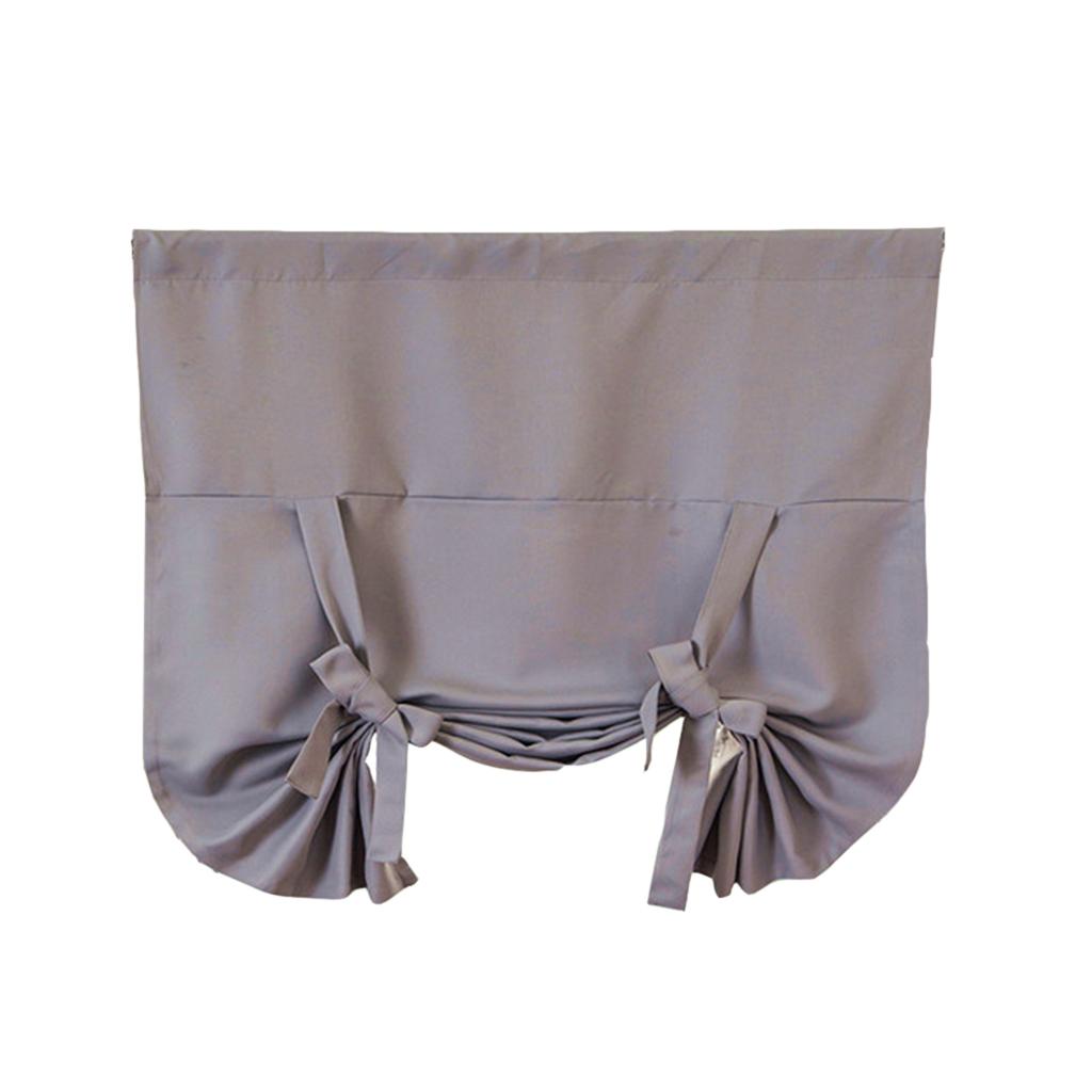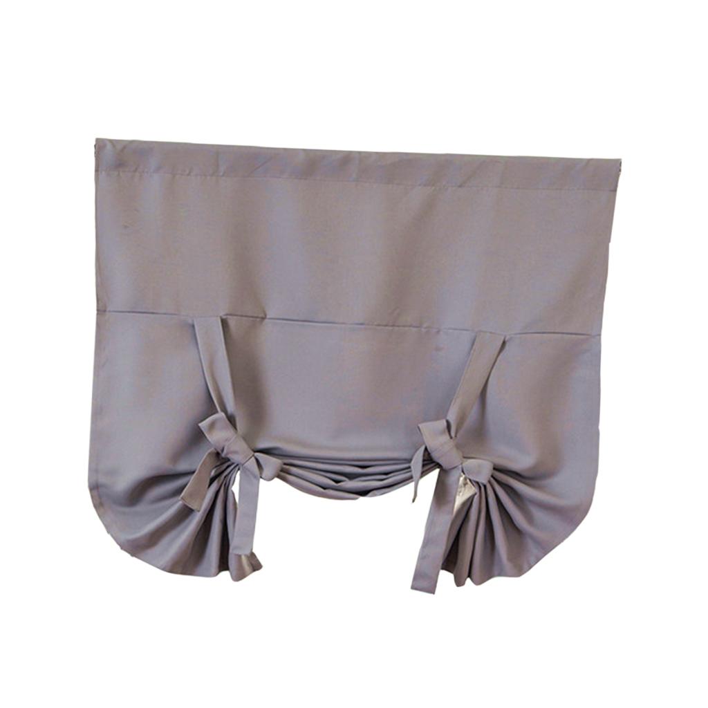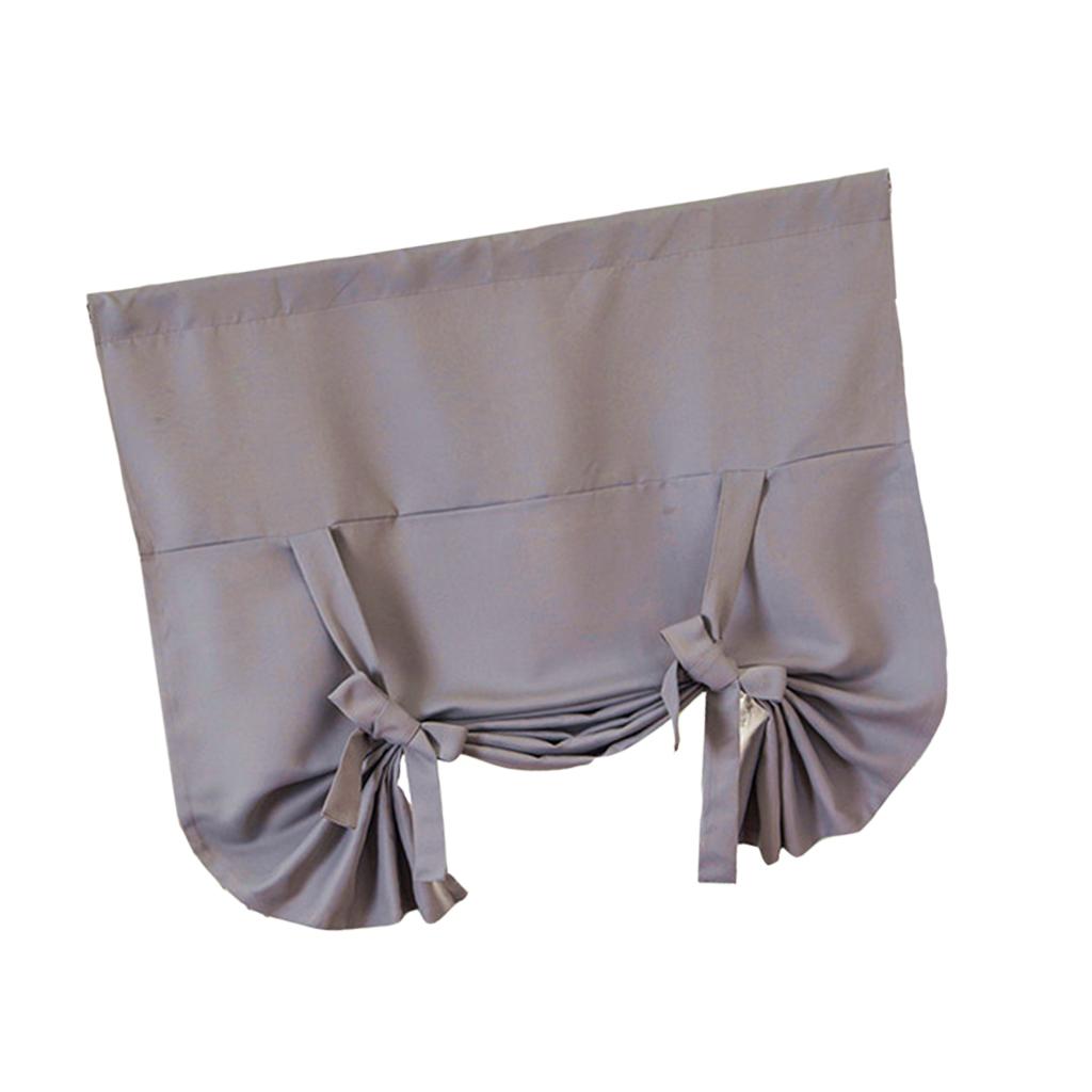 Thermal Insulated Grey Blackout Curtain Tie Up Shade for Small Window Gray