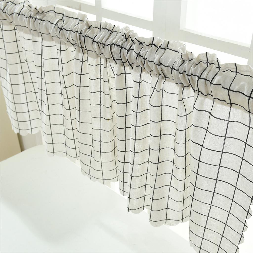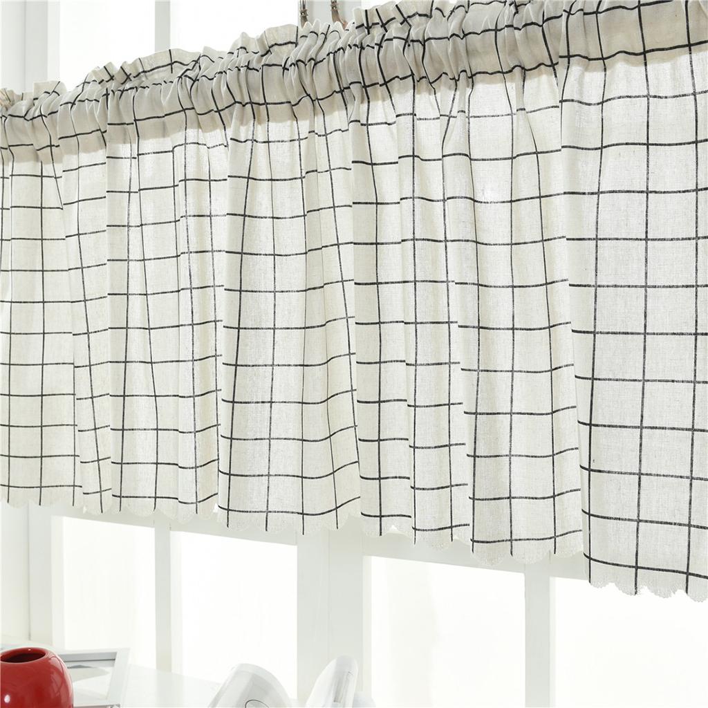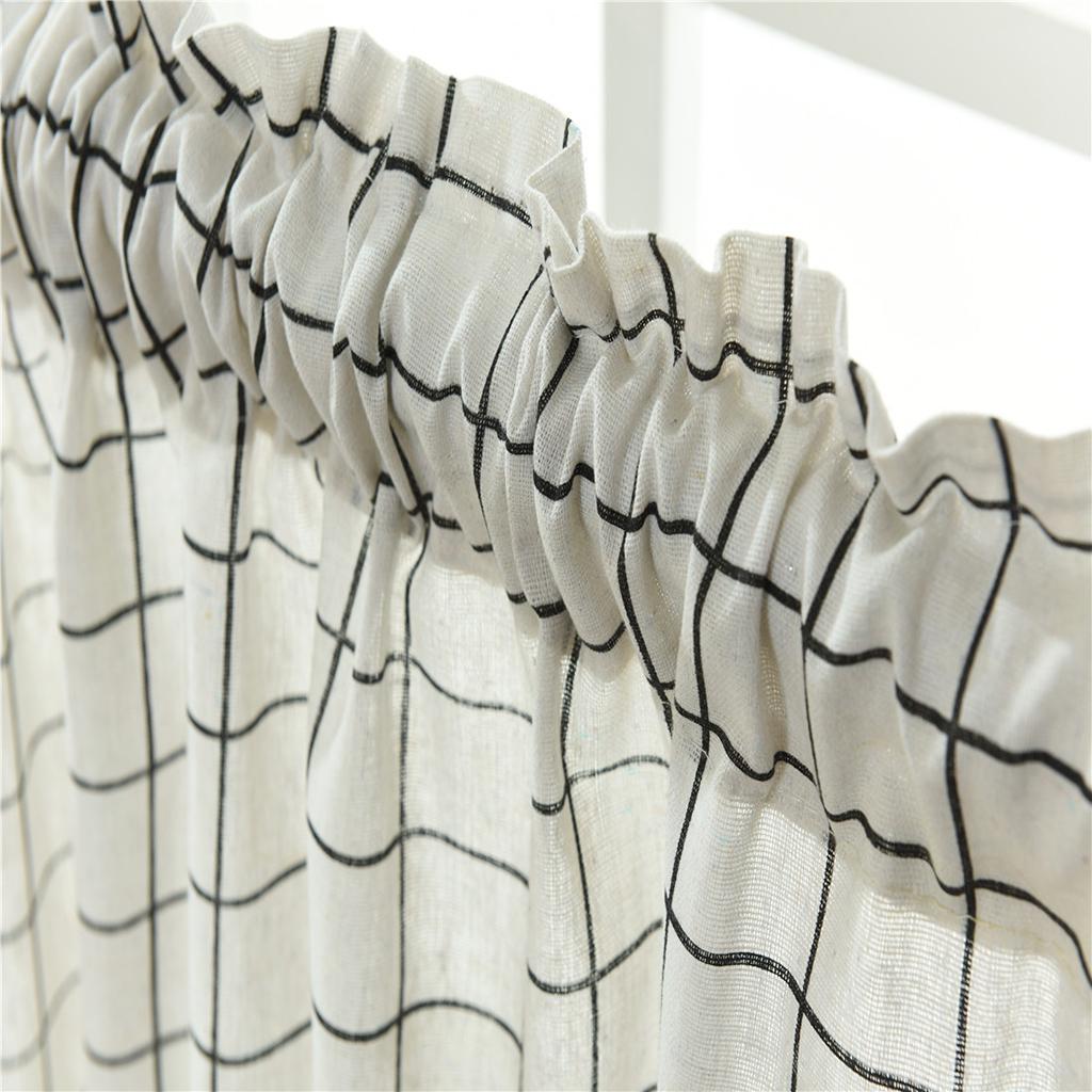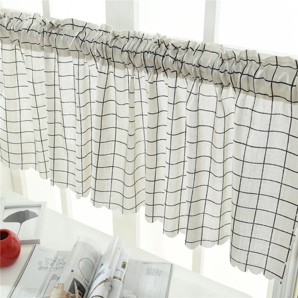 Window Balcony Rod Grid Short Curtain for Home Kitchen Cabinet Panel White Grid