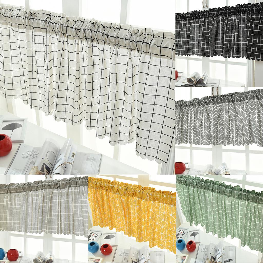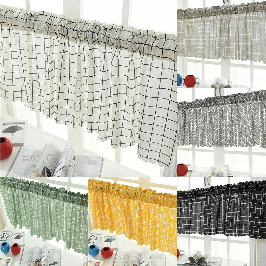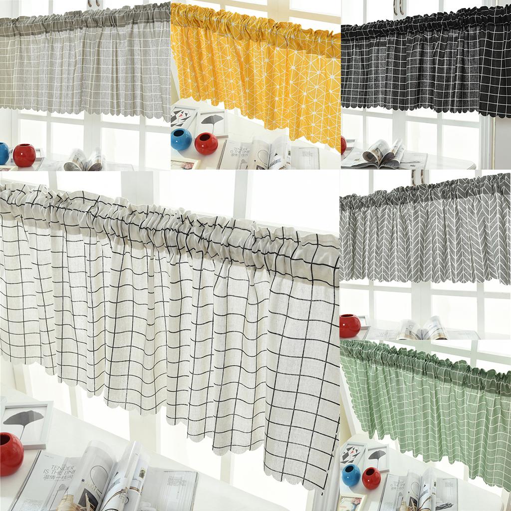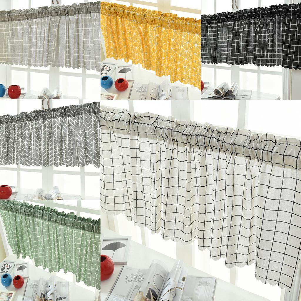 Window Balcony Rod Grid Short Curtain for Home Kitchen Cabinet Panel White Grid