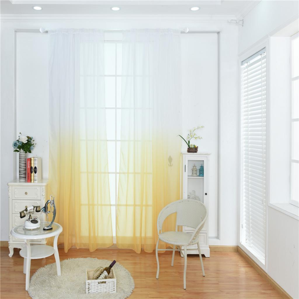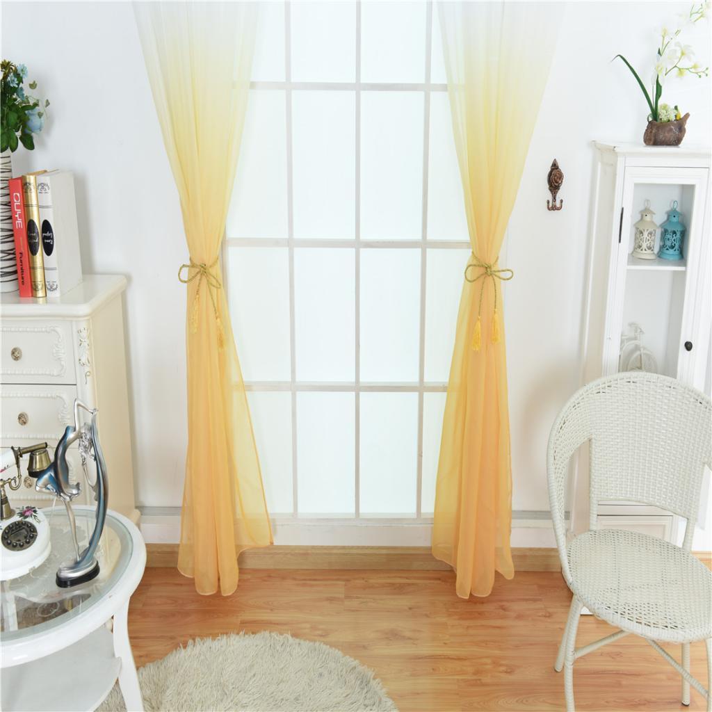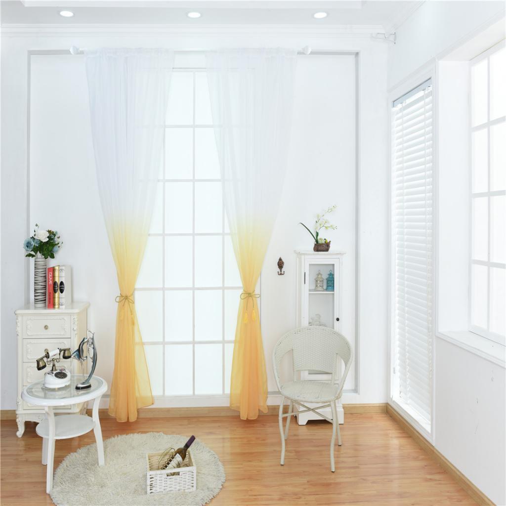 Window Tulle Voile Gradient Room Sheer Curtain Panel 100*200cm Yellow