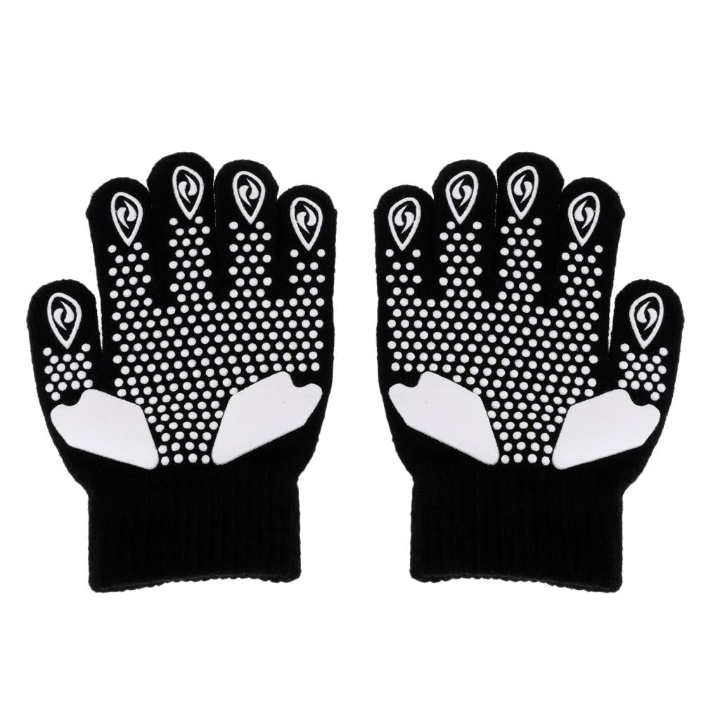 Girls Women Kids Ice Skating Gloves Magic Stretch Glove Black Flower L