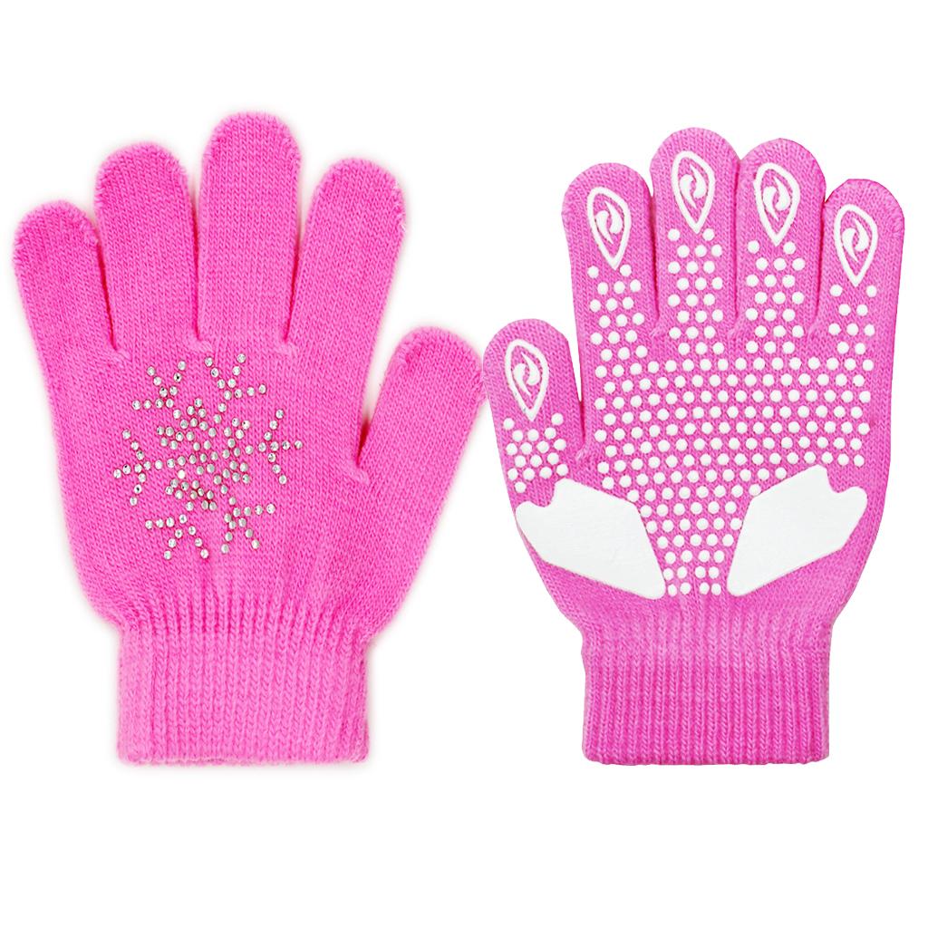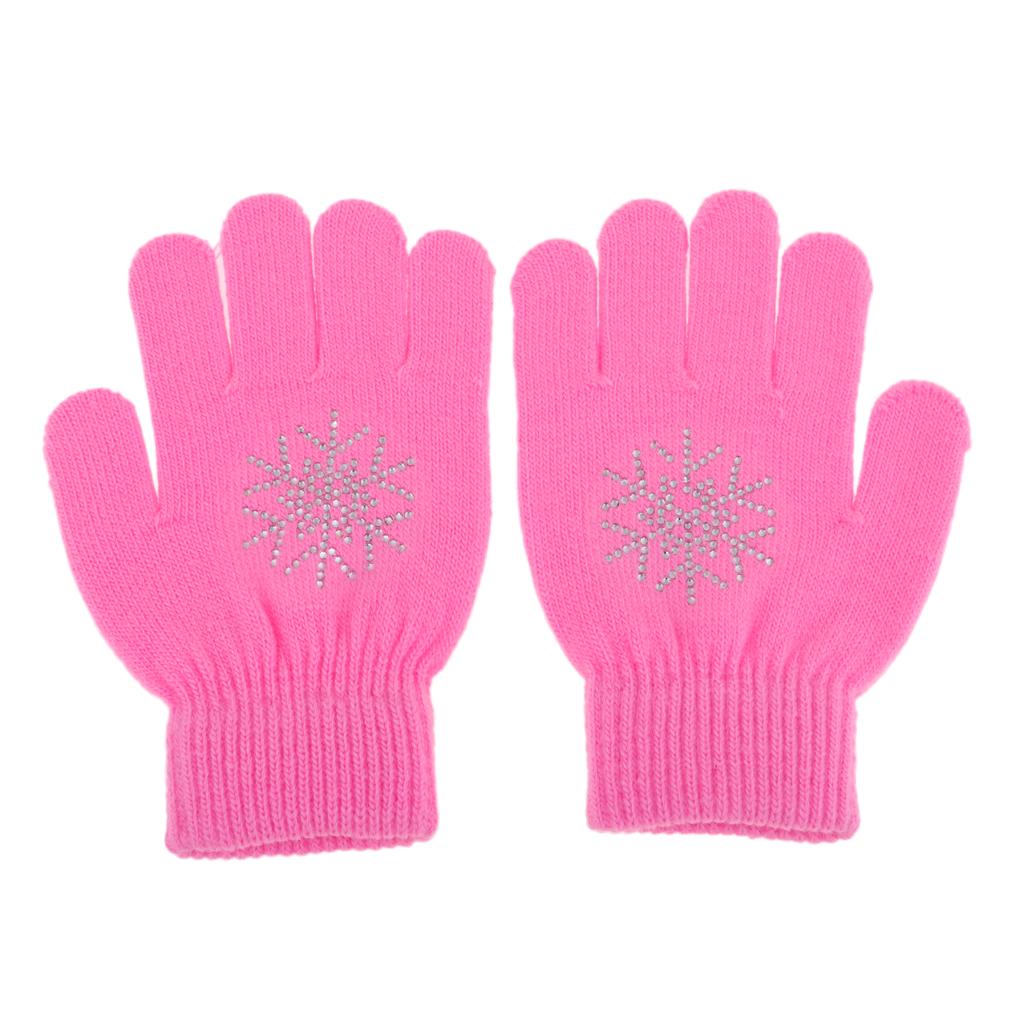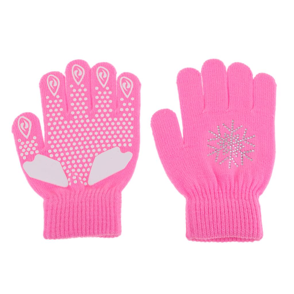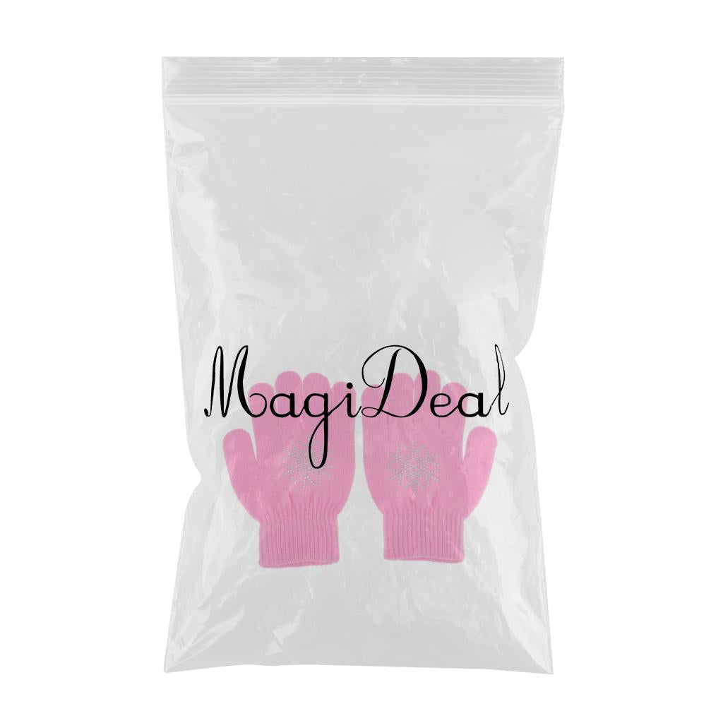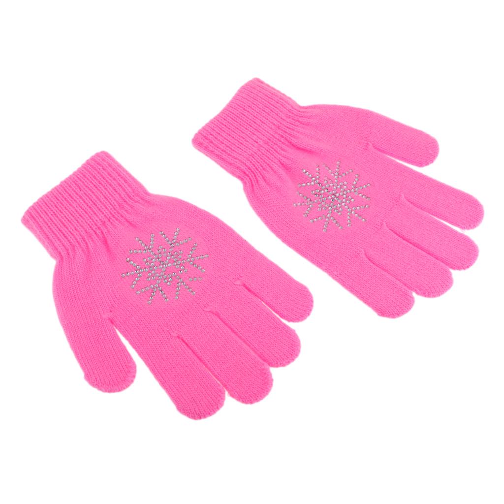 Girls Women Kids Ice Skating Gloves Magic Stretch Glove Pink Snowflower L