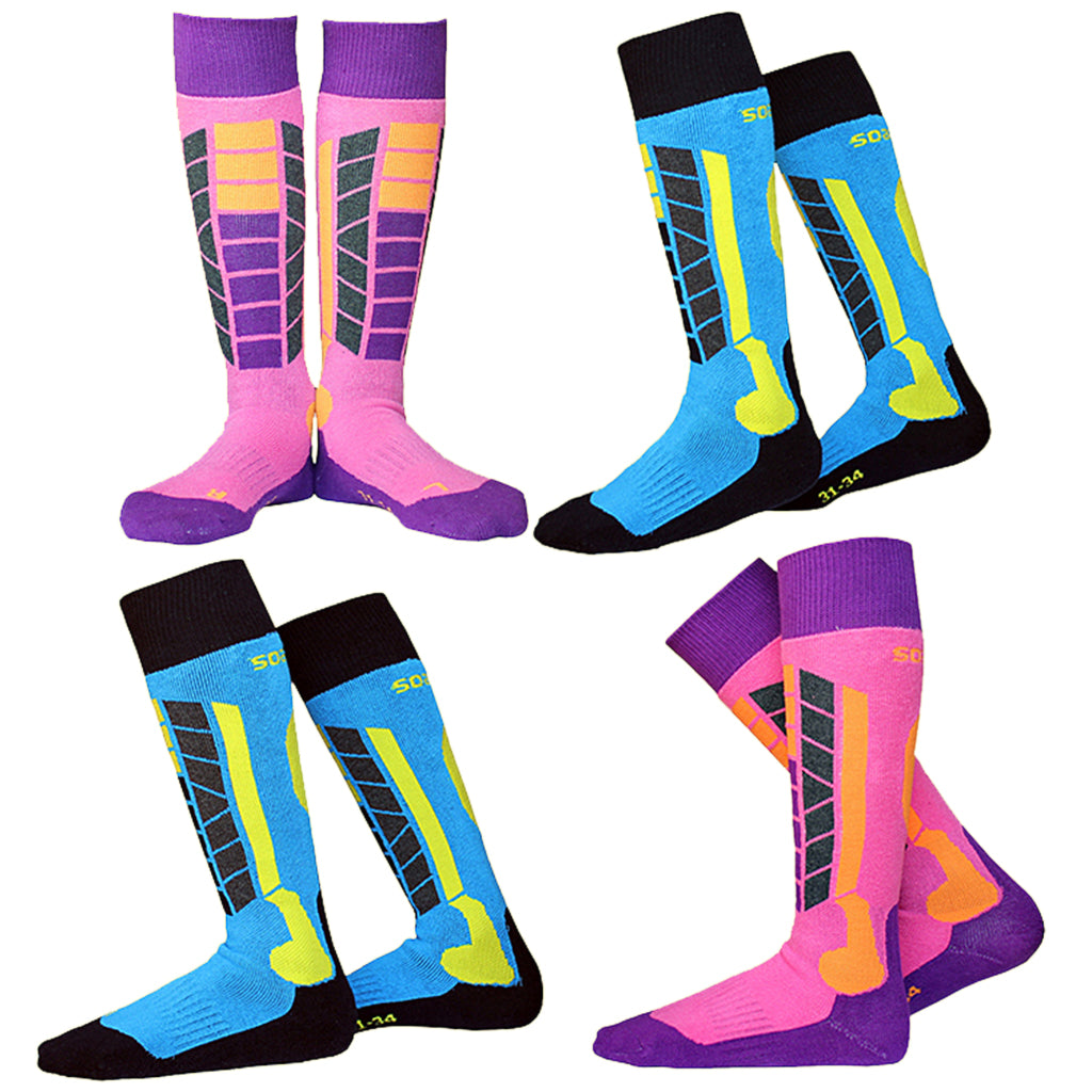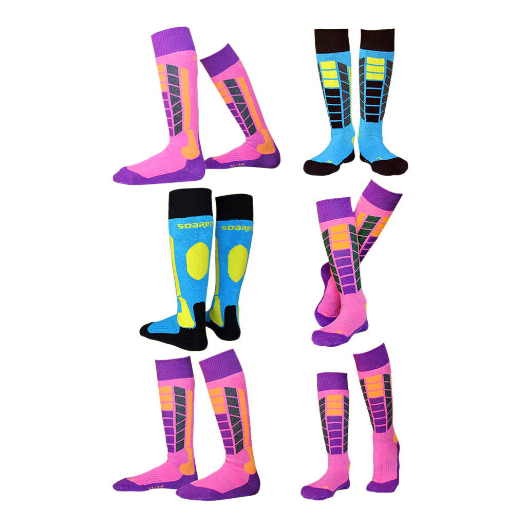 Kids Children Winter Sports Long Ski Snowboarding Flexible Hiking Walking Socks Pair EU 27-30 Blue