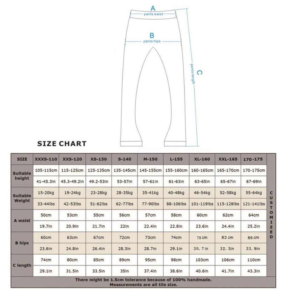 Size: 100 cm, 110, 120 cm, 130 cm, 140 cm, 150 cm, 155cm, 160cm, 165cm (Please check the details in the size chart)
