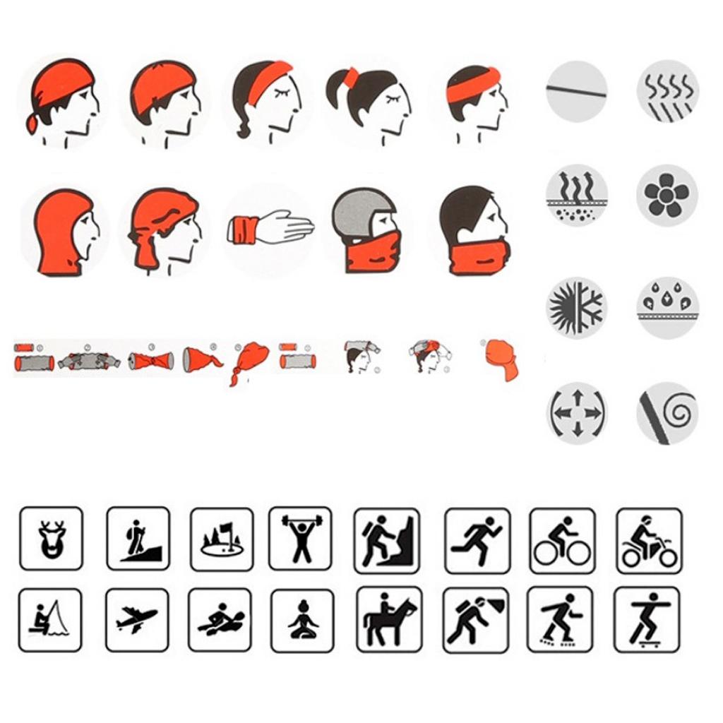 As a headband, headwear cap, neckerchief,wristband,bandana,neck gaiter, wind screen, balaclava, etc.