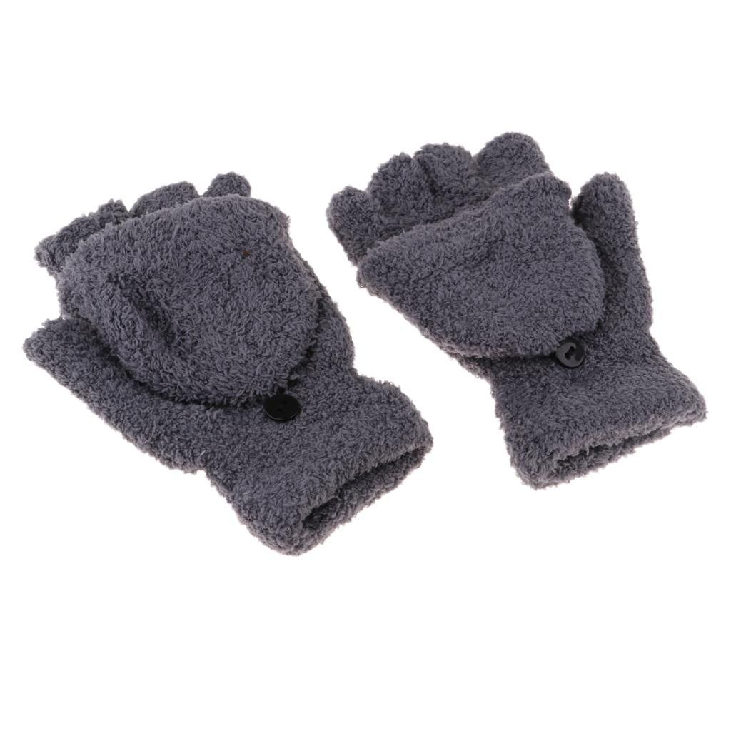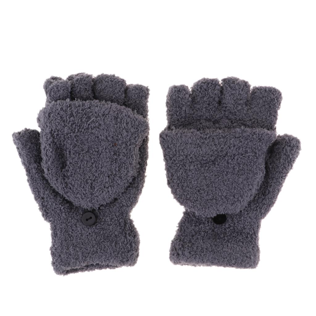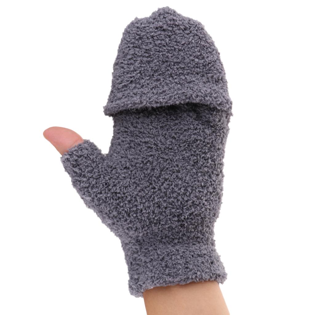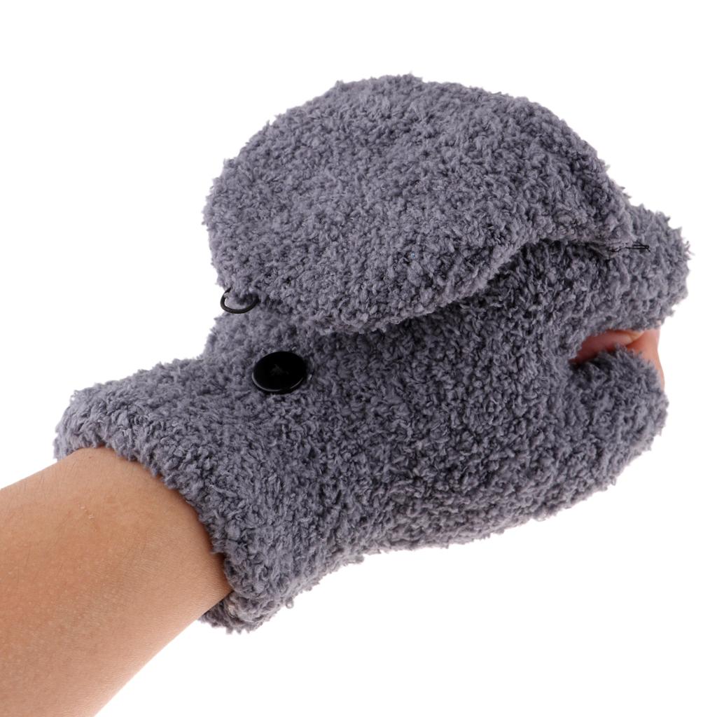 Winter Warm Plush Mittens Half Finger Short Fingerless Sports Gloves Gray