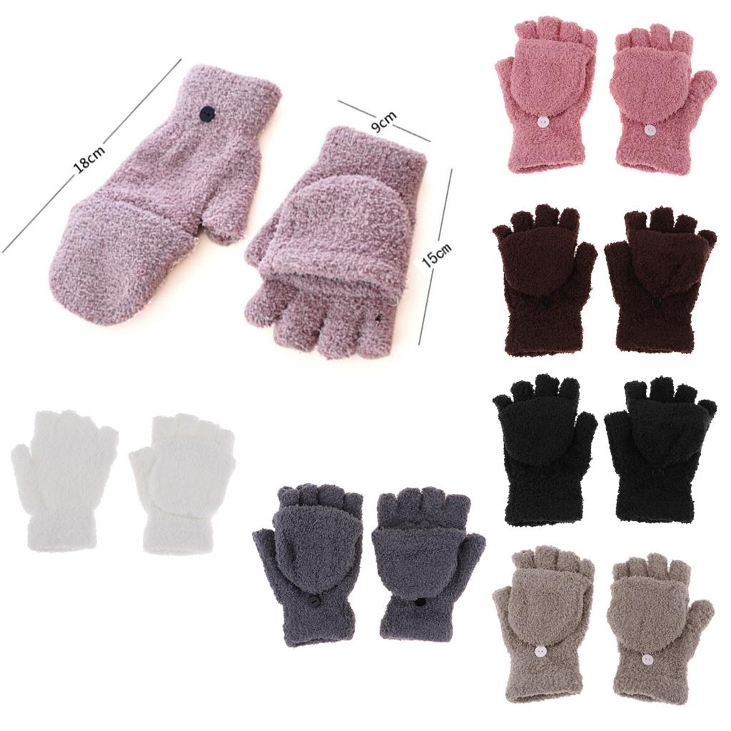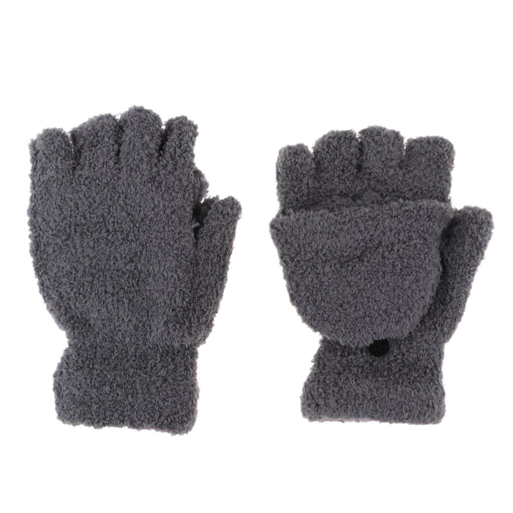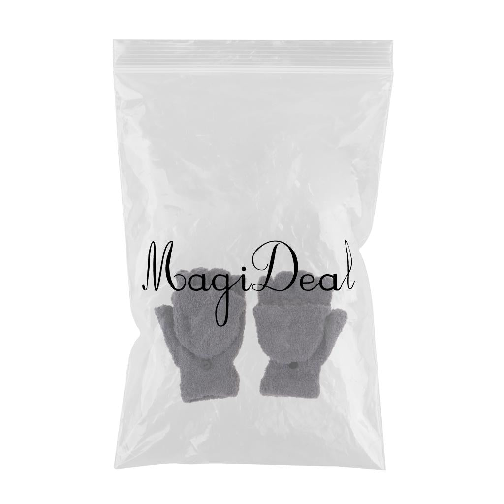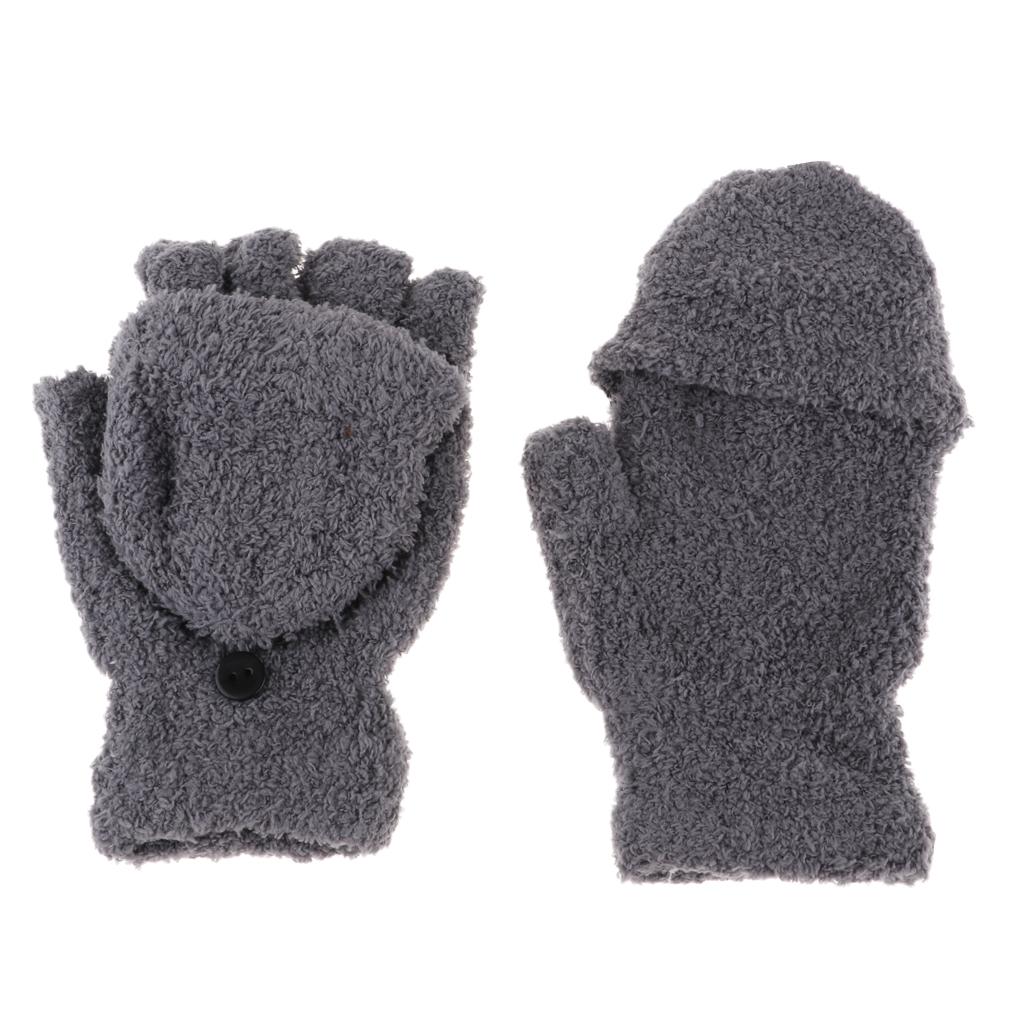 Winter Warm Plush Mittens Half Finger Short Fingerless Sports Gloves Gray