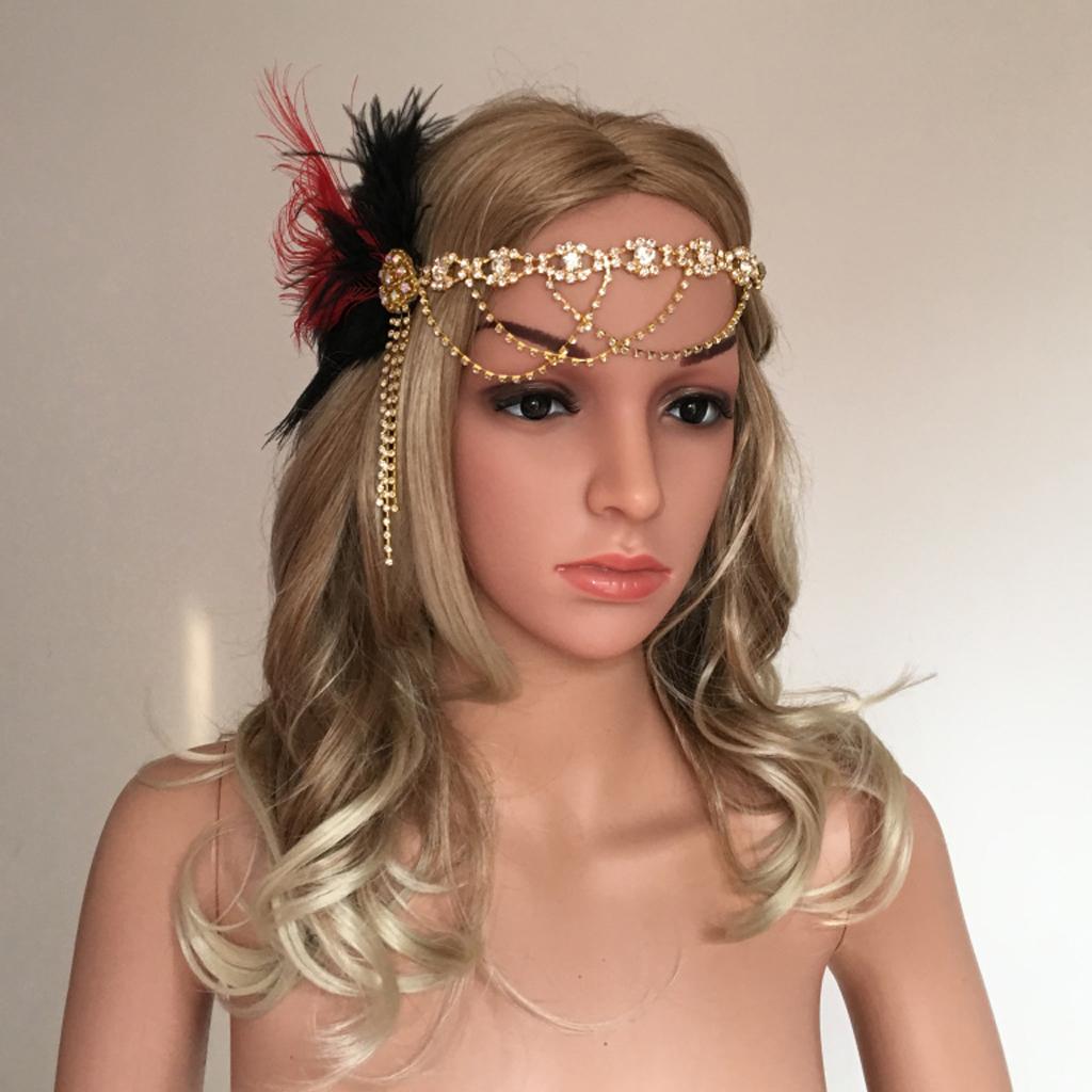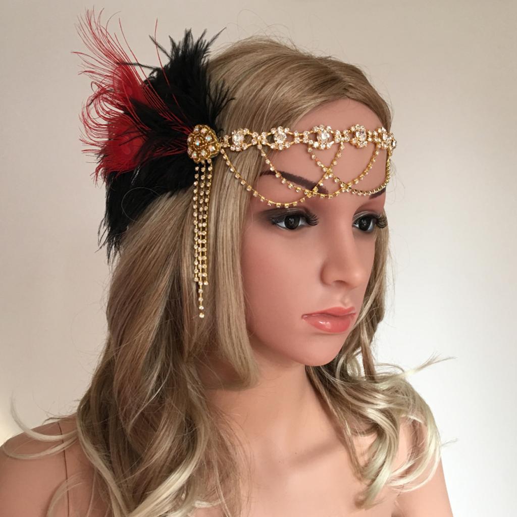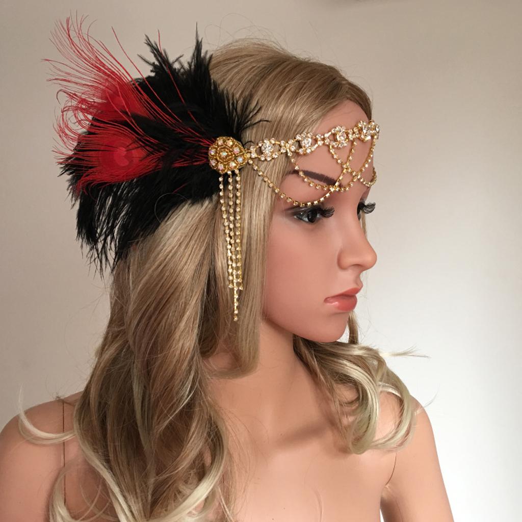 1920s Feather Flapper Hairband Forehead Chain Great Gatsby Headpieces
