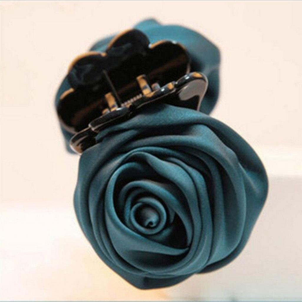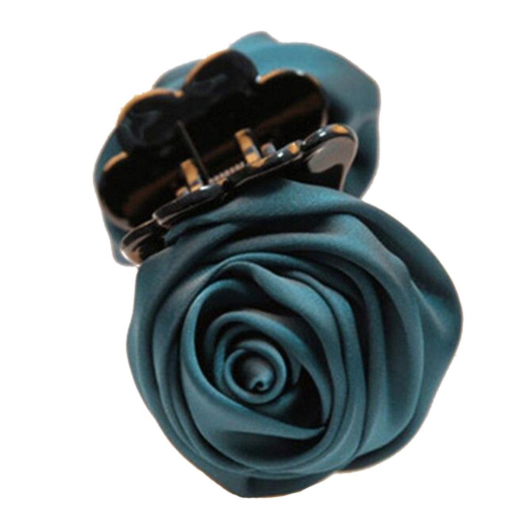 1Pc Chic Handmade Dark Green Rose Flower Banana Barrette Claw Pin Hair Clip