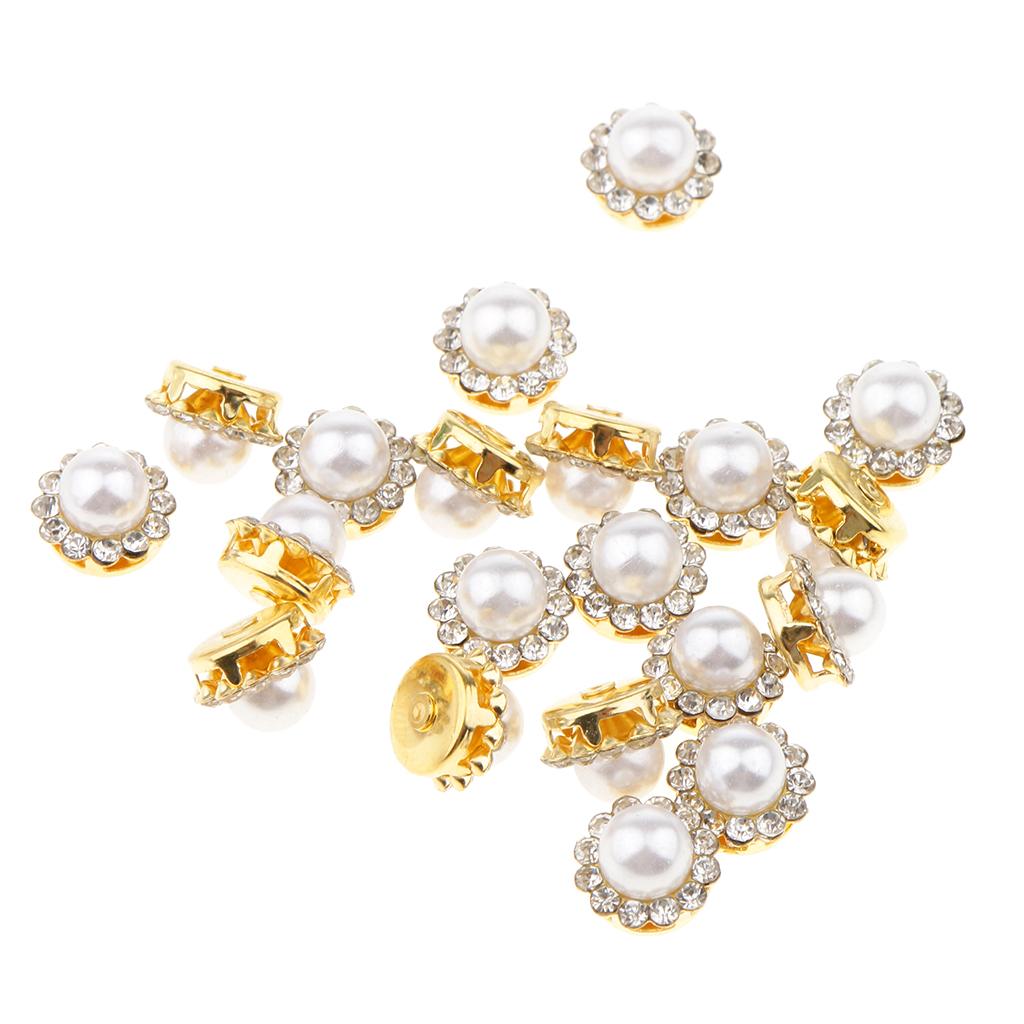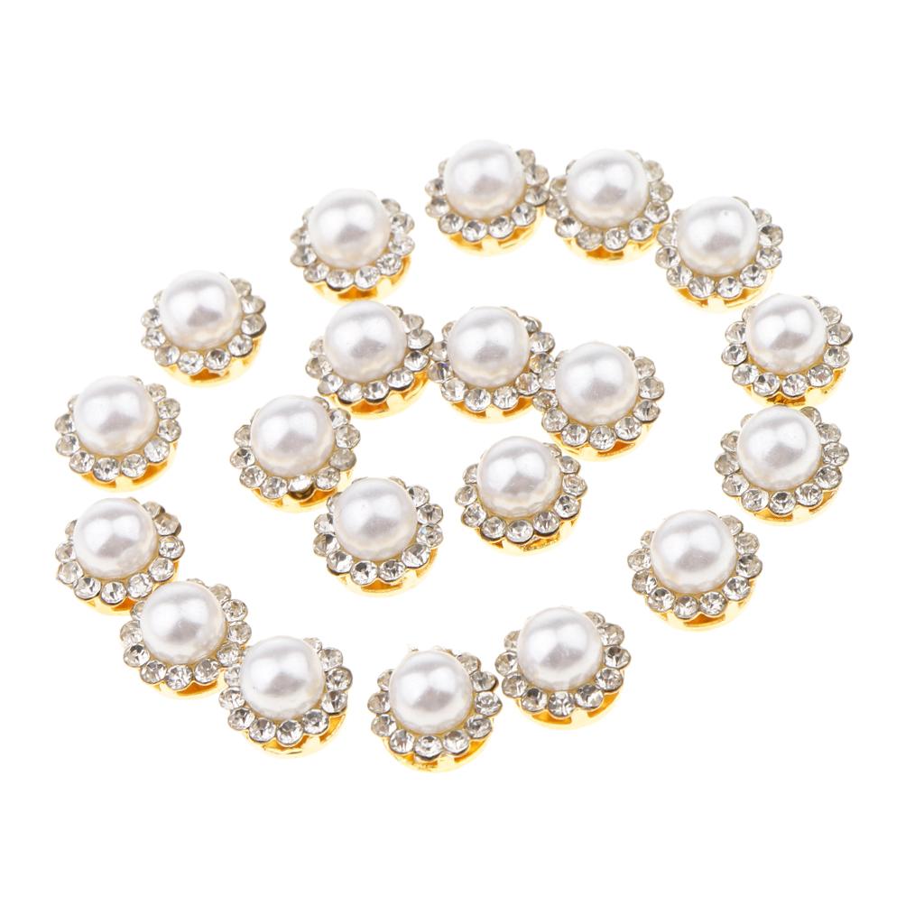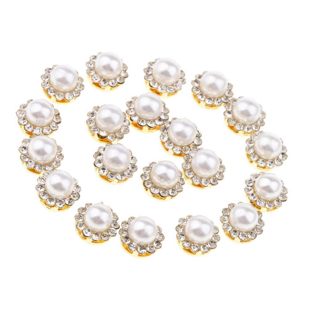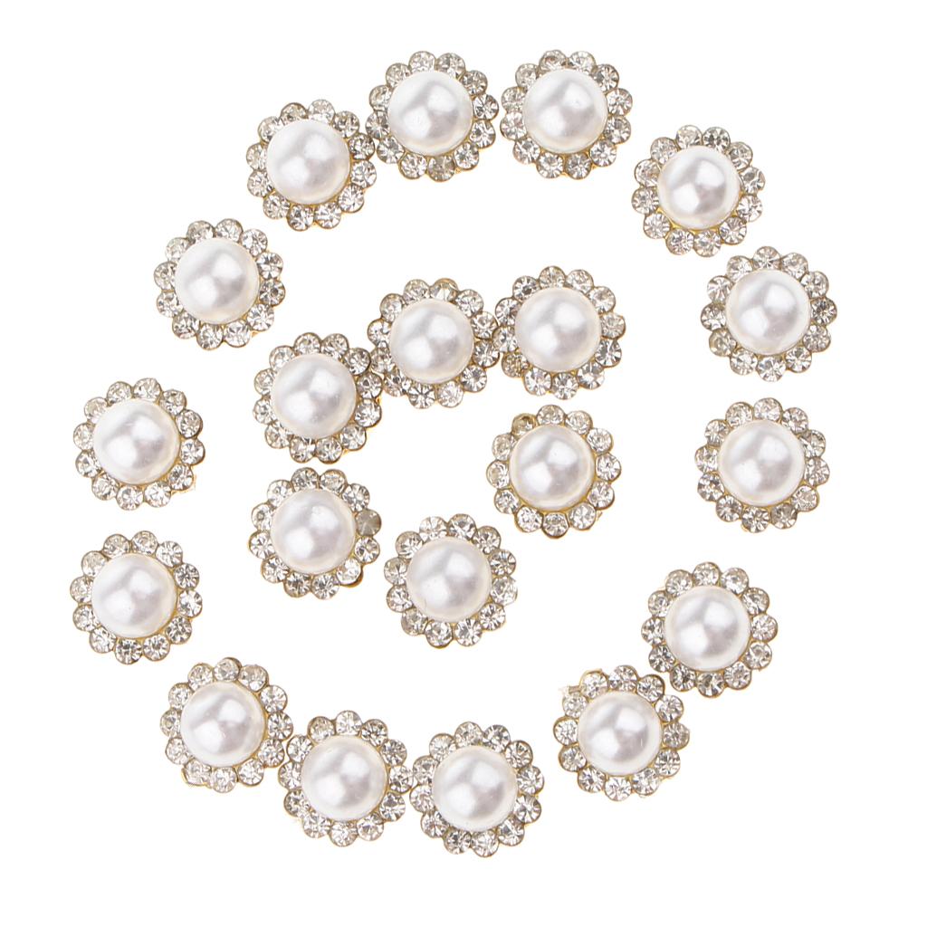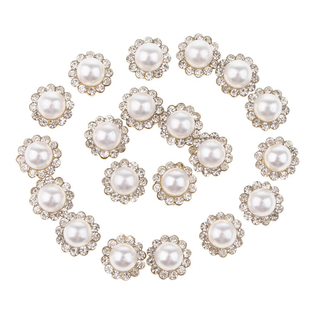 Excellent Rhinestone Buttons: Fashion cute round flatback rhinestone buttons embellishments, with a faux pearl in the center and small rhinestones on the side, elegant, bling, beautiful and shiny.