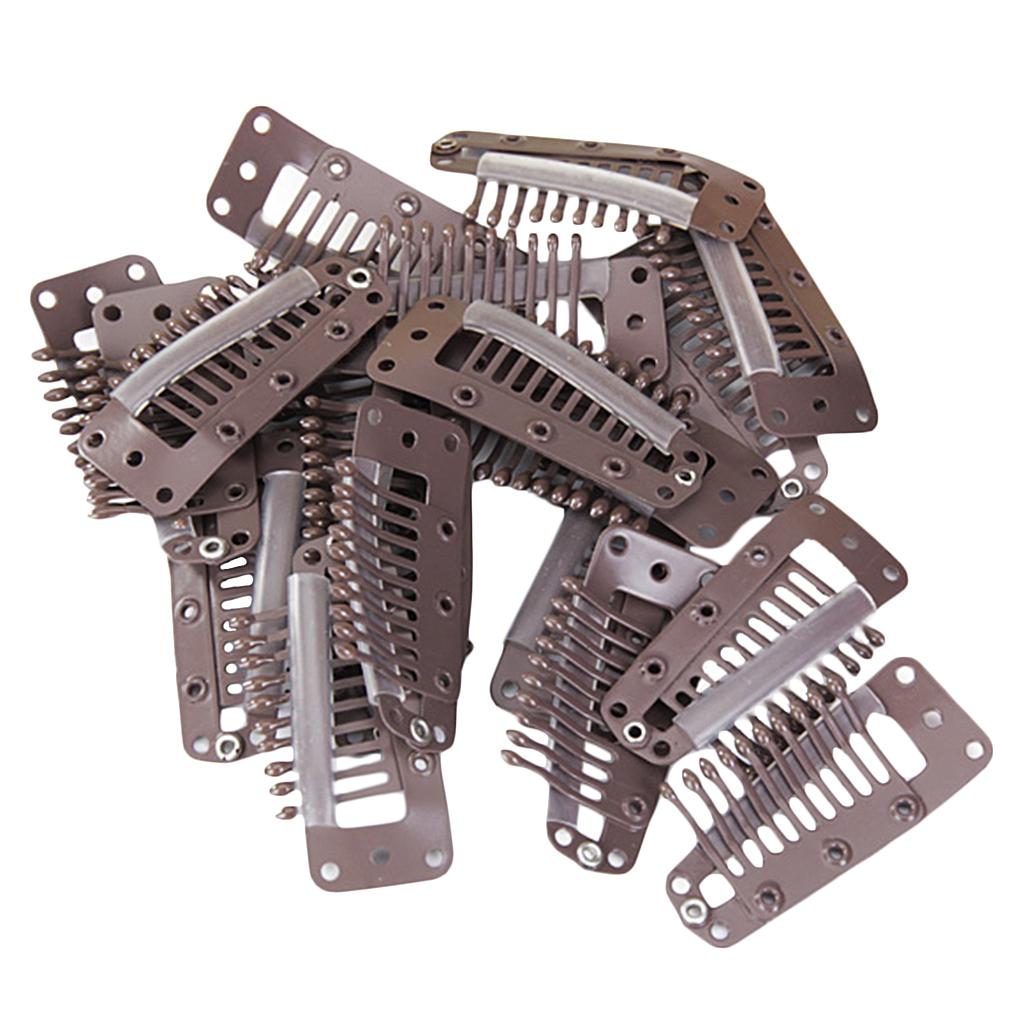 20pcs 10 Teeth Snap-Comb Wig Clips with Rubber Back - Tan