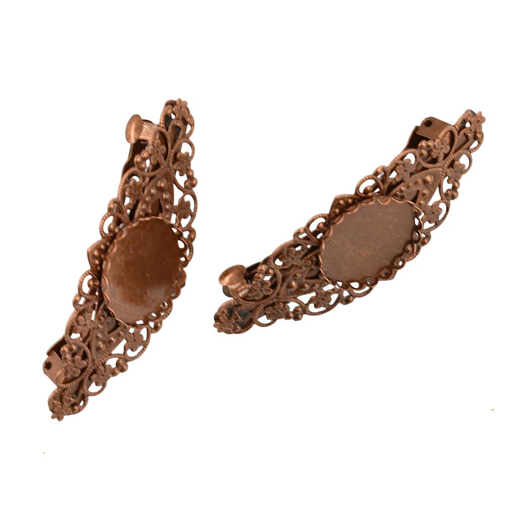 2pcs Antique Copper French Clip Barrette Cabochon Blank Setting Base Finding