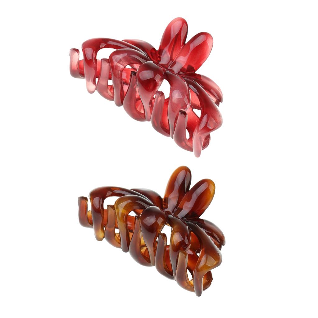 2pieces Simple Design Floral Acrylic Womens Girls Hair Claw Clip Accessory
