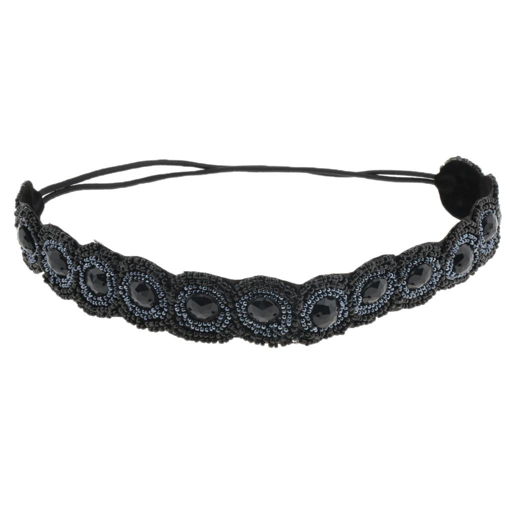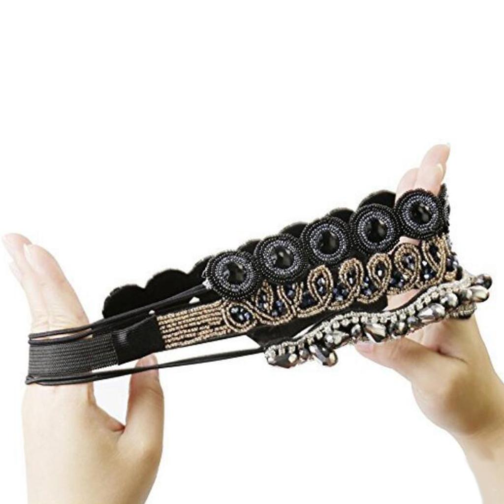 Black Headband: Circumference: approx. 49cm/19.3inch; Beaded Size: 26 x 2.6cm/10.24 x 1.02inch;