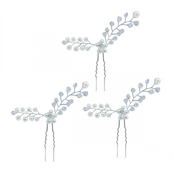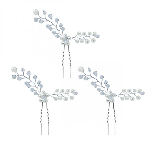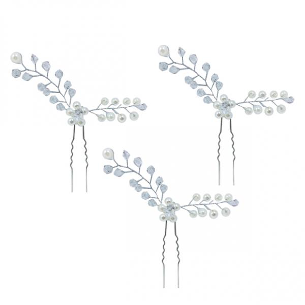 3pcs Wedding Bridal Crystal Rhinestone Faux Pearl Wheat Hair Pin Clips