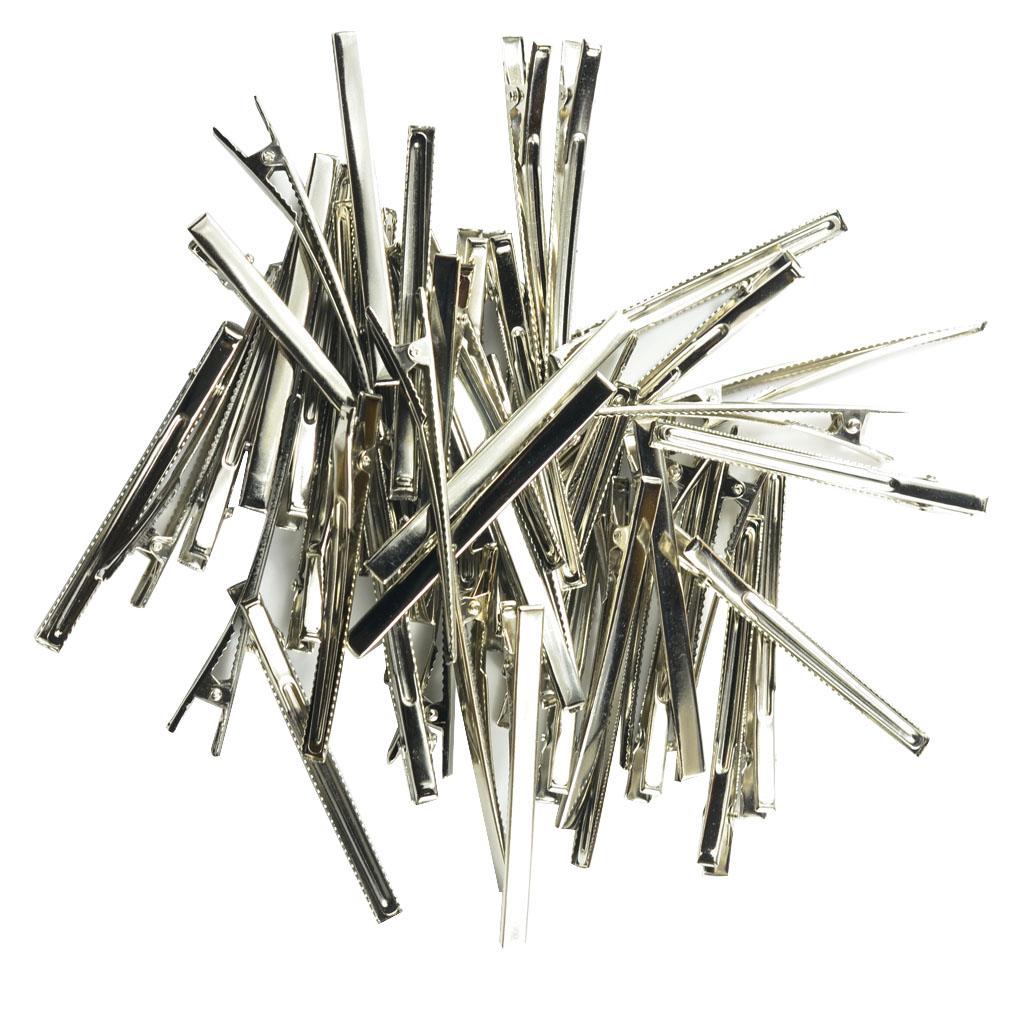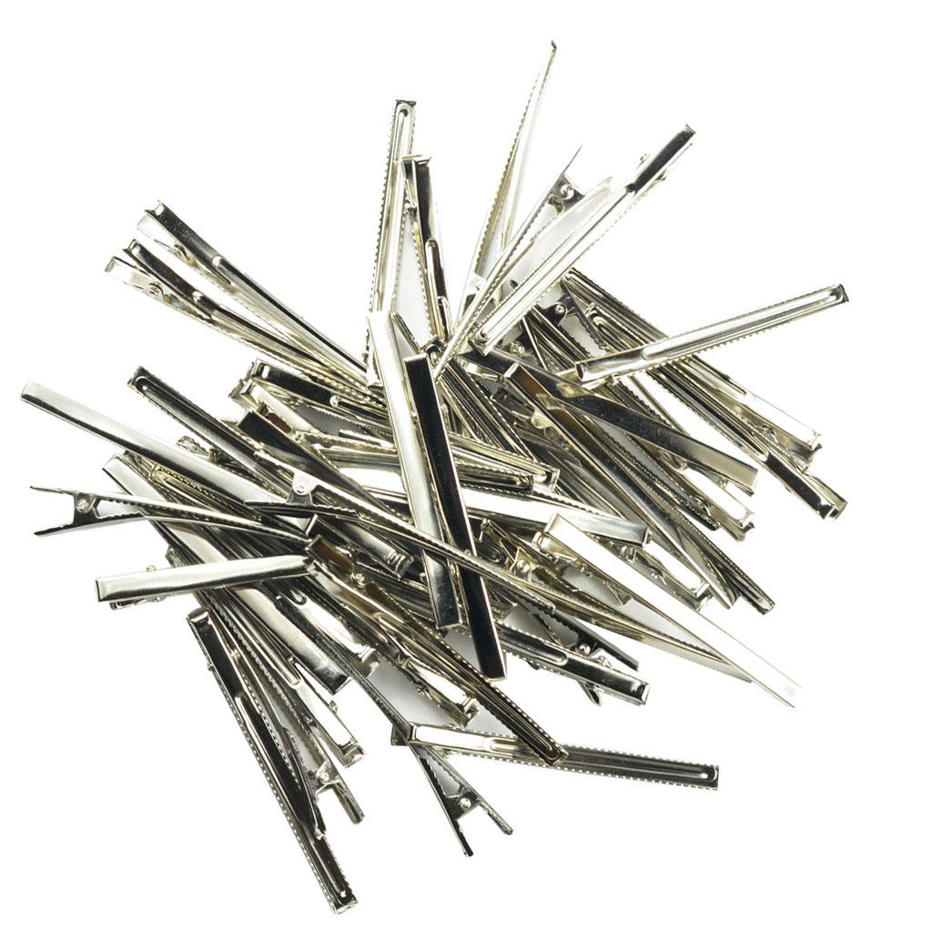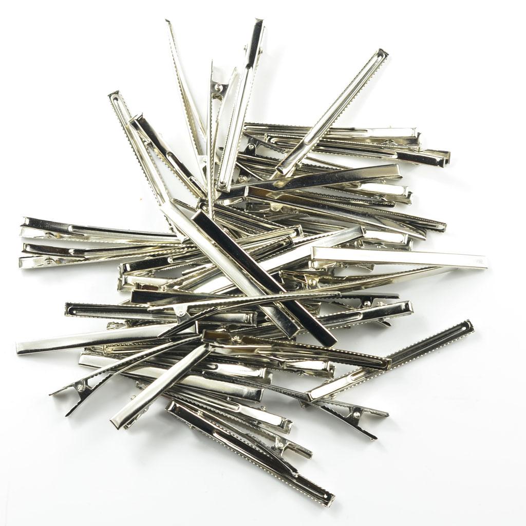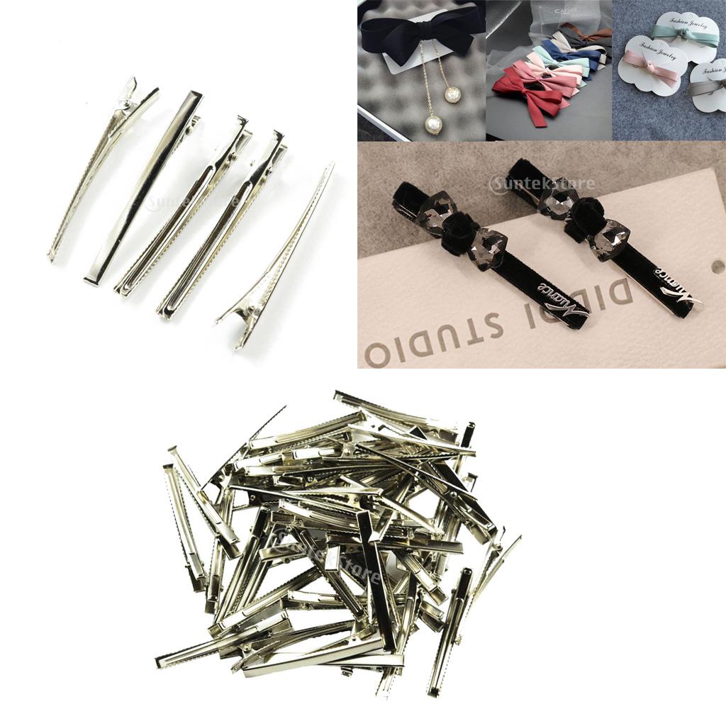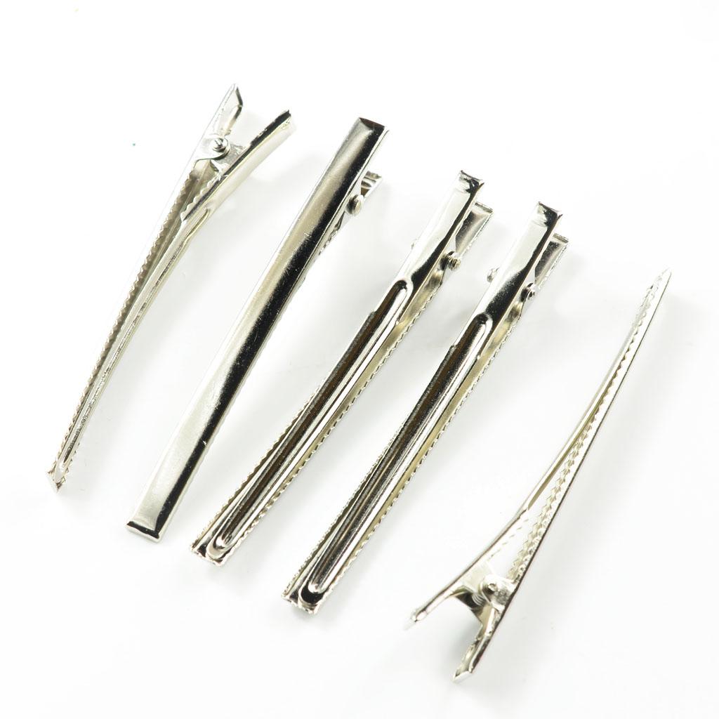 50 Pieces Flat Metal Single Prong Duck Alligator Hair Clips DIY Bows 6x80mm