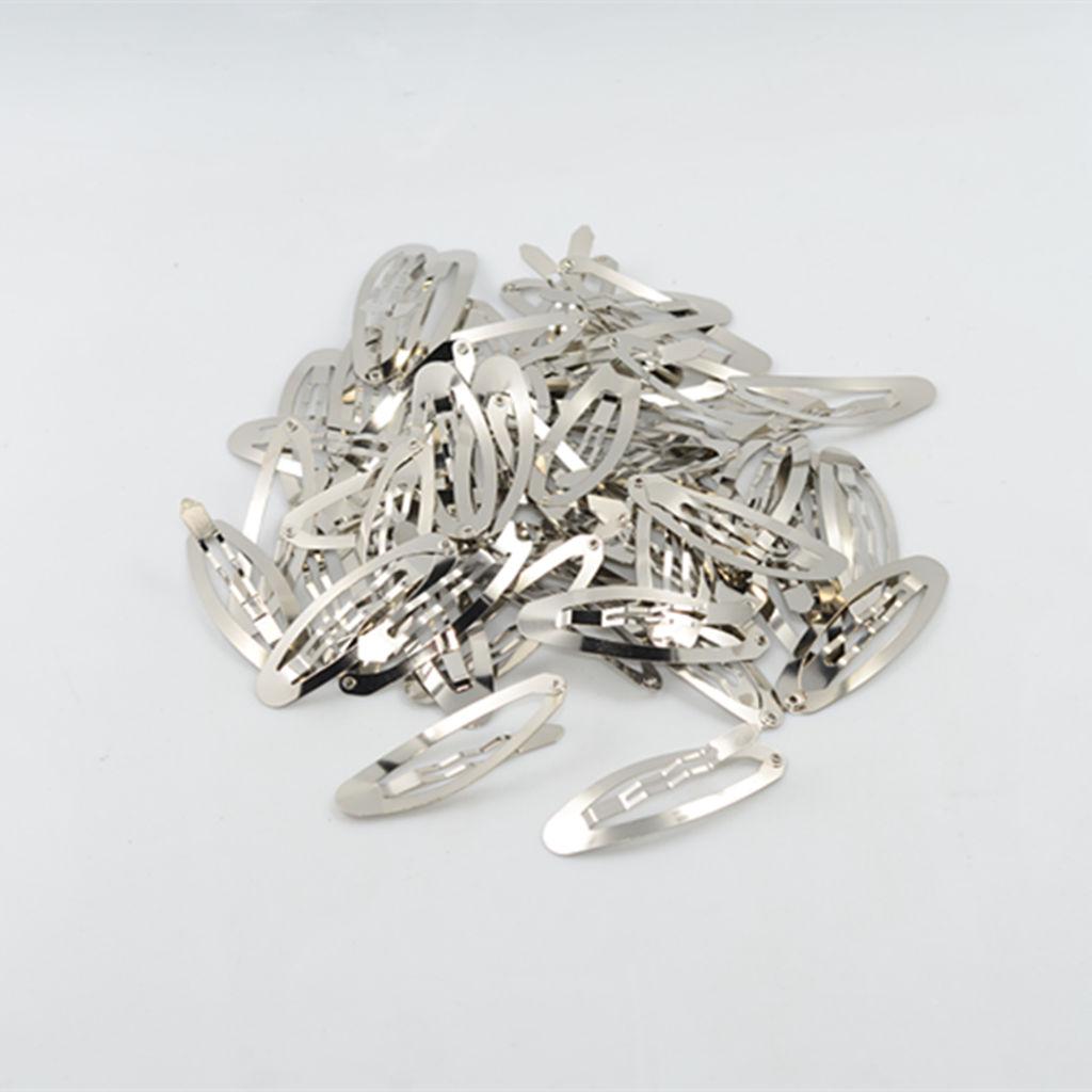50pcs Rounded Snap Clip Oval Silver Metal Hair Bow Click Barrette DIY 6cm