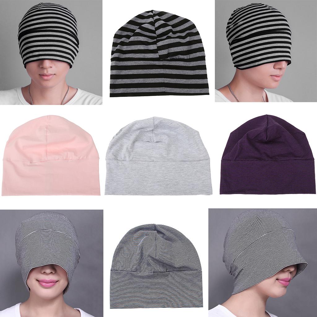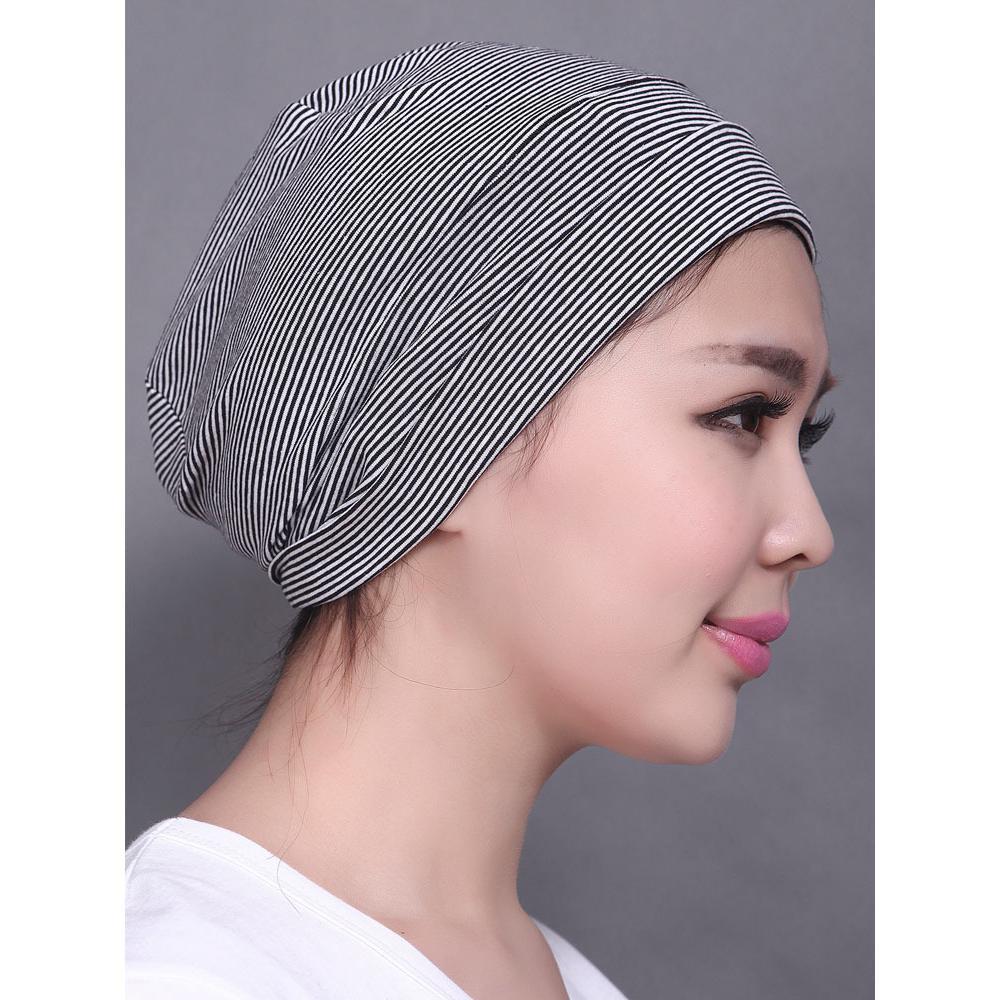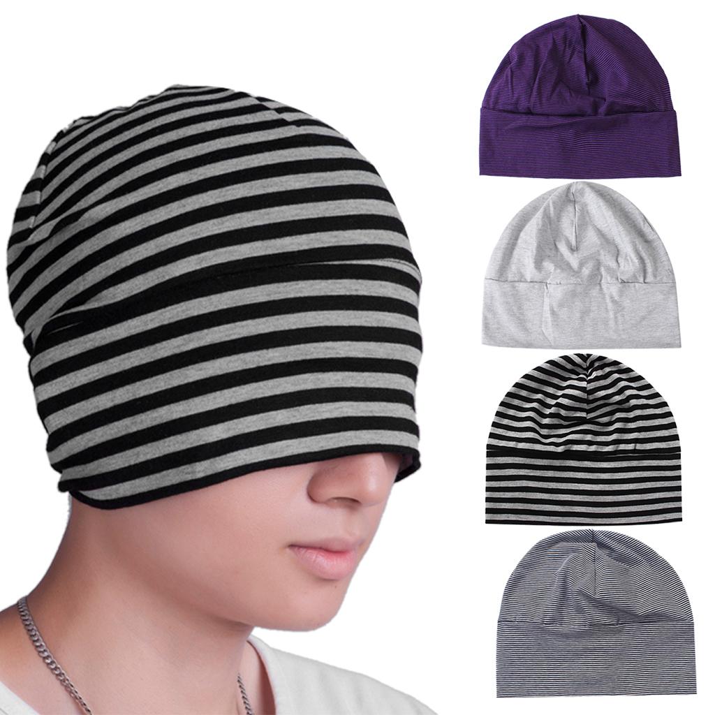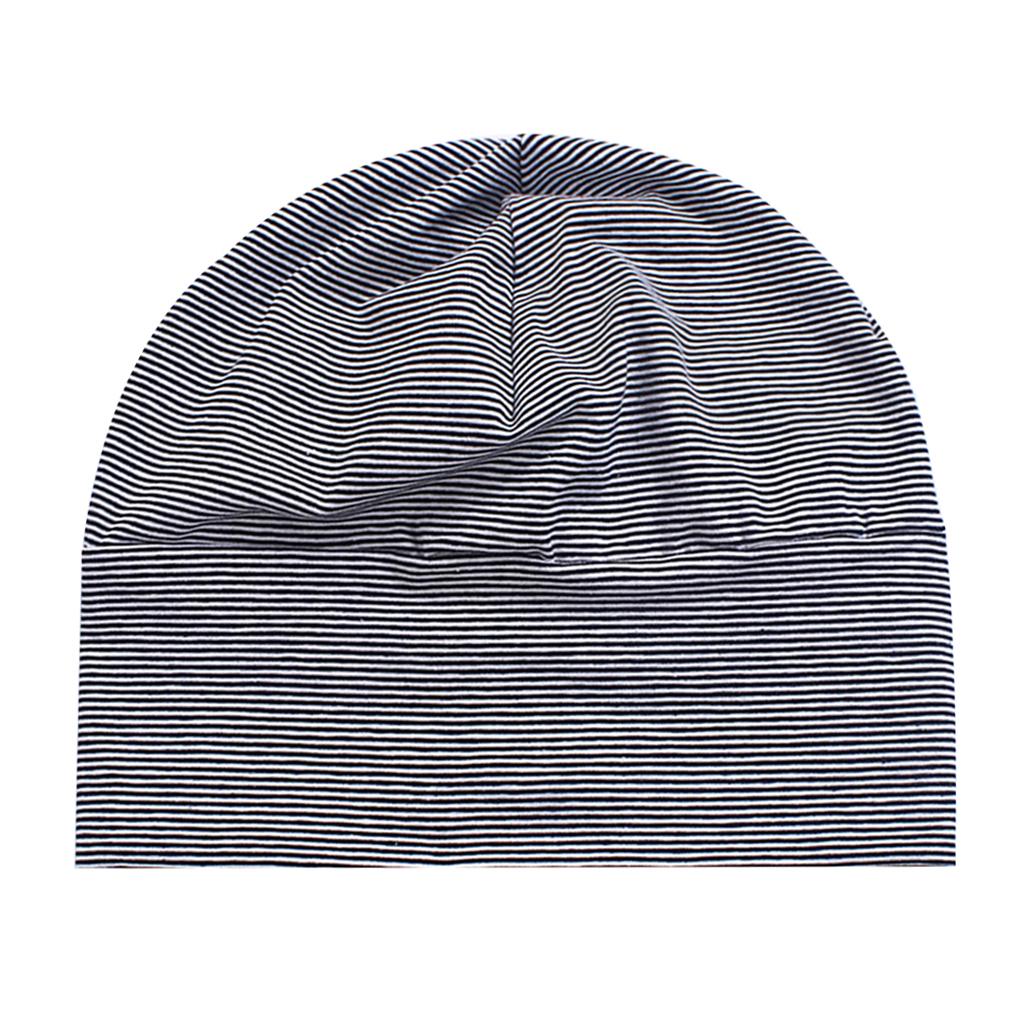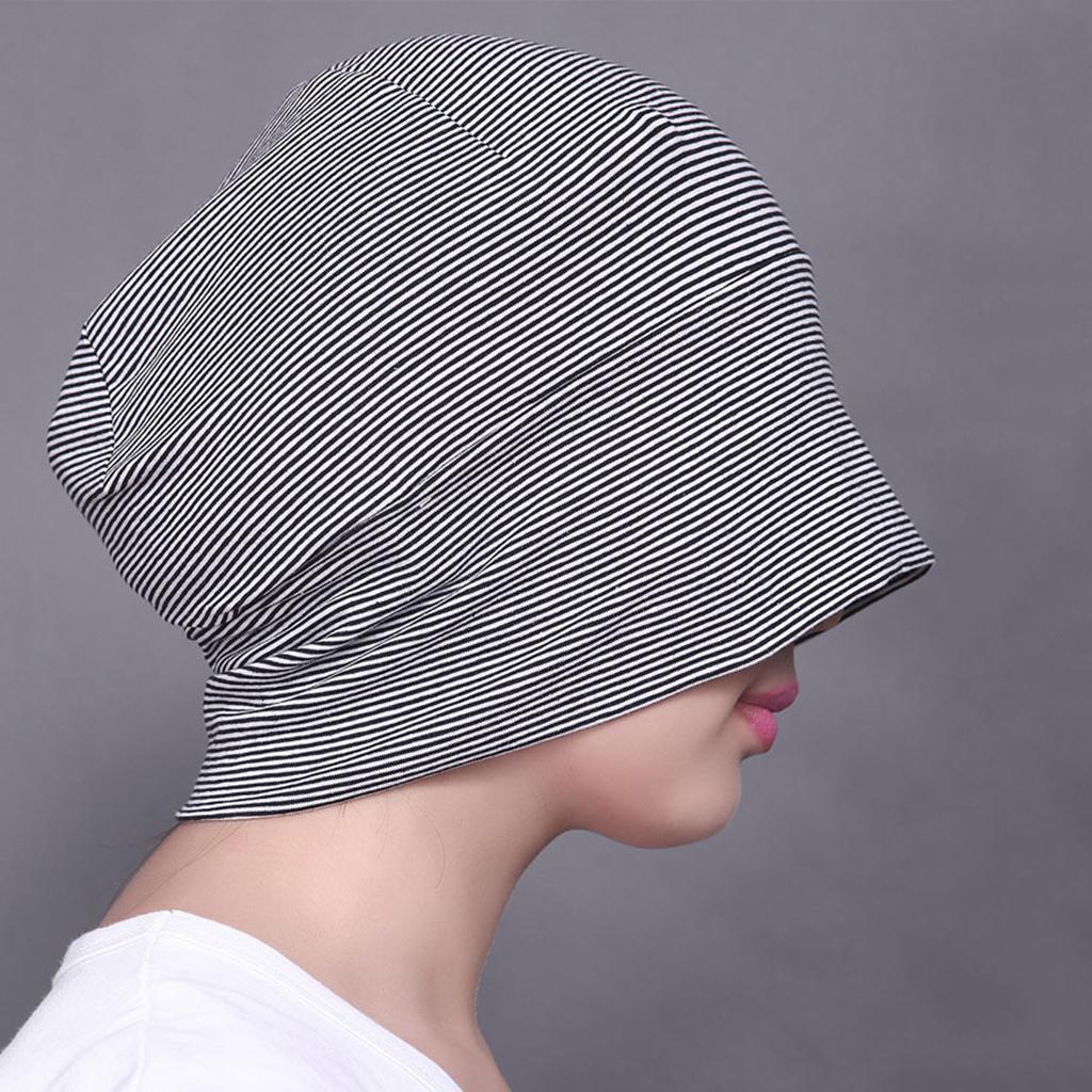 Adult Unisex All Cotton Night Cap Sleep Eyecover Striped Headcap Black White