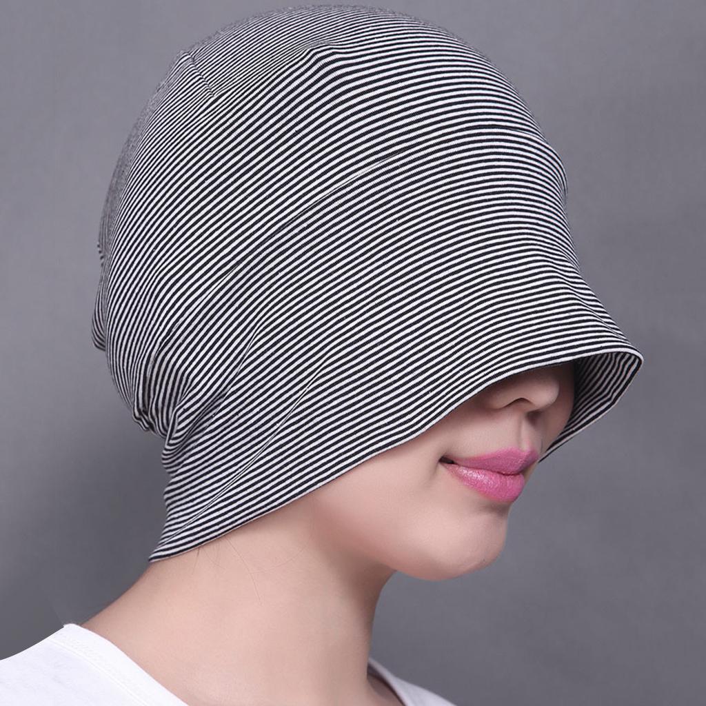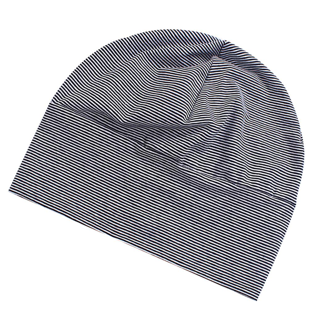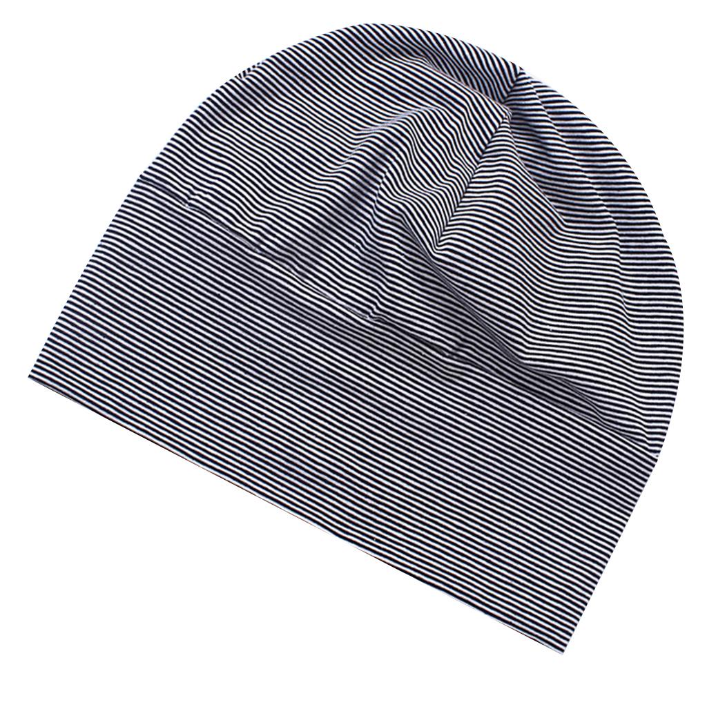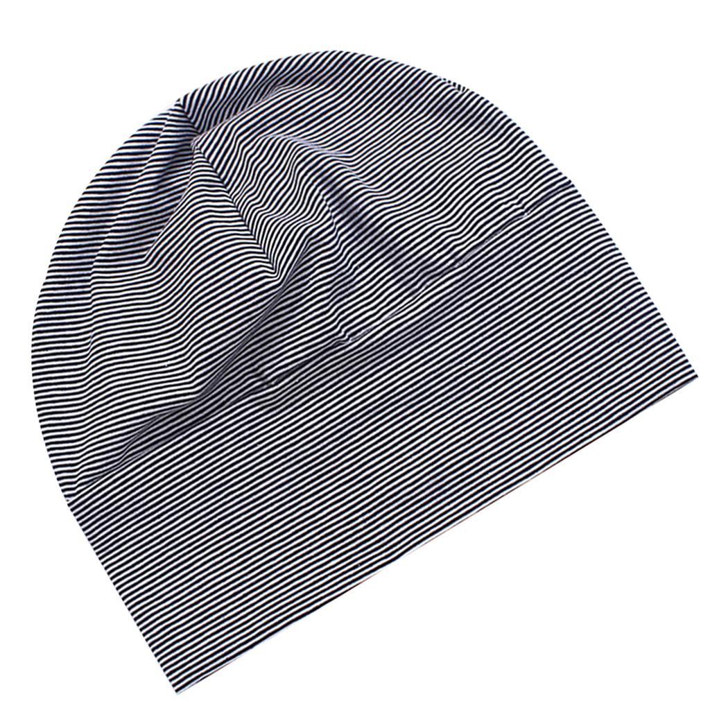 Adult Unisex All Cotton Night Cap Sleep Eyecover Striped Headcap Black White