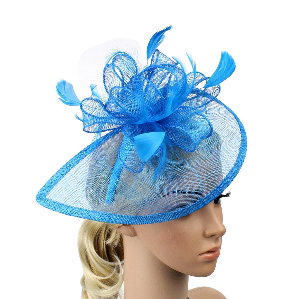 Aliceband Hat Fascinator Feather Headband Wedding Lady Royal Ascot Blue