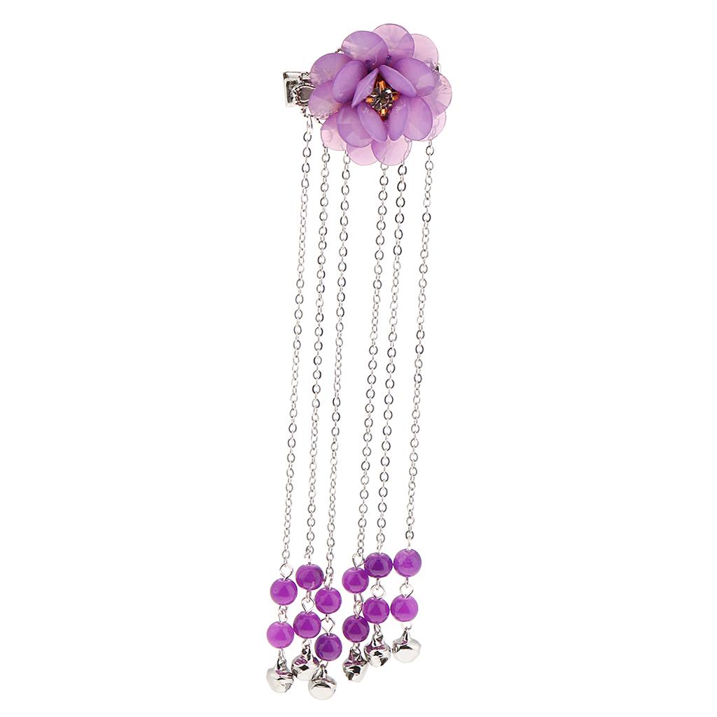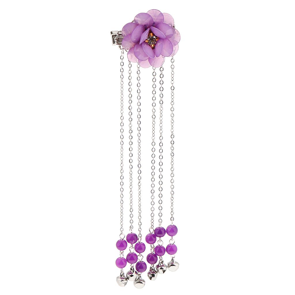 Ancient Alligator Hair Pin Chinese Cosplay Flower Tassel Hair Clip Purple