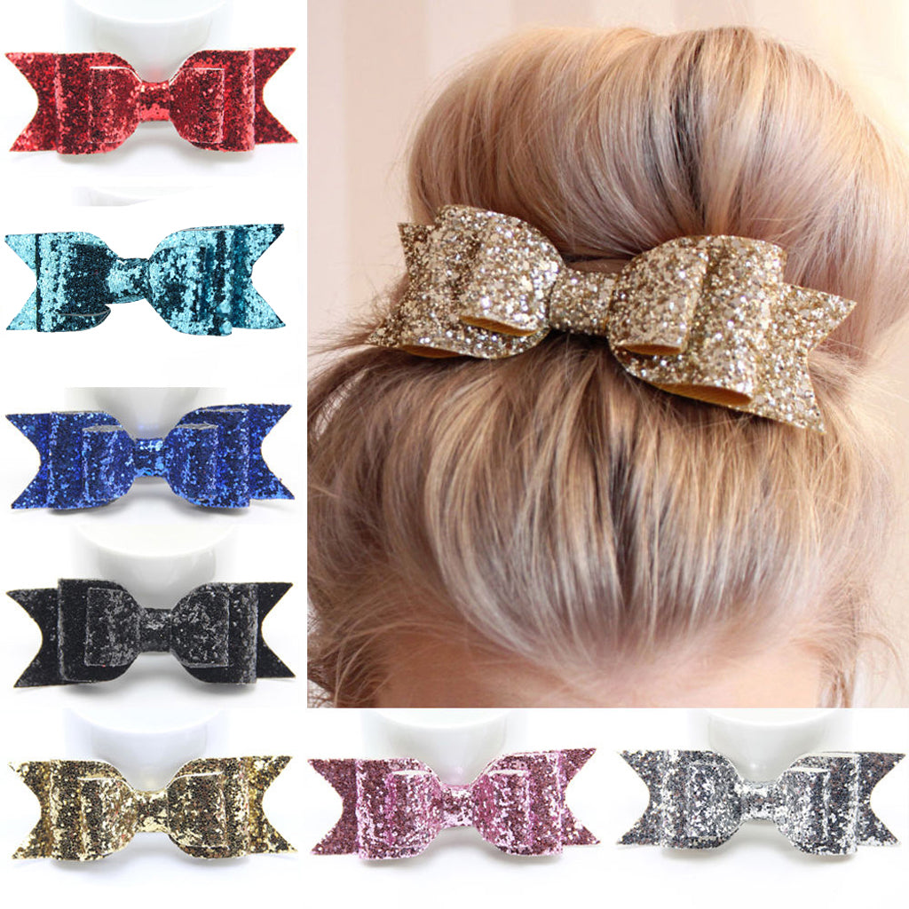 Baby Girls Women Fashionable Bow Hair Clip Glitter Headwear Decor Hair Ornaments Blue