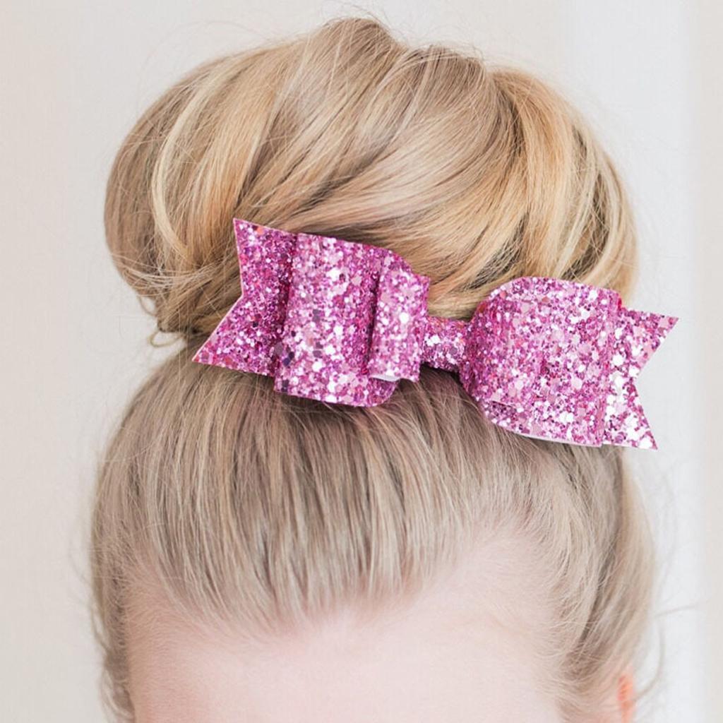 Baby Girls Women Fashionable Bow Hair Clip Glitter Headwear Decor Hair Ornaments Pink