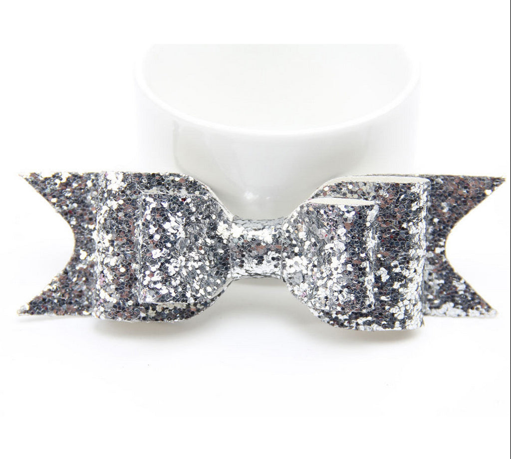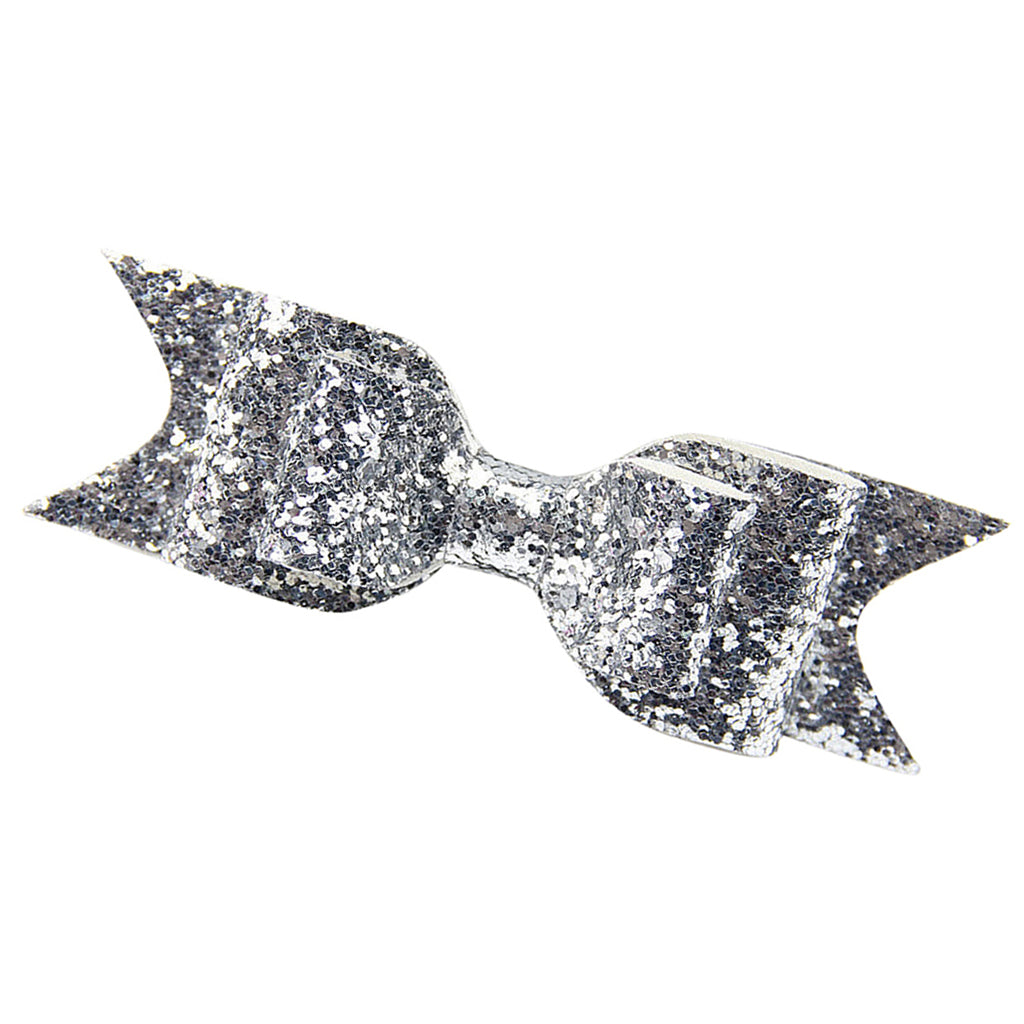 Baby Girls Women Fashionable Bow Hair Clip Glitter Headwear Decor Hair Ornaments Silver