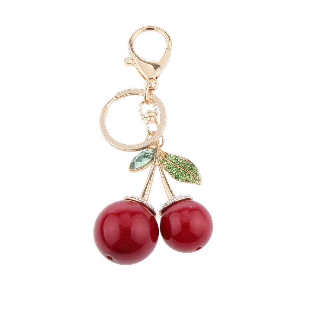 Bag Keyring Rhinestone Crystal Keychain Red Cherry Pendant Car Key Hanger