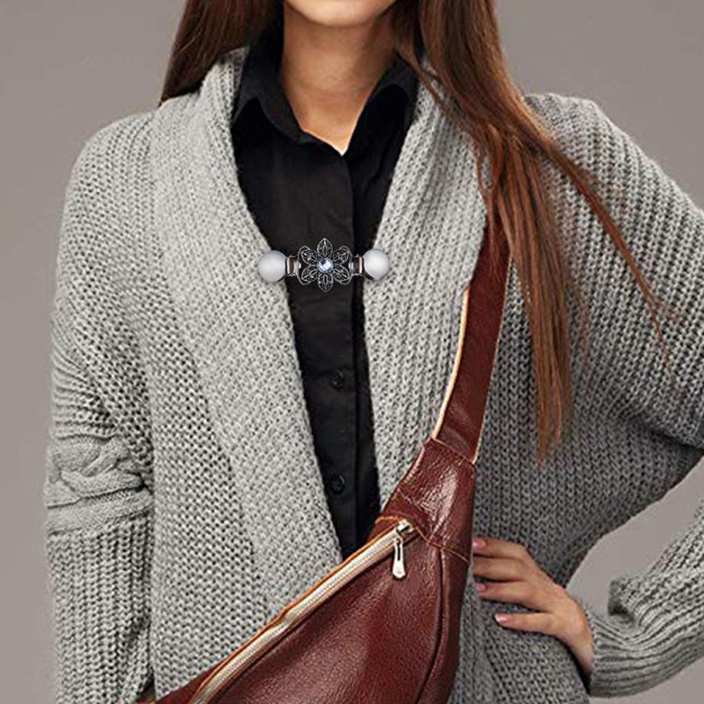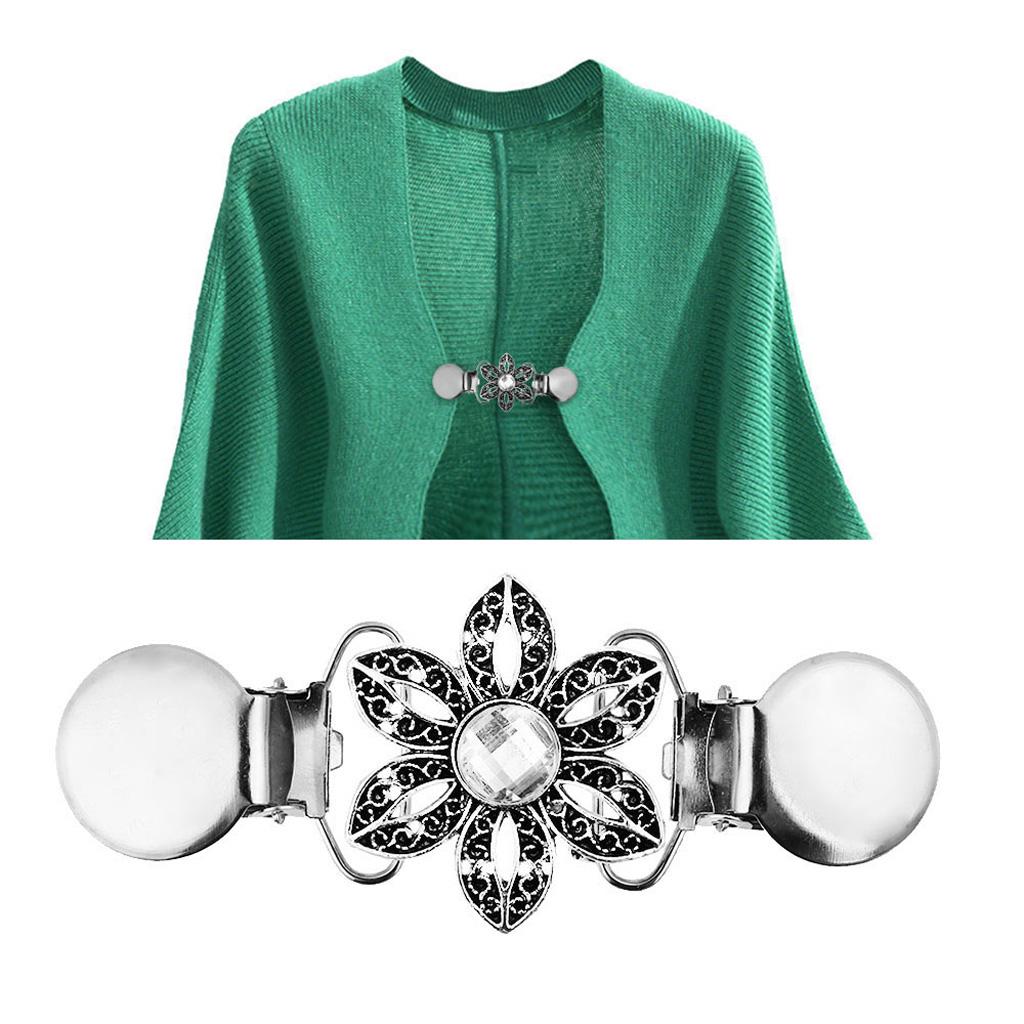 Cardigan Duck Clips Clasps Crystal Shawl Blouse Sweater Shirt Collar Holder