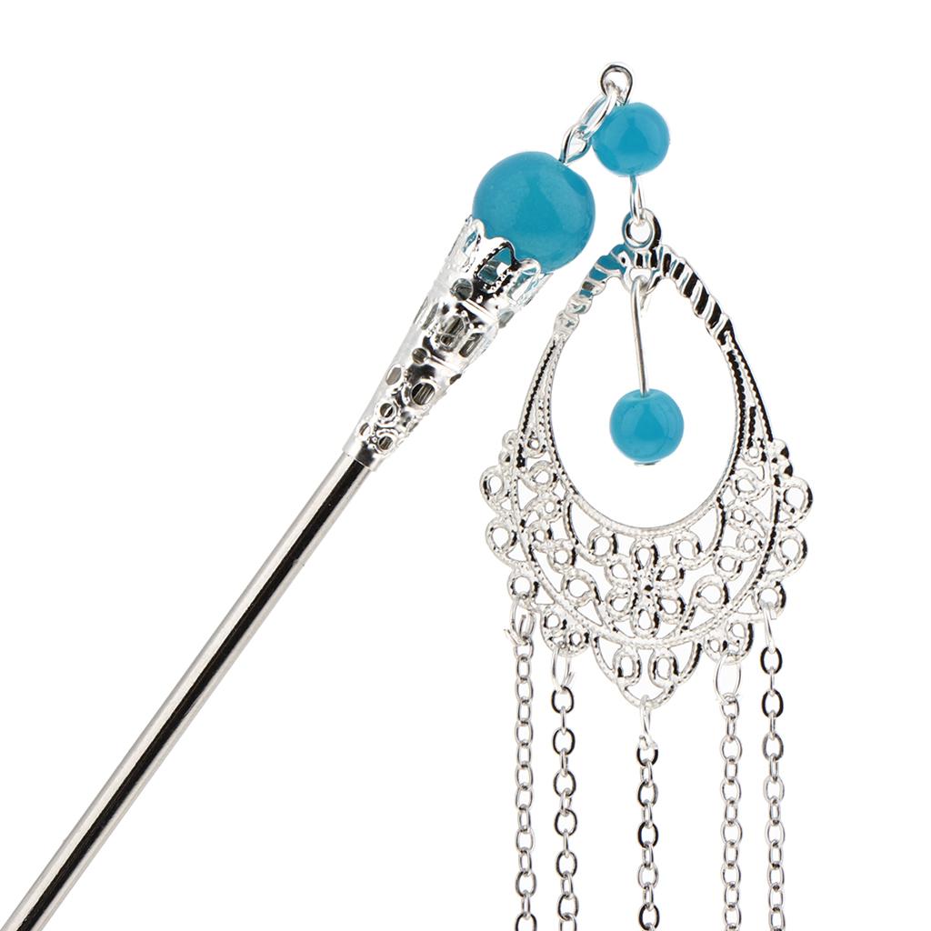 Chinese Traditional Hair Stick Shawl Pin Women Hair Accessory Sky Blue
