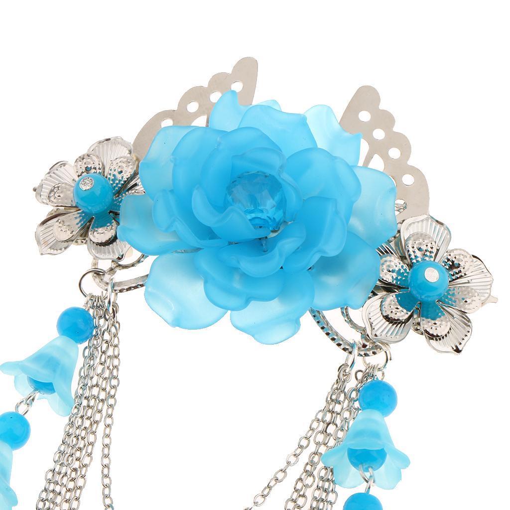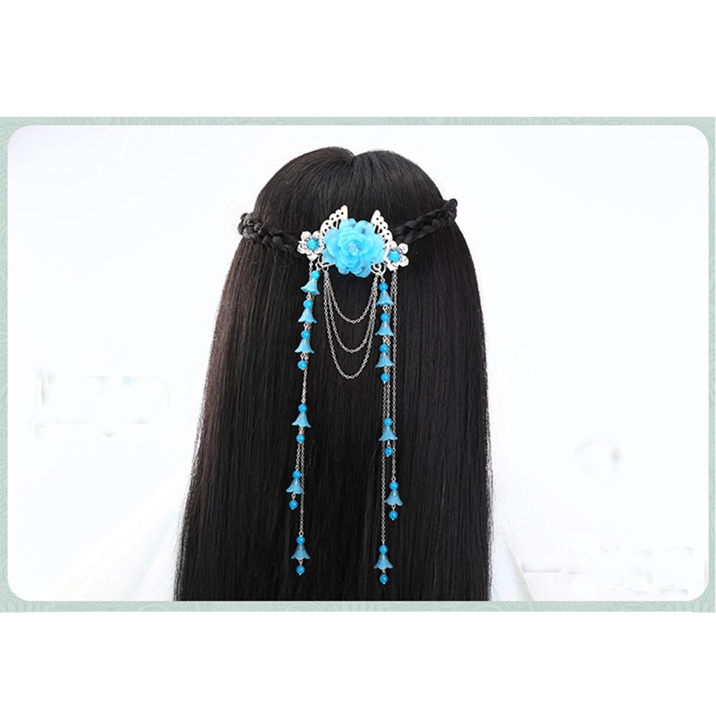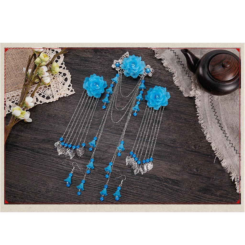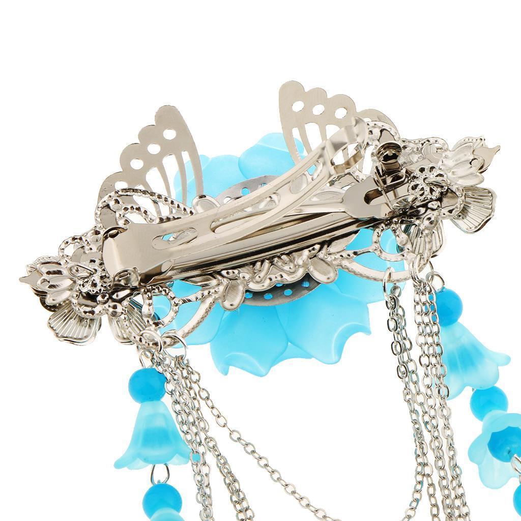 Costume Classic Flower Hair Clip Tassel Hanfu COS Hair Ornaments Lake Blue