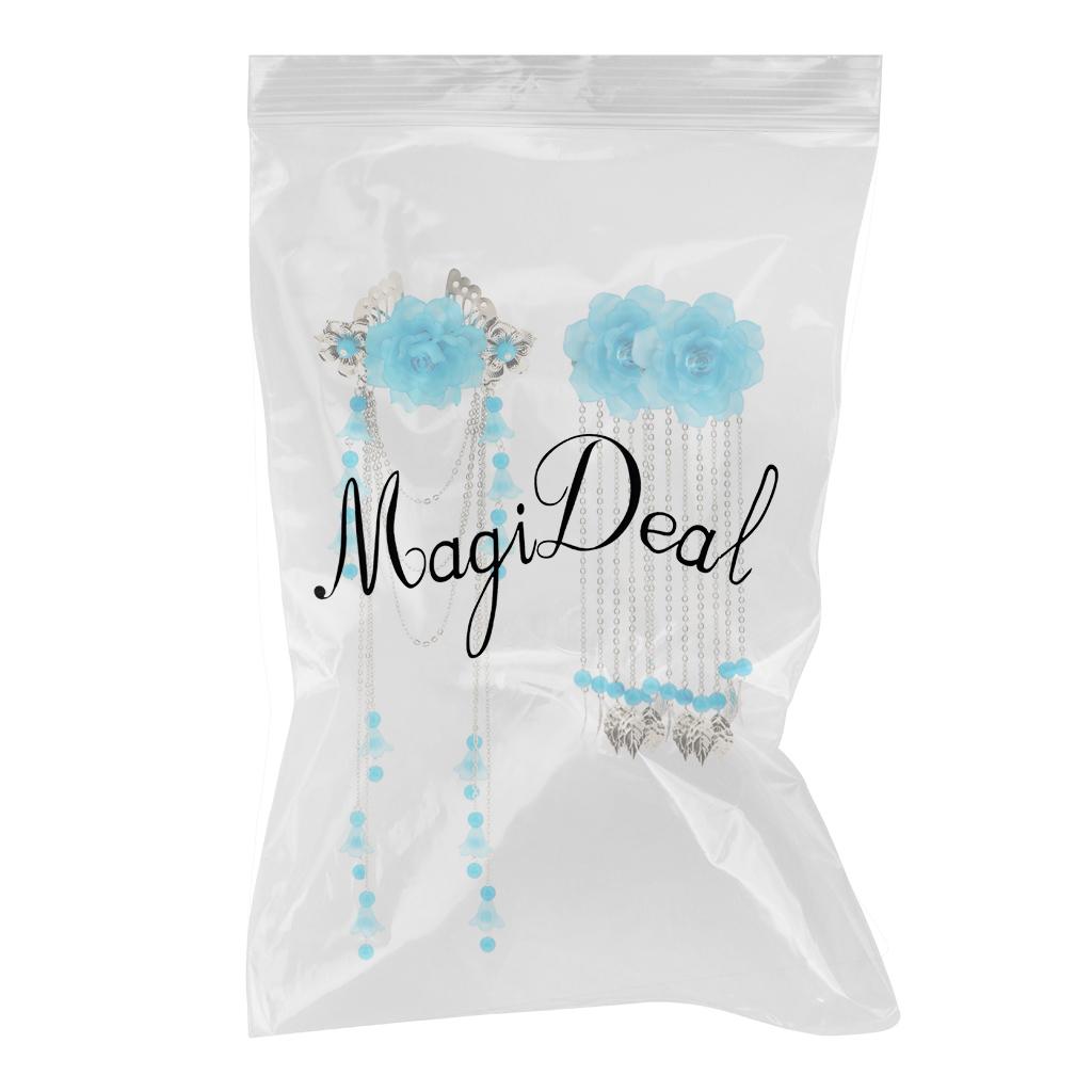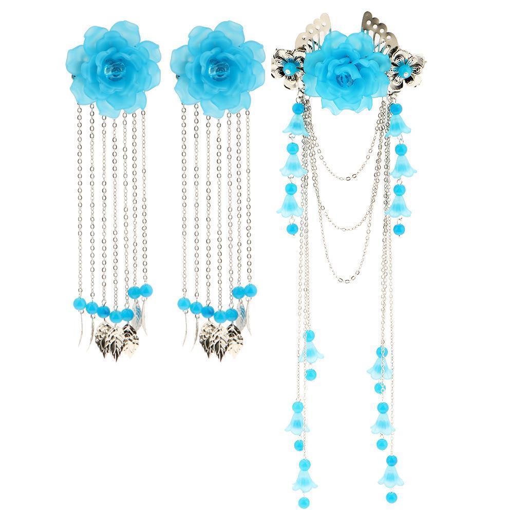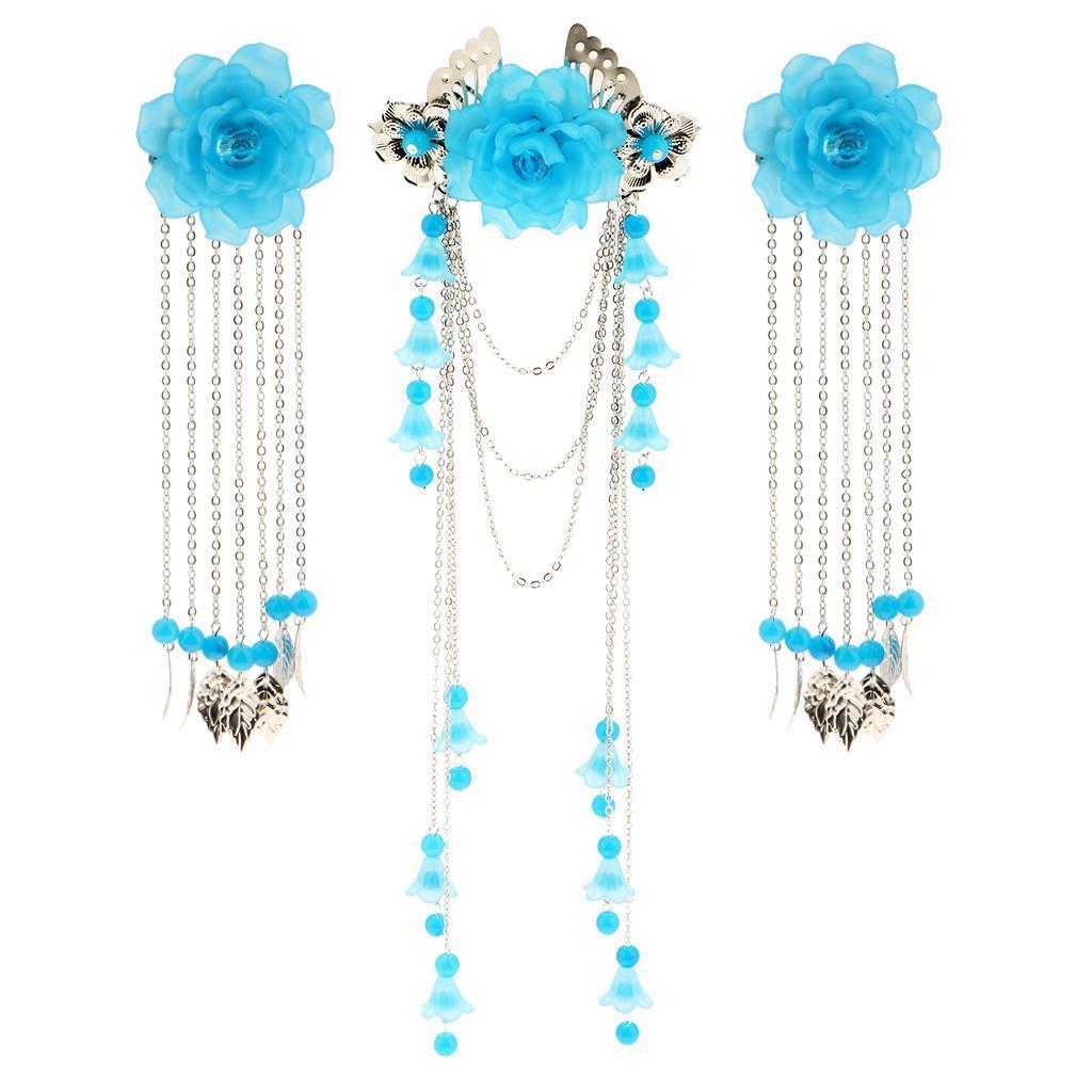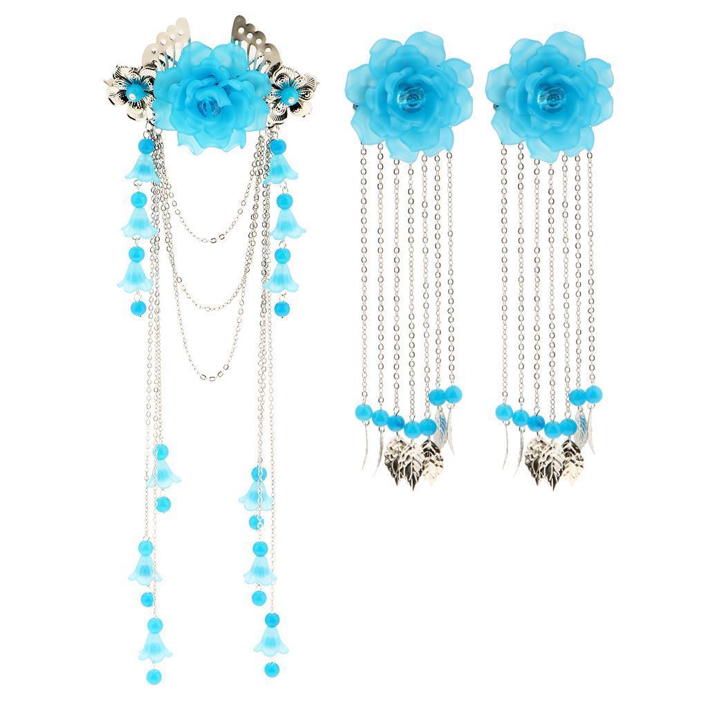 Costume Classic Flower Hair Clip Tassel Hanfu COS Hair Ornaments Lake Blue