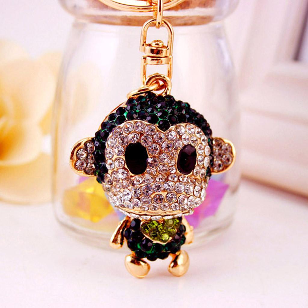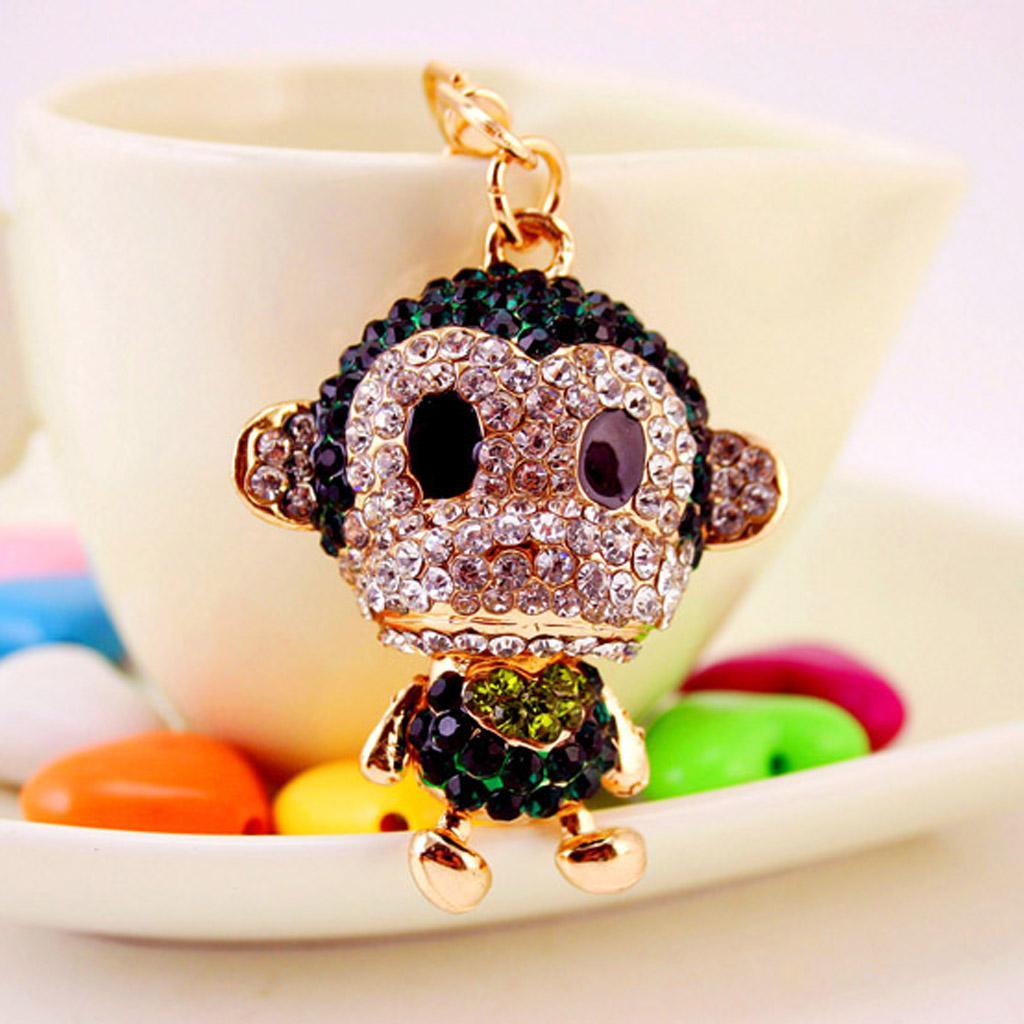 Crystal Keyring Charm Pendant Bag Key Ring Chain Keychain Green Monkey