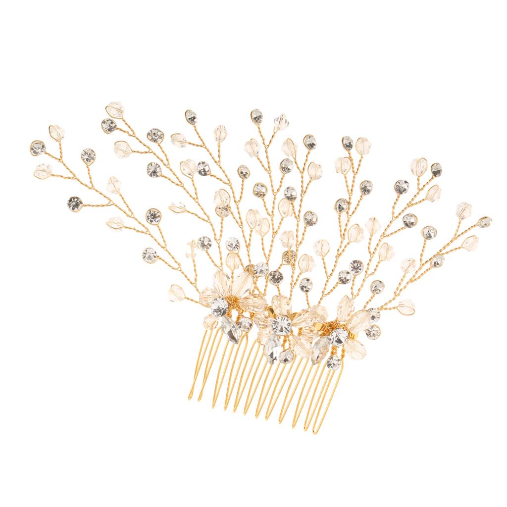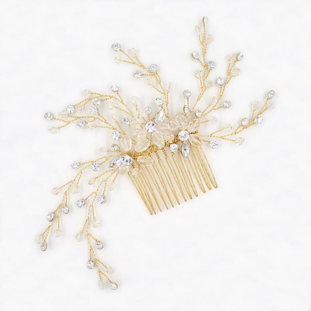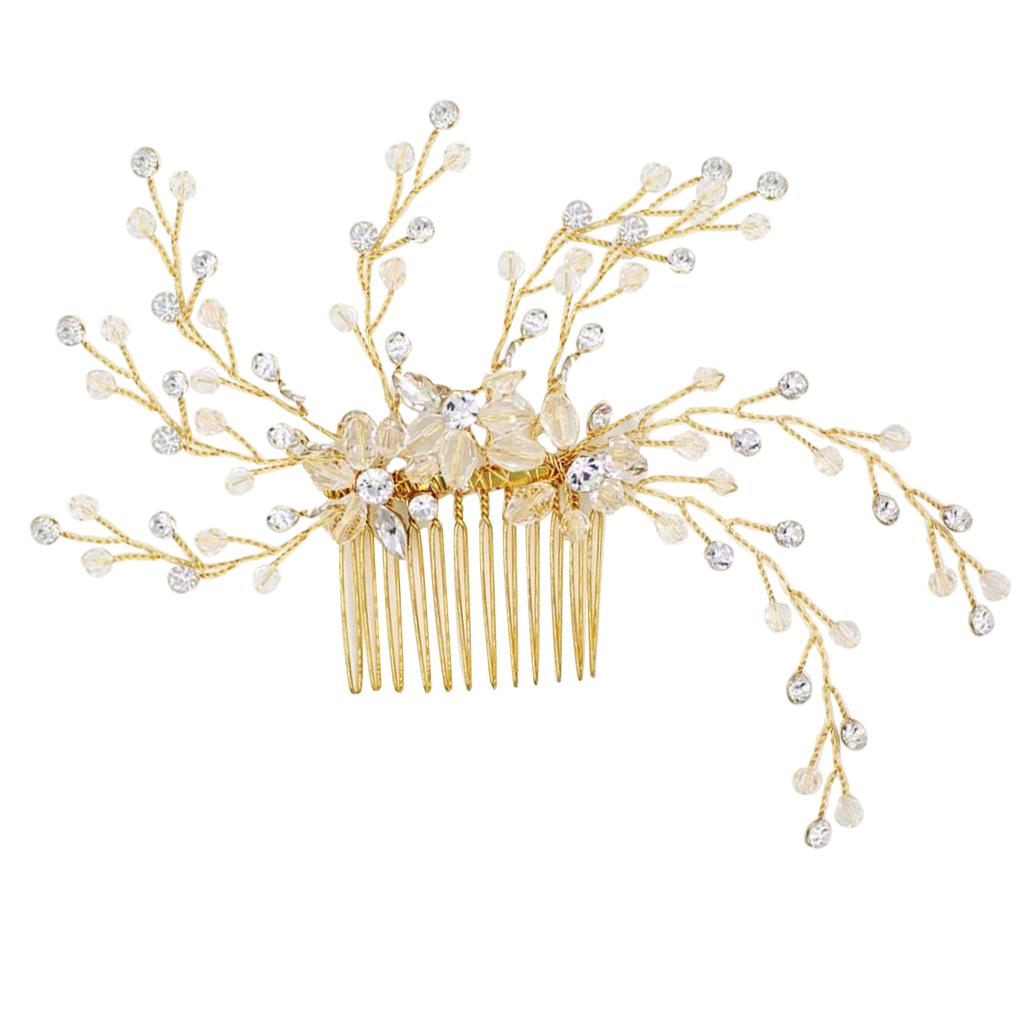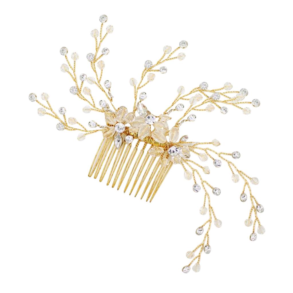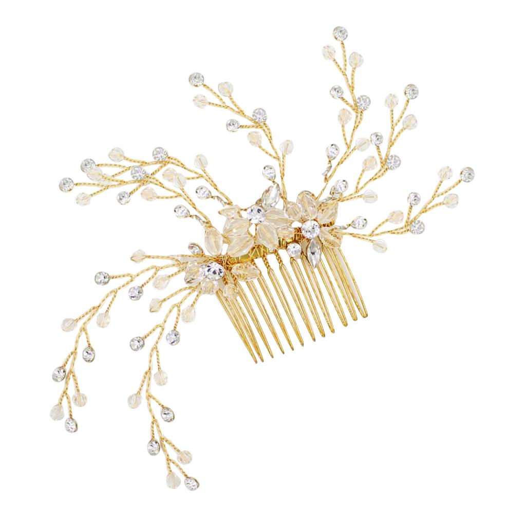 Delicate Crystal Rhinestone Flower Branches Hair Comb Bride Accessory Gold