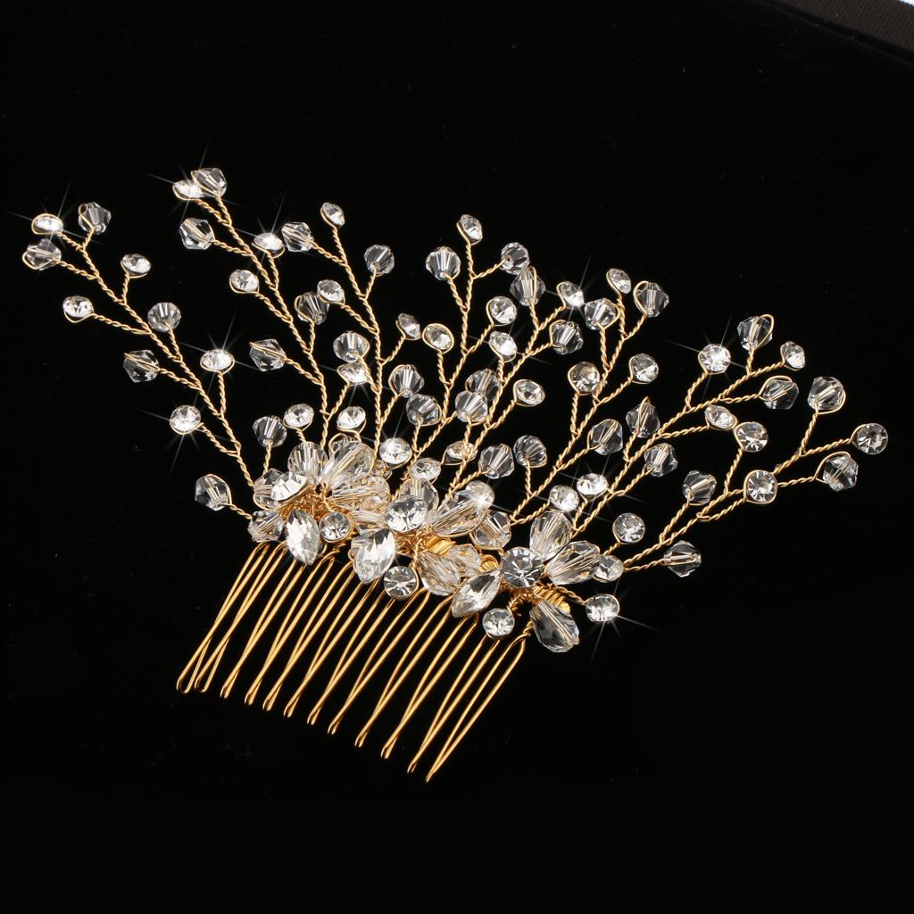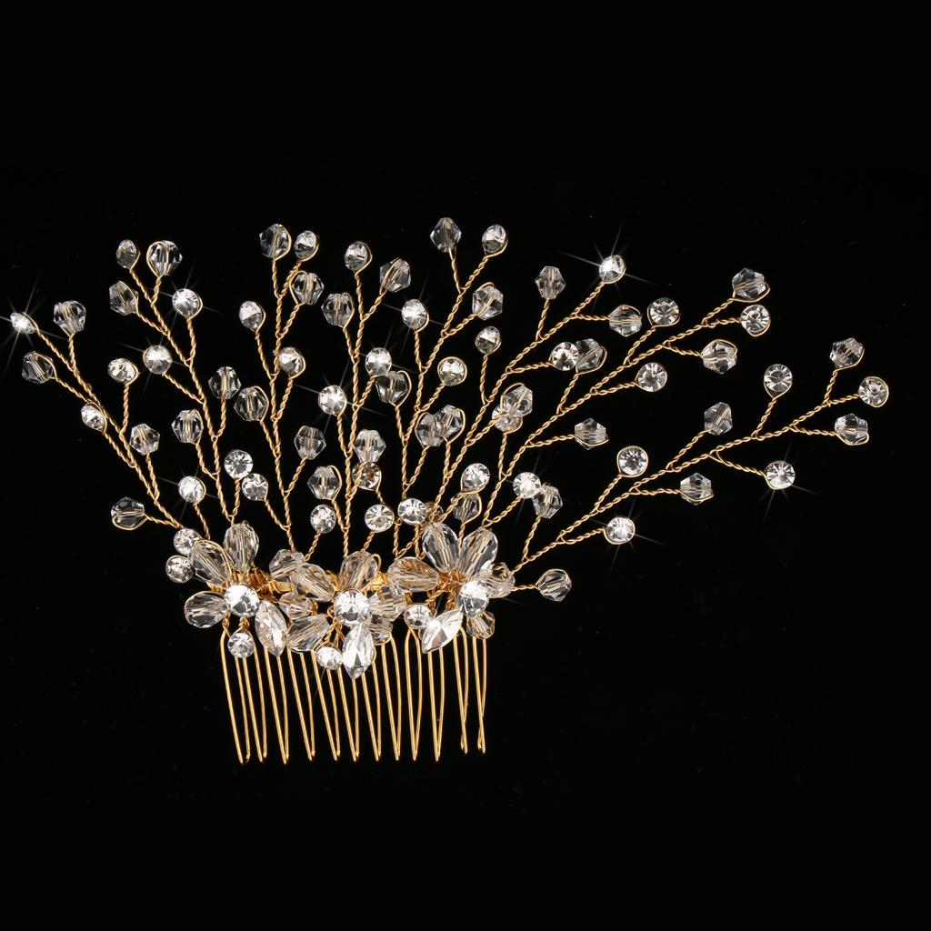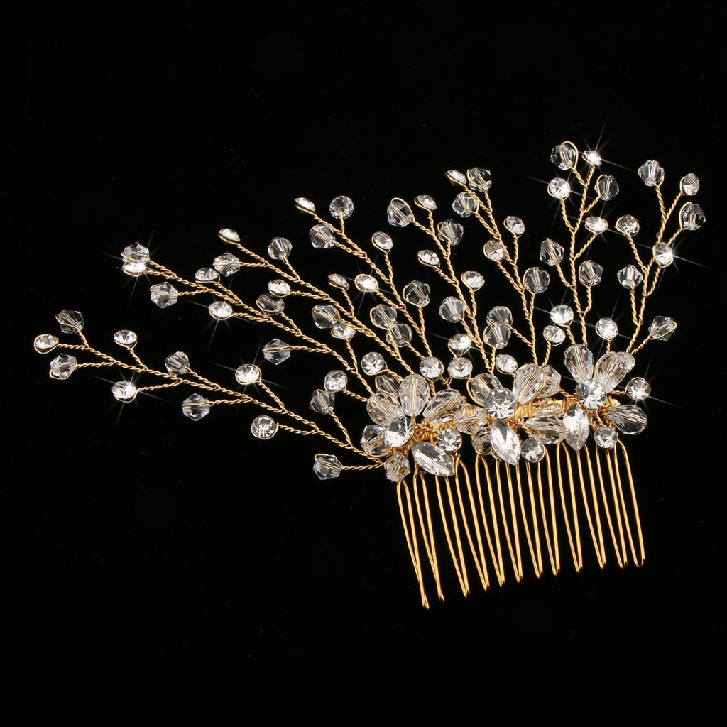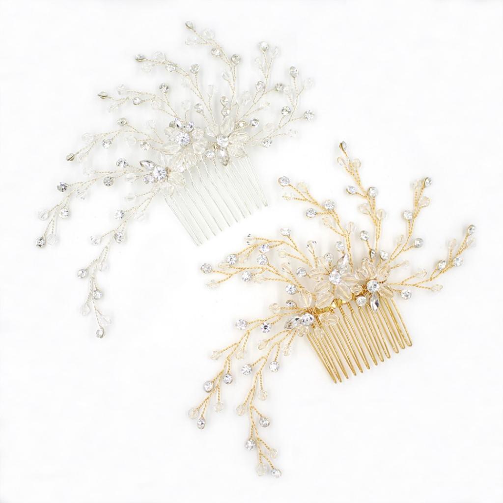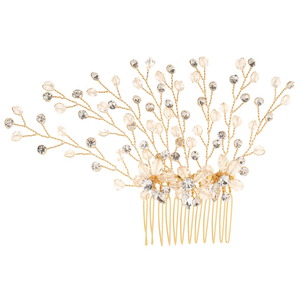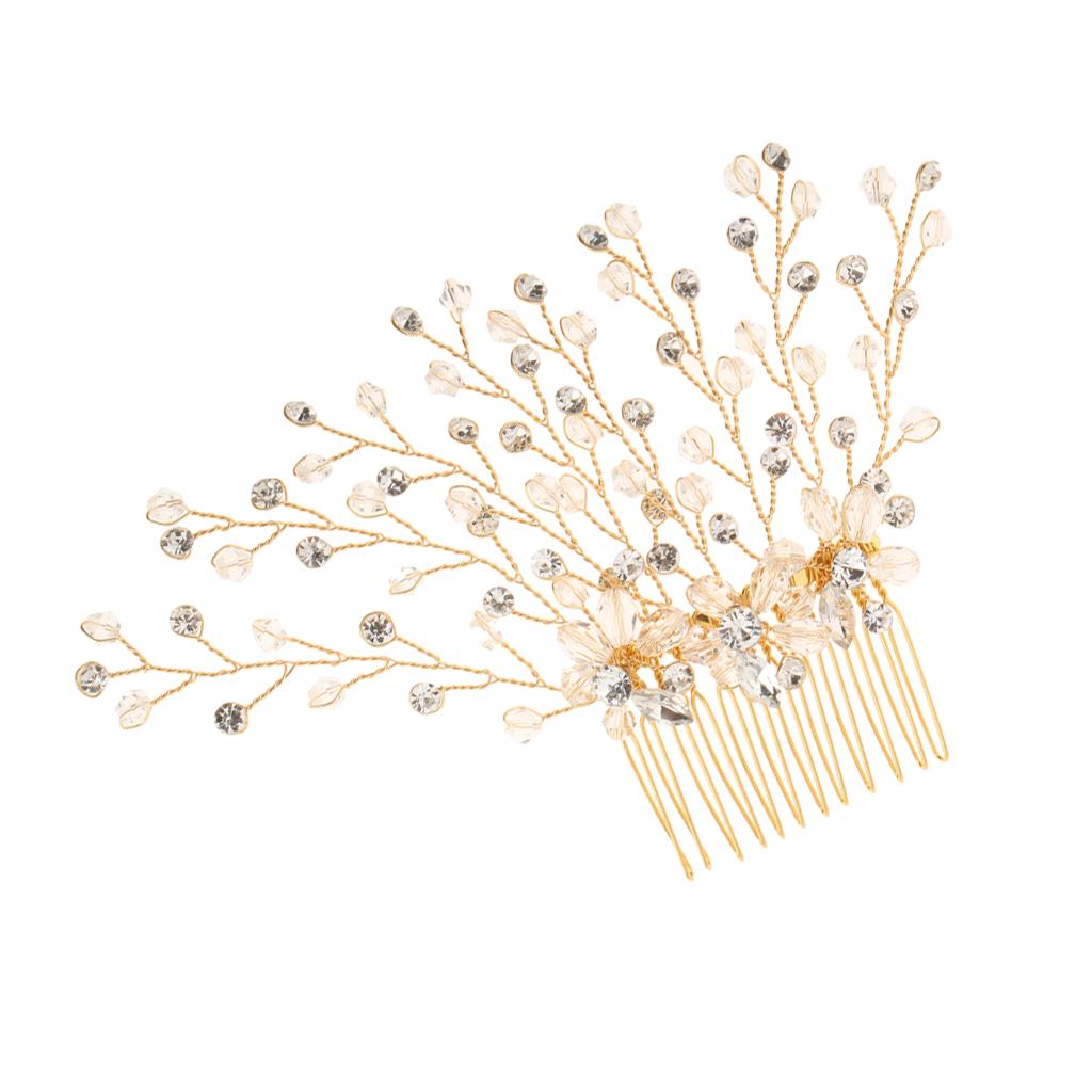 Delicate Crystal Rhinestone Flower Branches Hair Comb Bride Accessory Gold