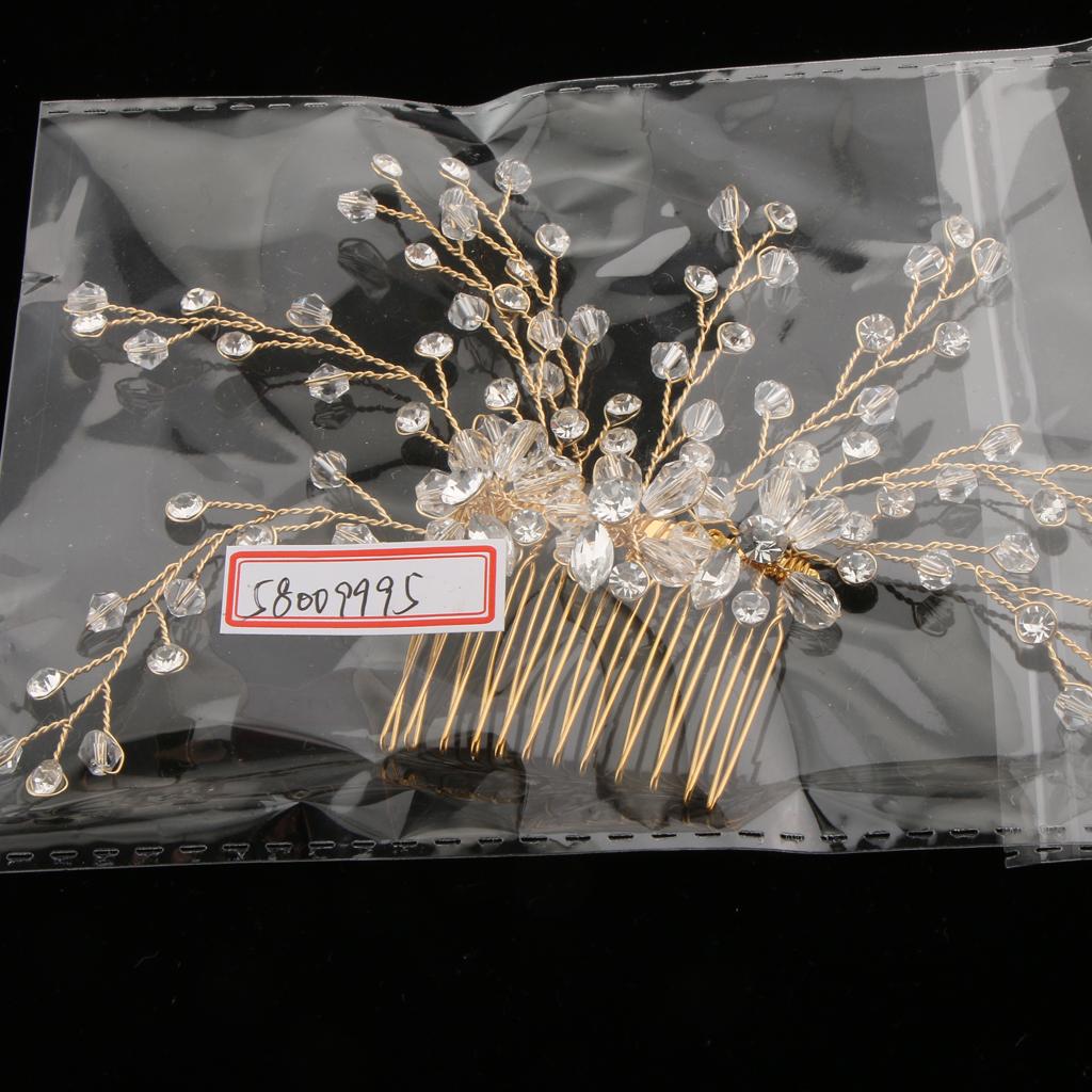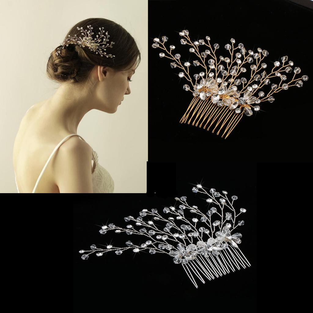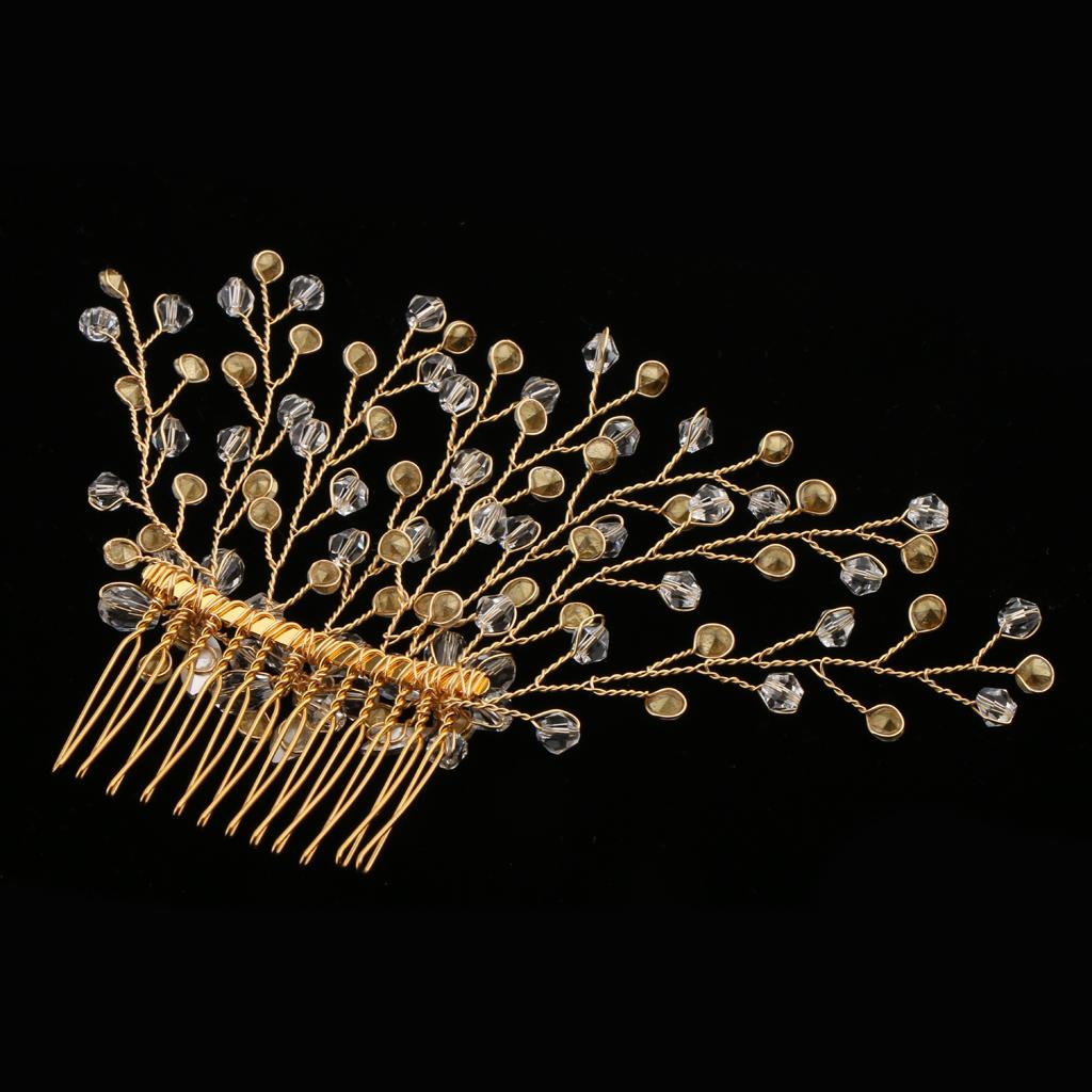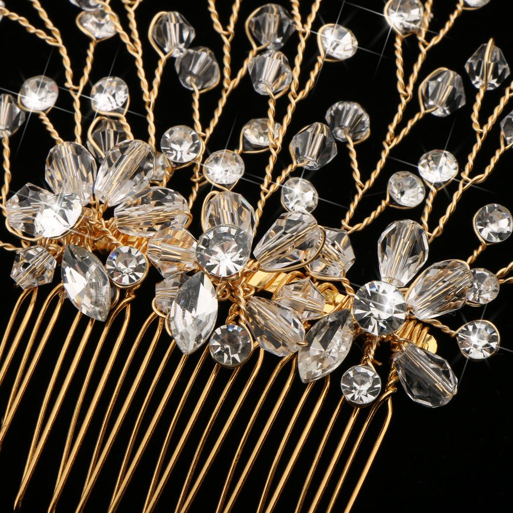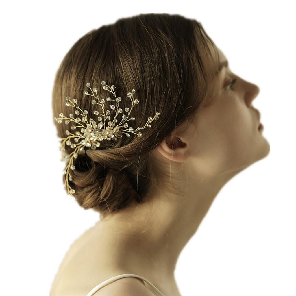 Delicate Crystal Rhinestone Flower Branches Hair Comb Bride Accessory Gold