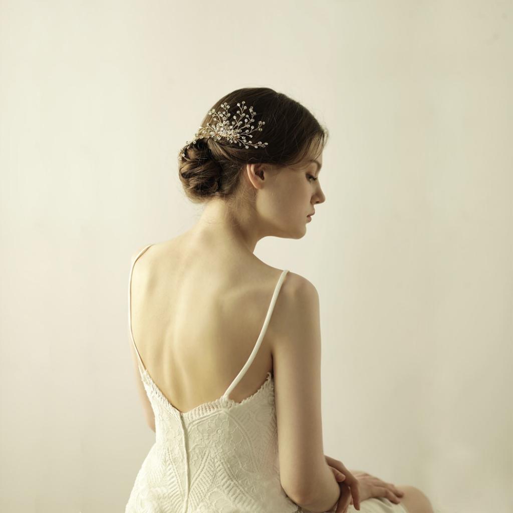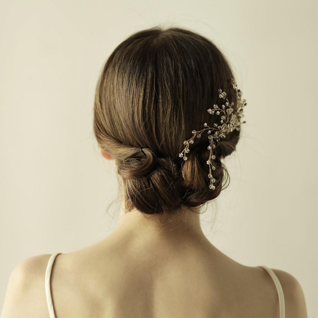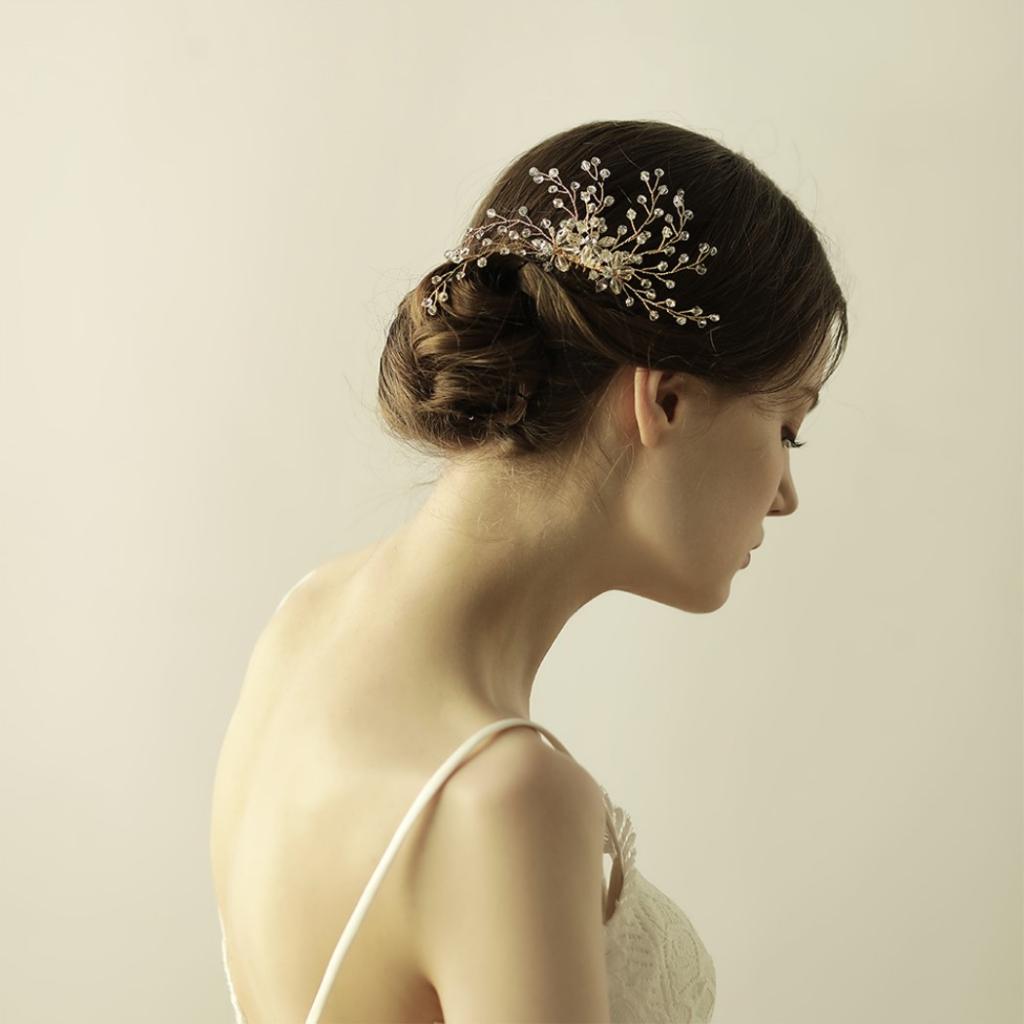 Delicate crystal flower branches beads hair comb party headpiece