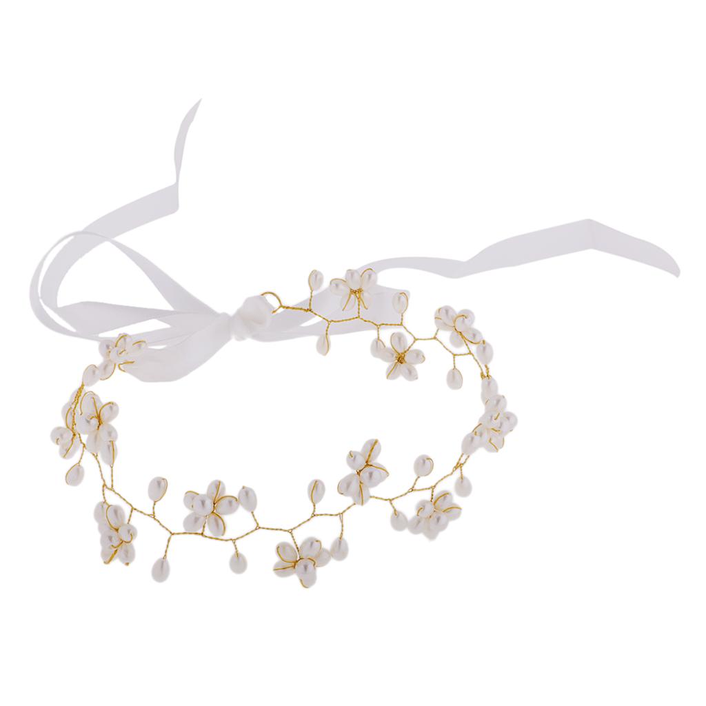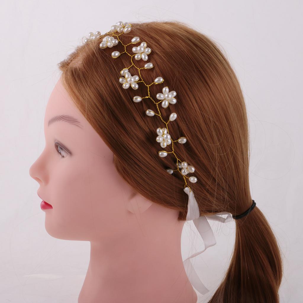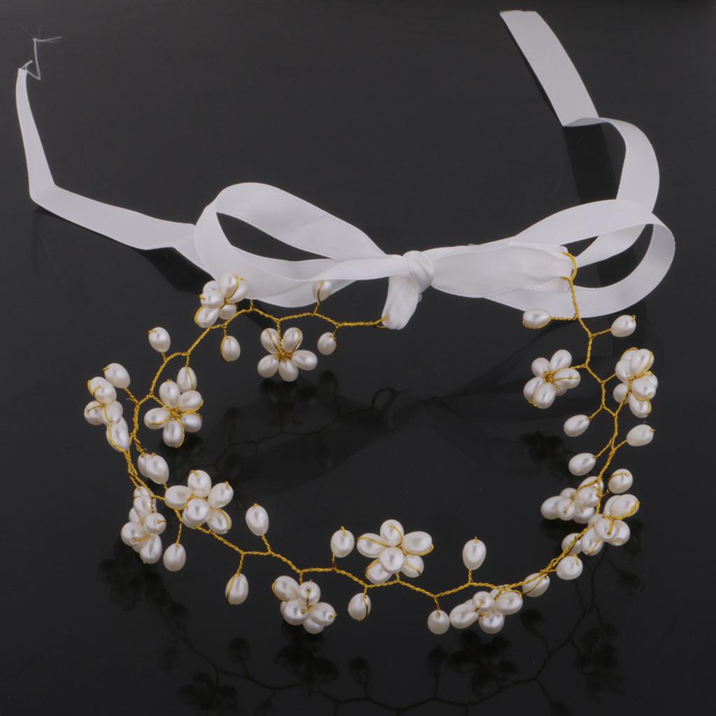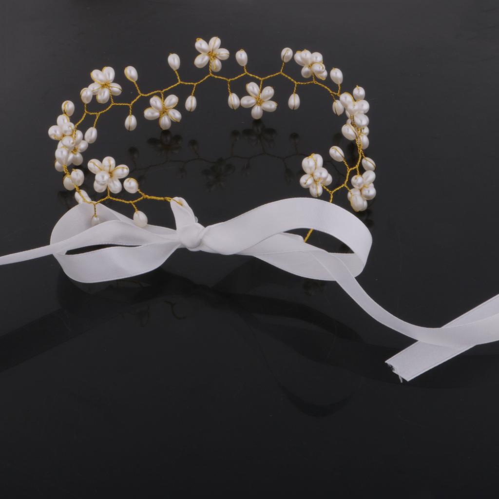 Elegant Lady Girls Crystal Cluster Pearls Headband Ribbon Hair Accessories