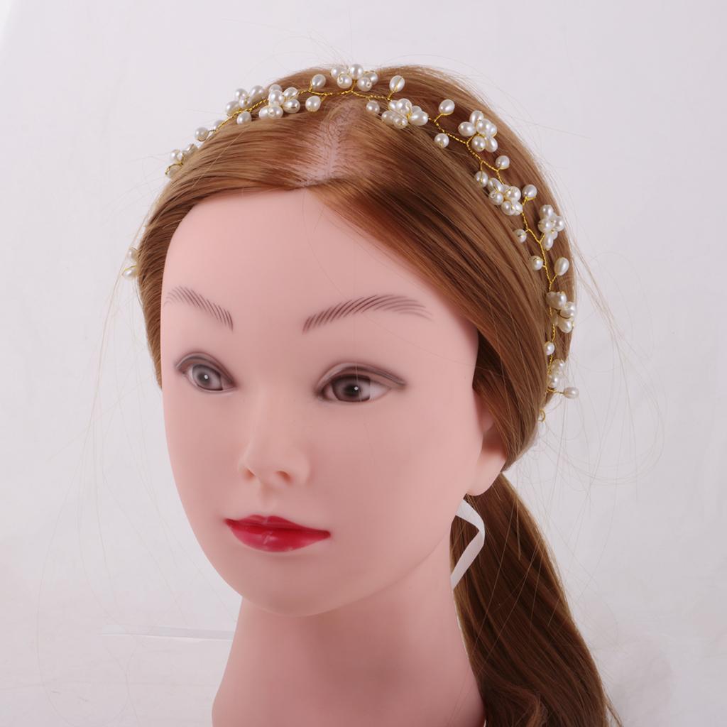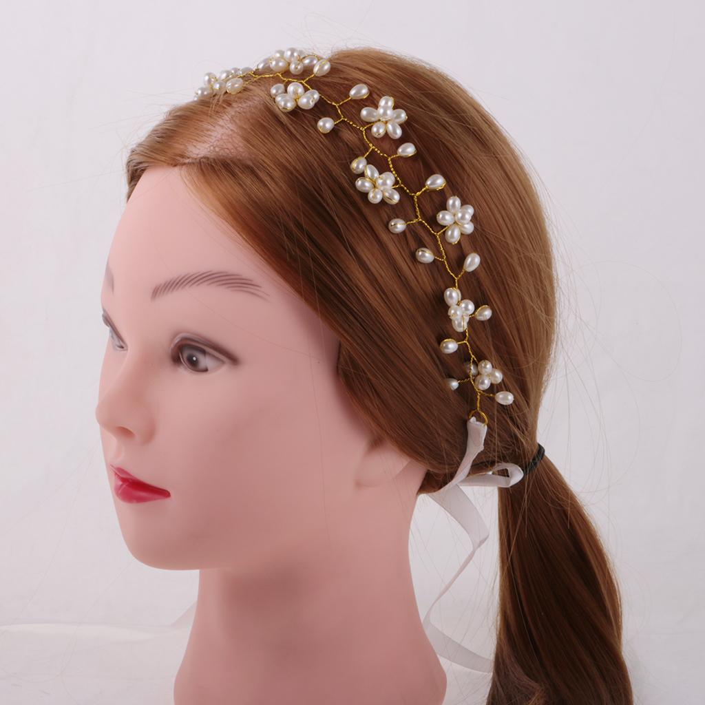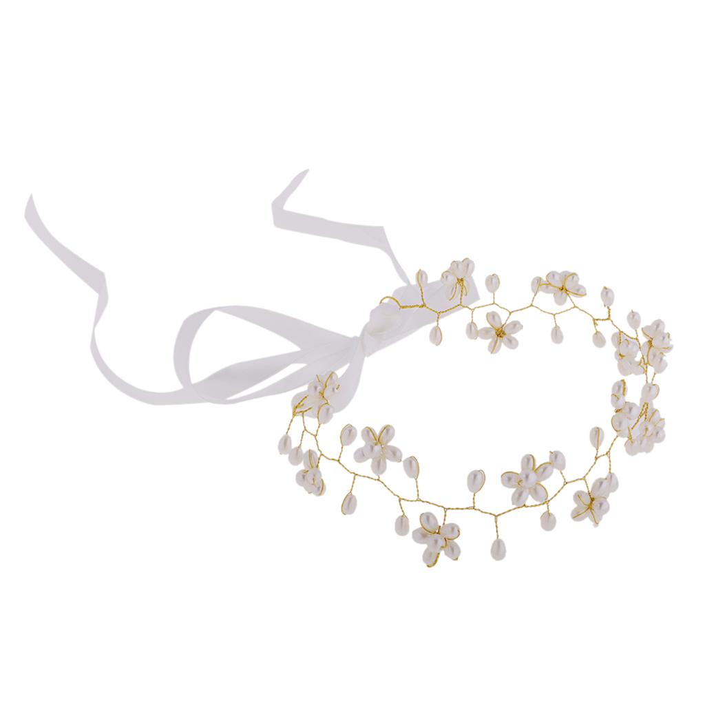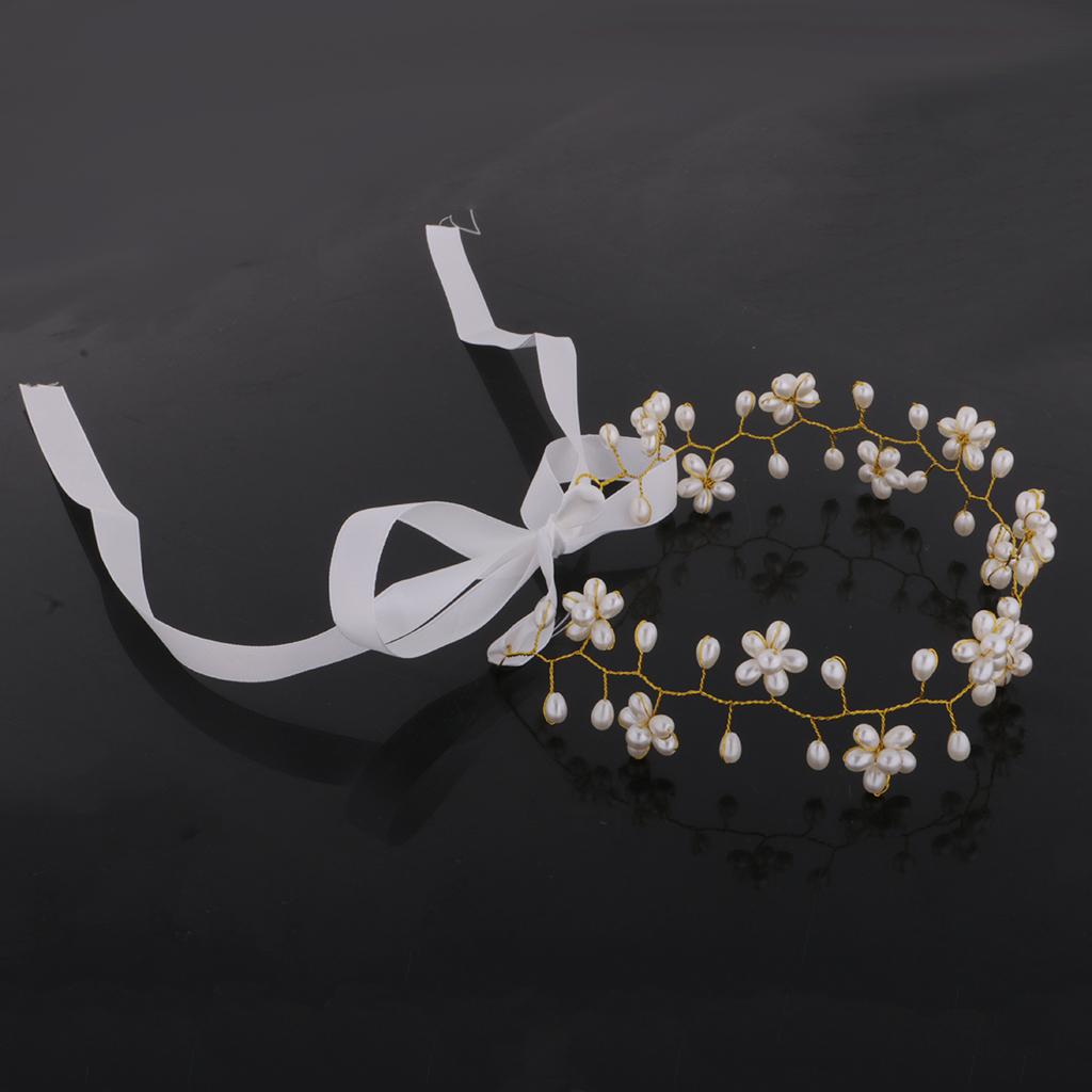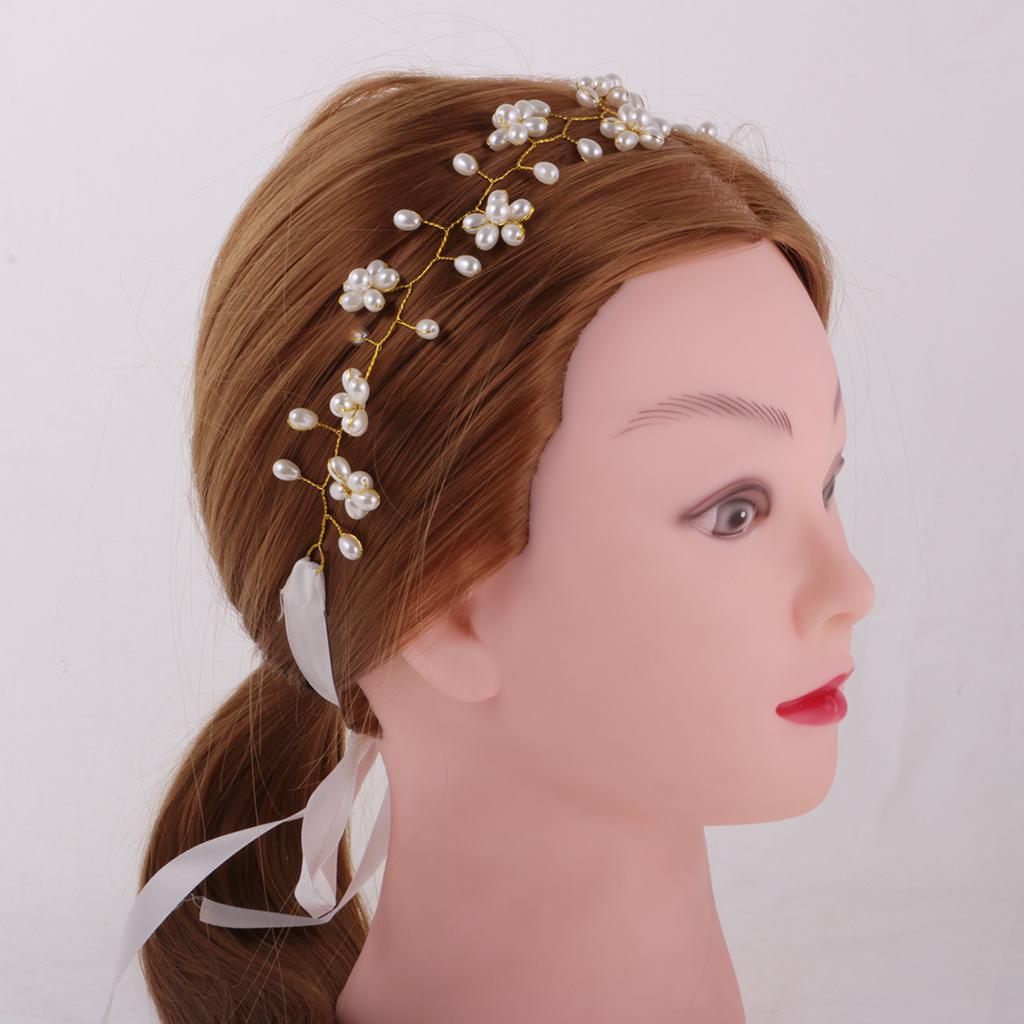Elegant Lady Girls Crystal Cluster Pearls Headband Ribbon Hair Accessories