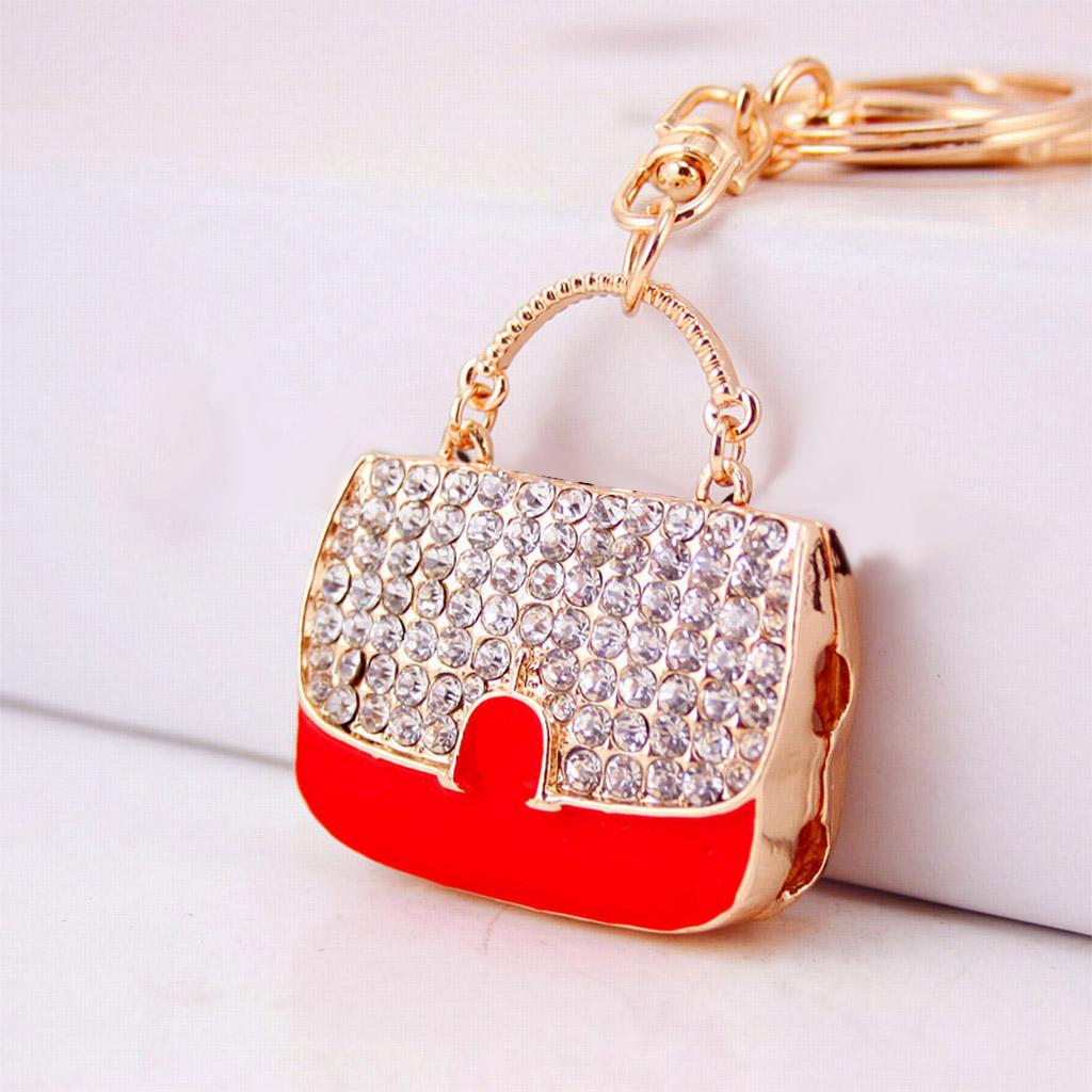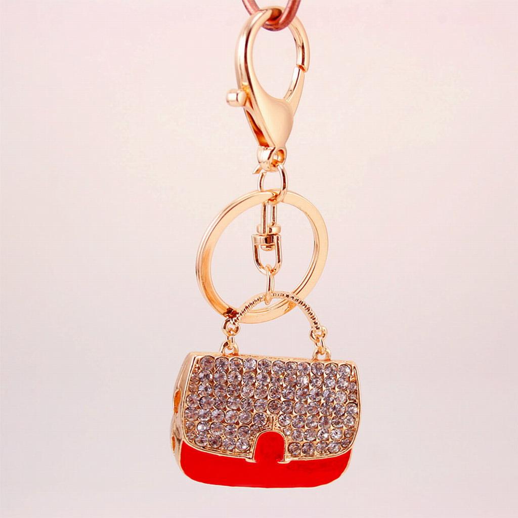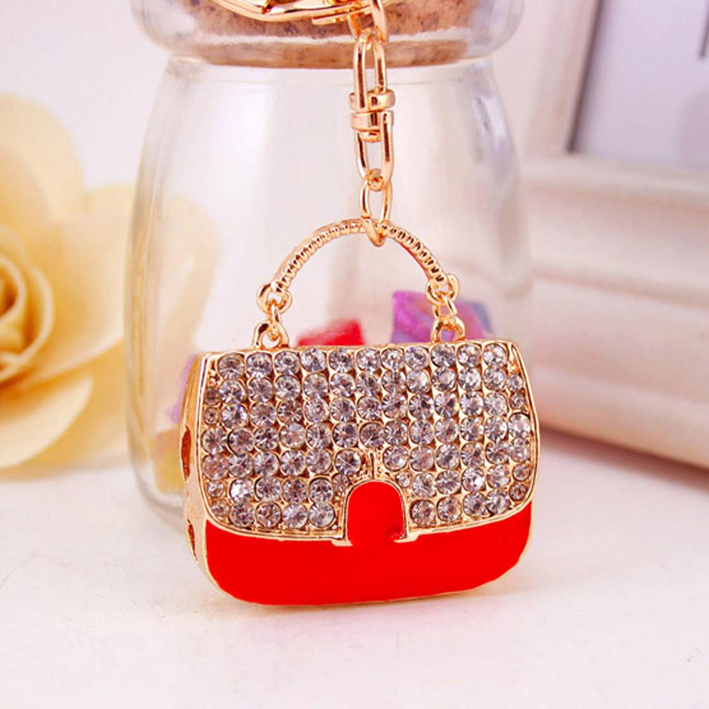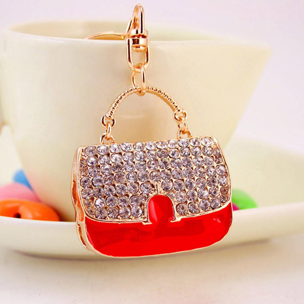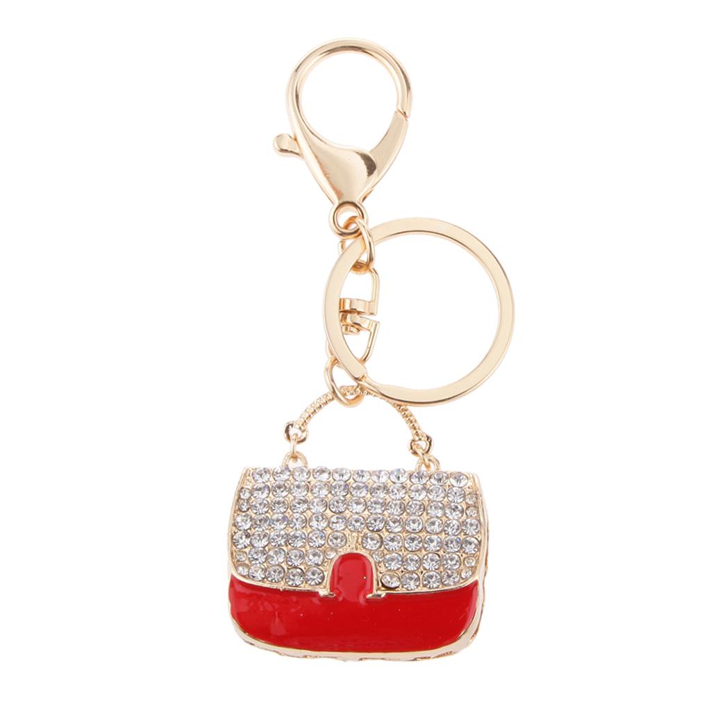 Exquisite Purse Shaped Pendant Alloy Key Ring w/ Lobster Clasp Colorful Red