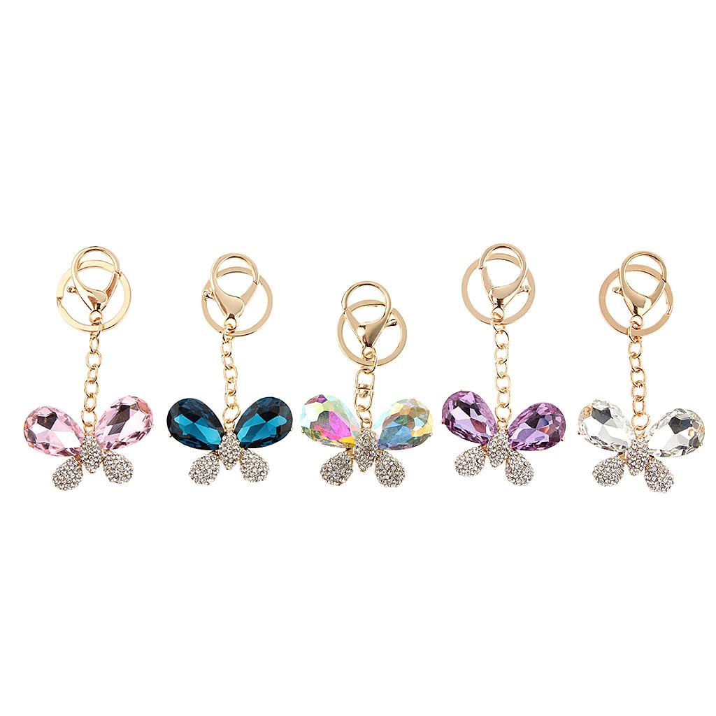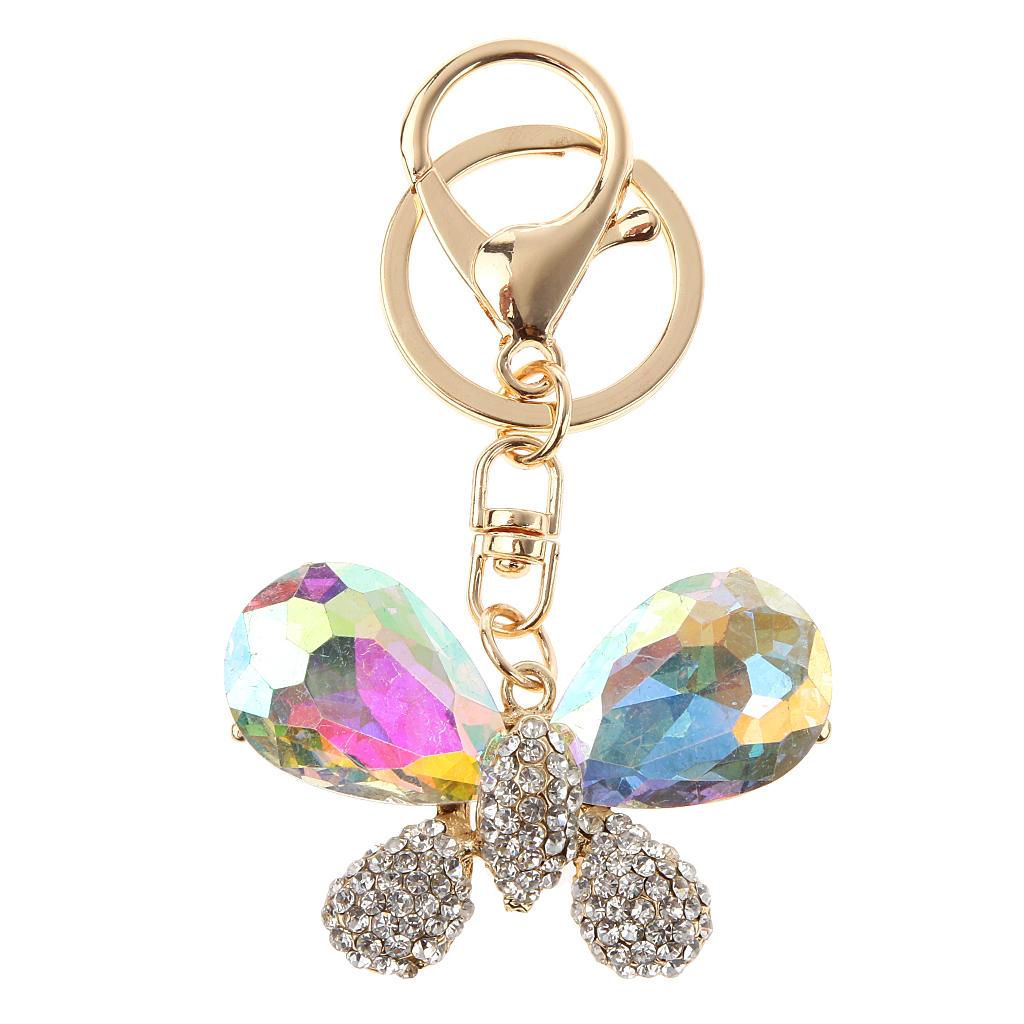 Fashion Crystal Rhinestone Butterfly Keychain Key Ring Bag Charm