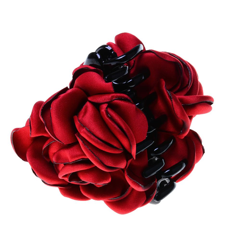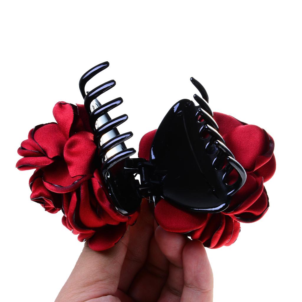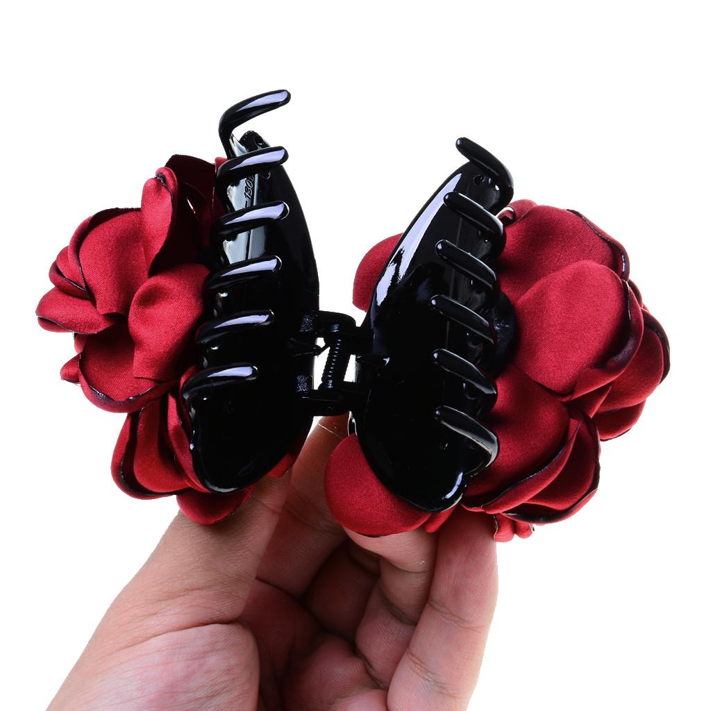 Fashion Fabric Rose Flower Large Hair Clamp Claw Clip Accessories Gift-Blue Wine
