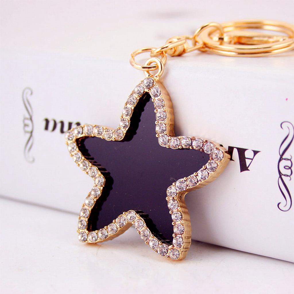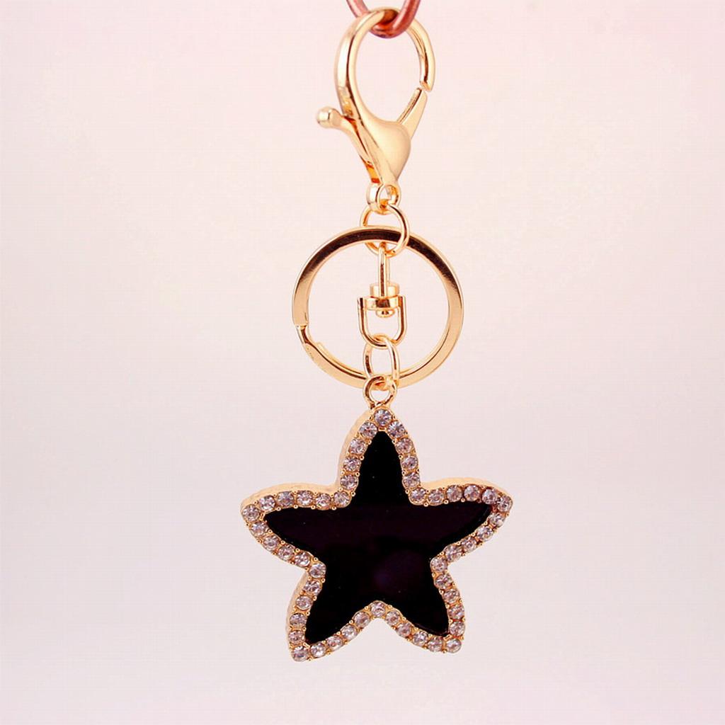 Fashion Five Star Pendant Key Chain Metal Key Ring Fob Handbag Accessories