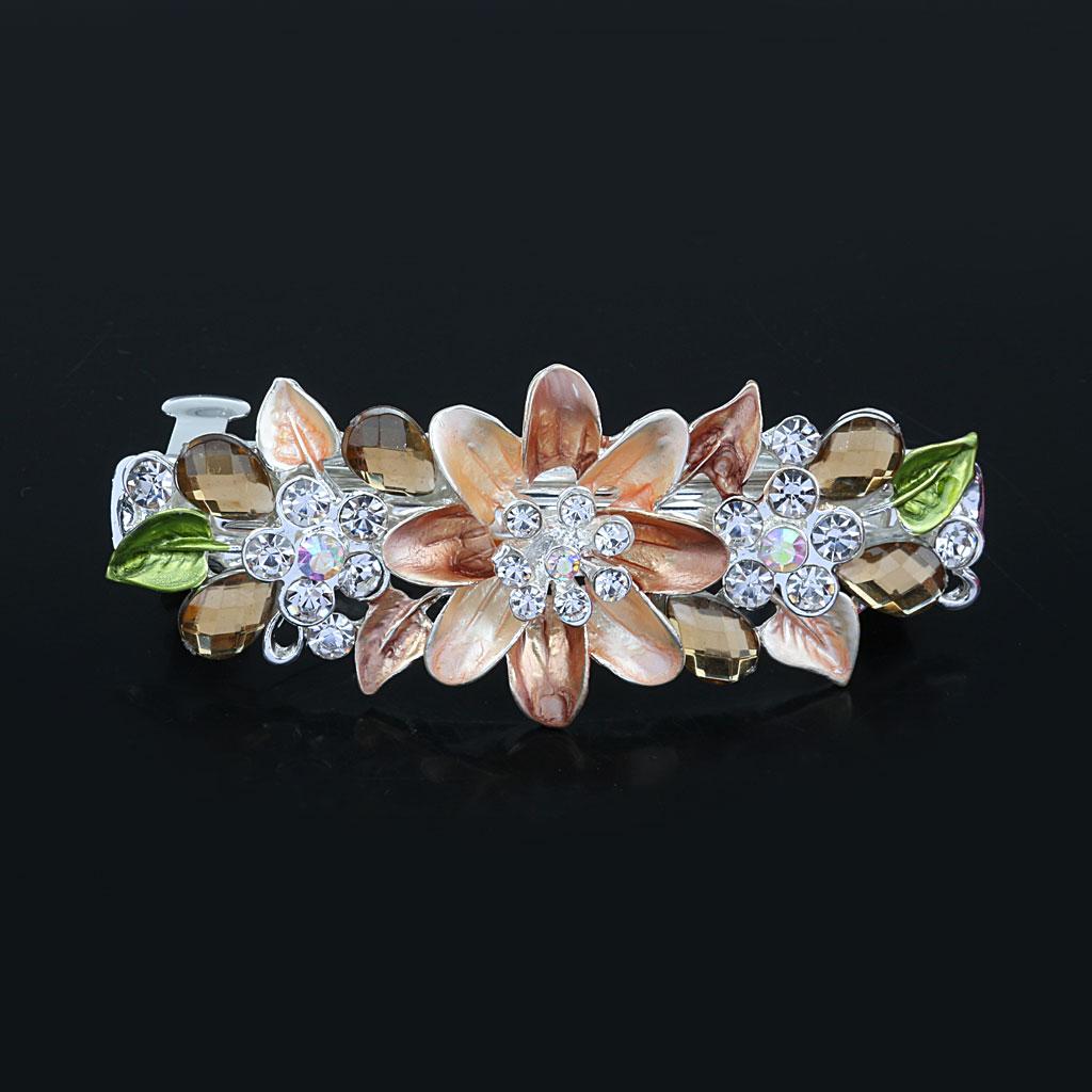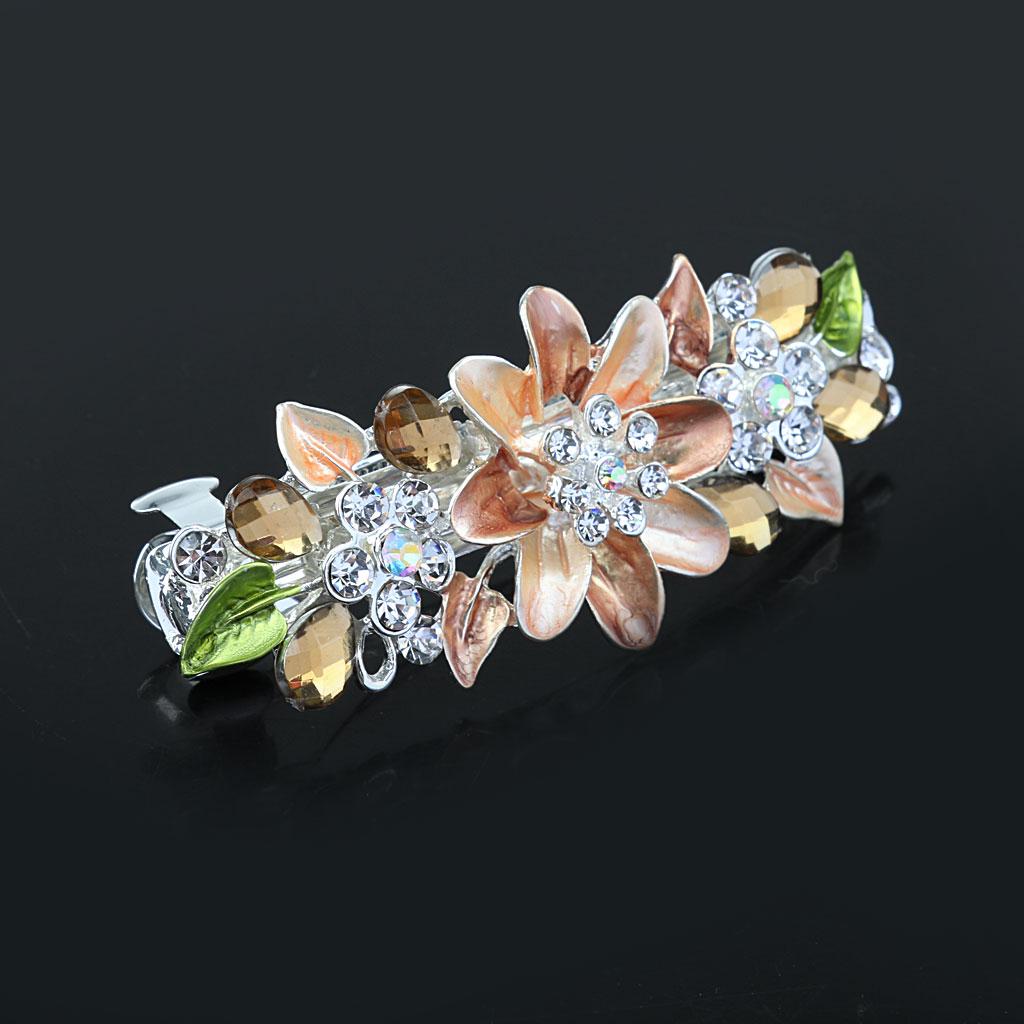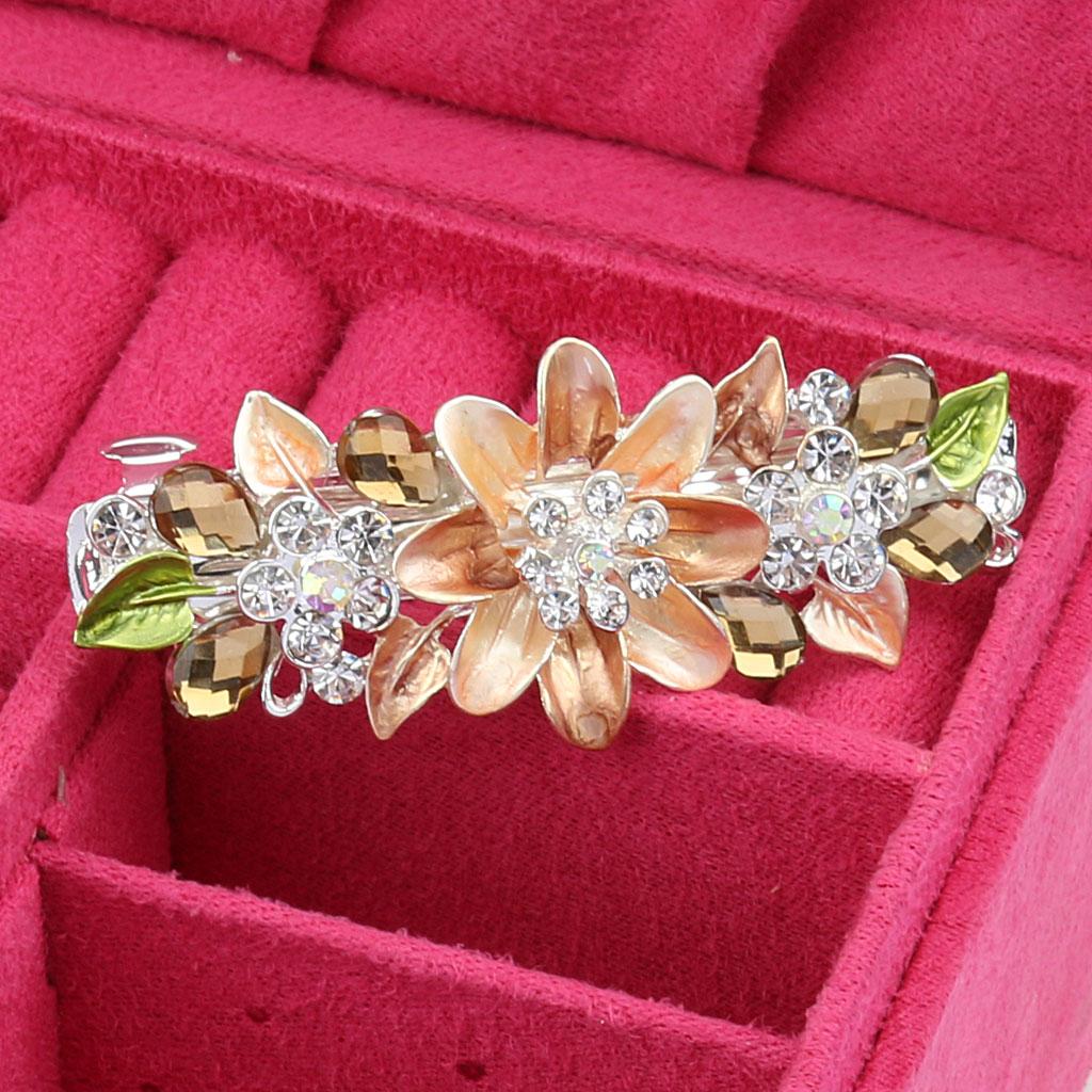 Fashion Flower Full Crystal Rhinestones Barrette Hair Clip Hairpin Champagne