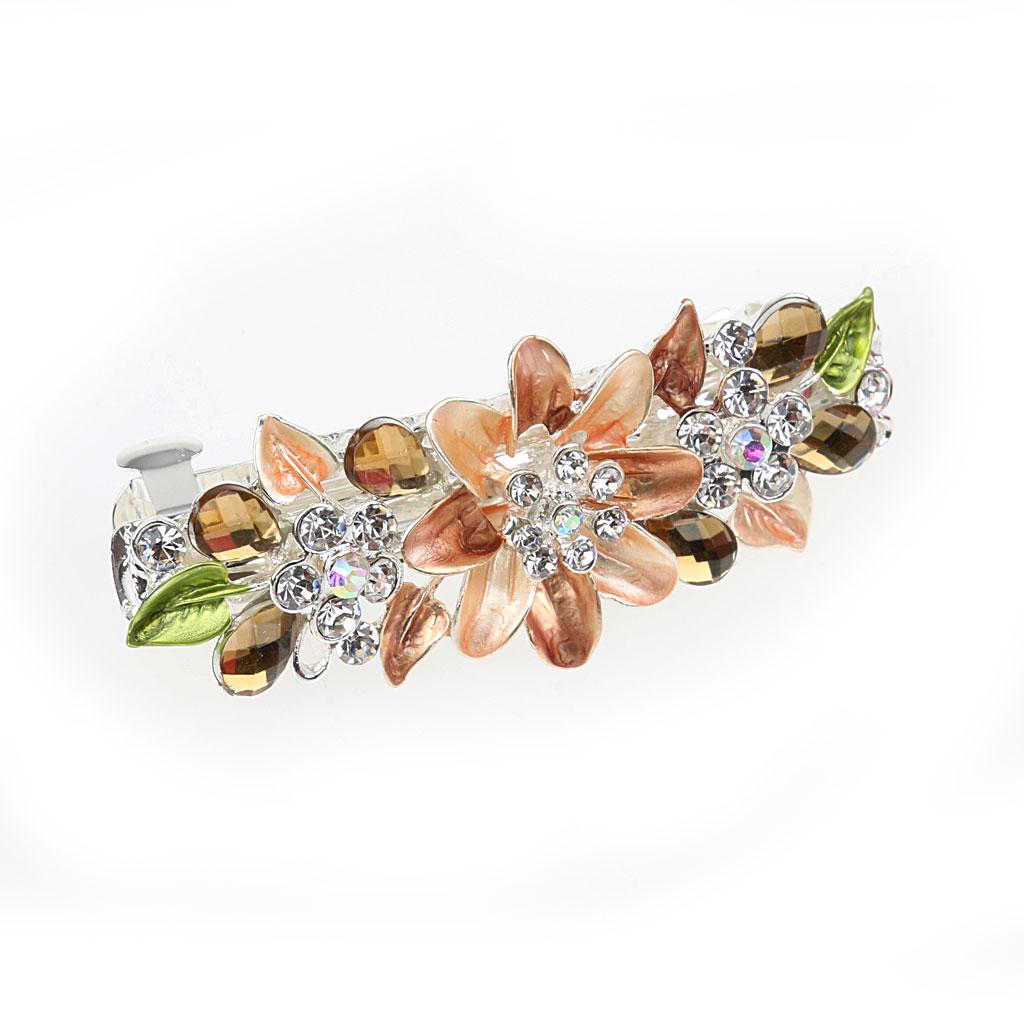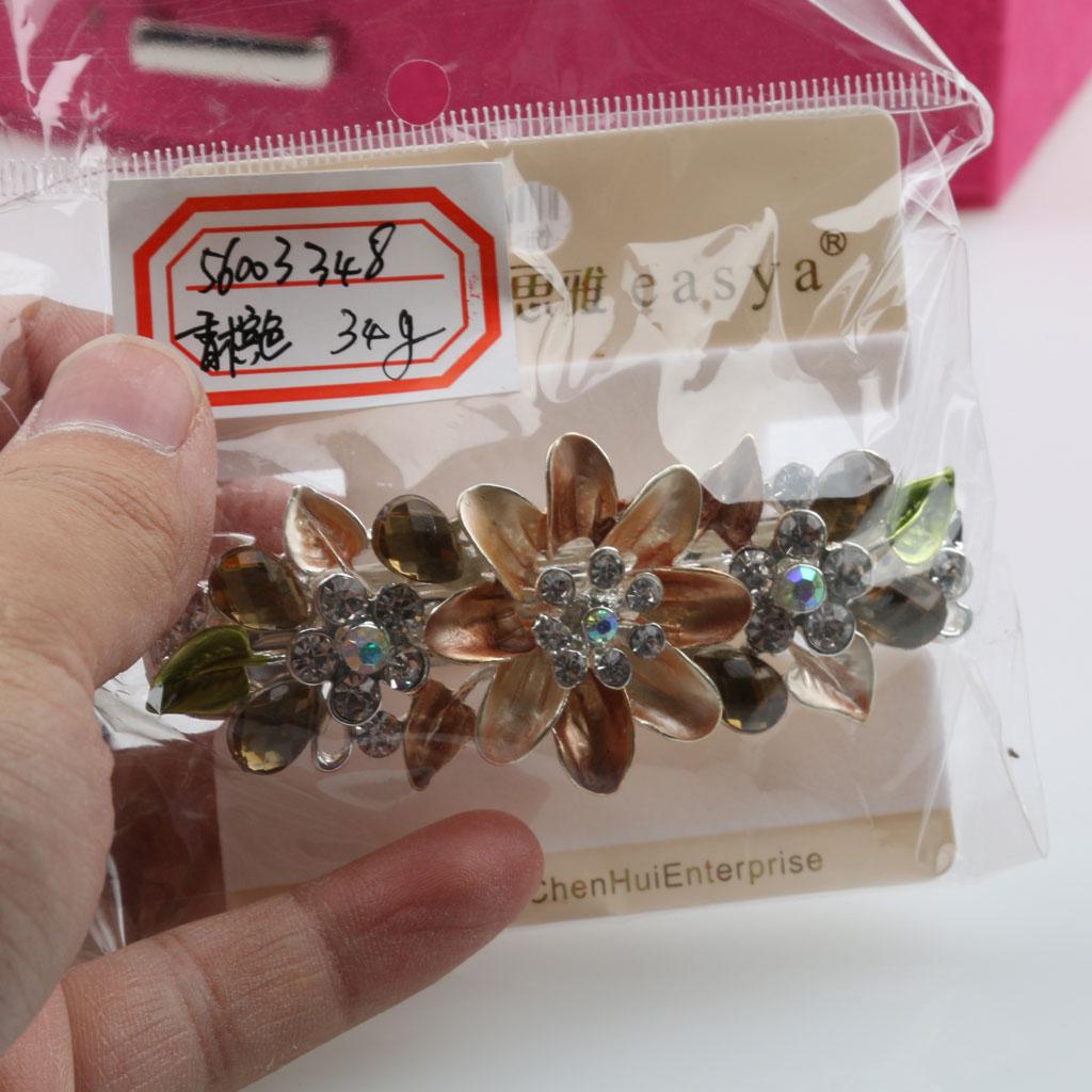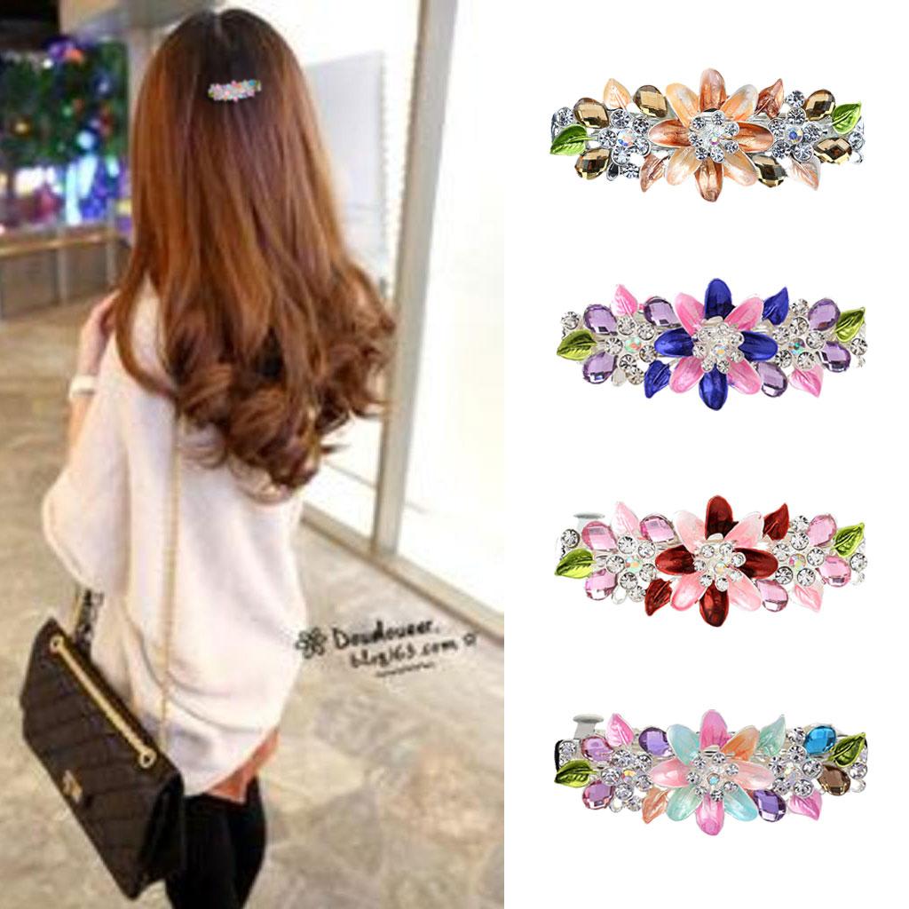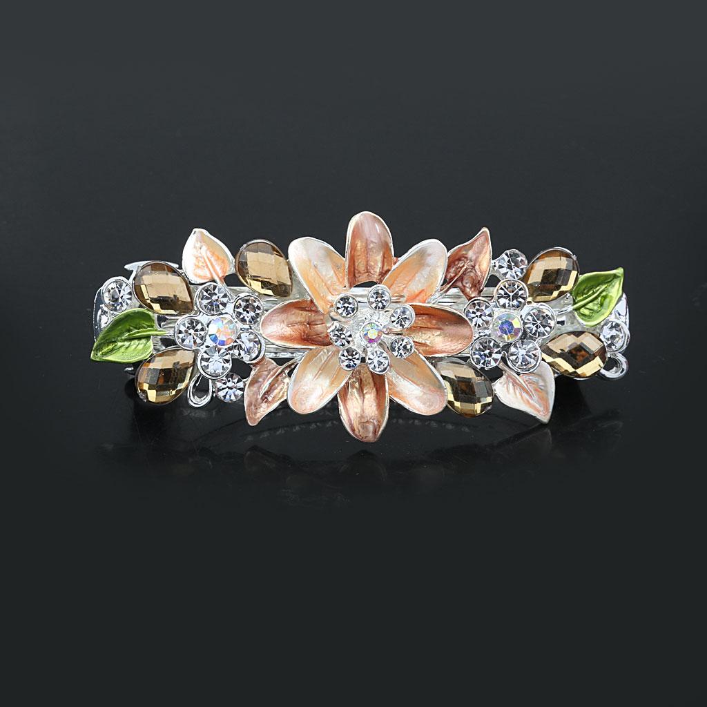 Fashion Flower Full Crystal Rhinestones Barrette Hair Clip Hairpin Champagne